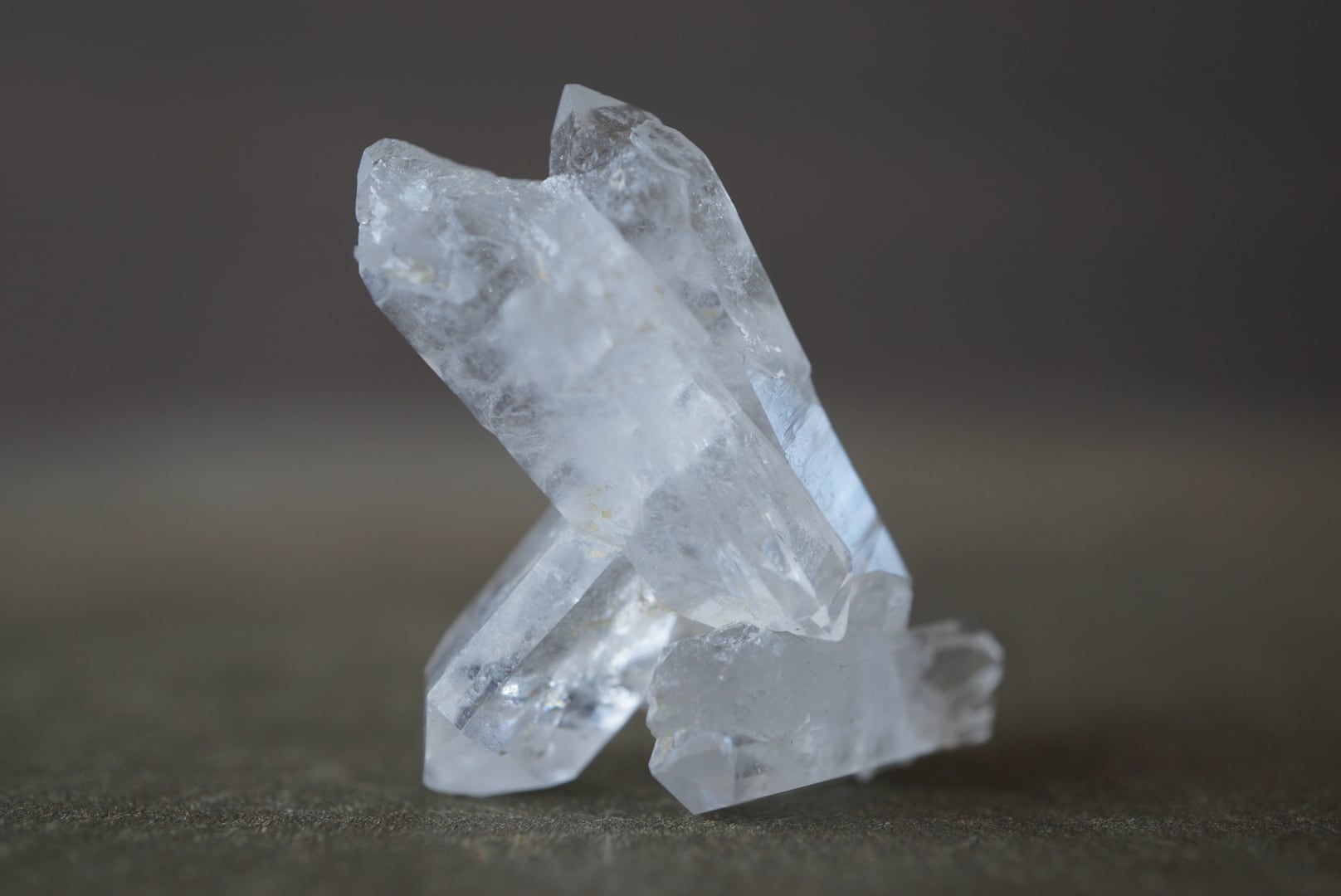 内部の歪みを補正しながら成長した結晶であるため、複数の結晶が横方向に連なったり、タビュラー状(平らな板状結晶)、階段状、棚状に積層するなど、直線的な秩序と、不規則に重なり合うランダム性を同時に宿したユニークな造形です。