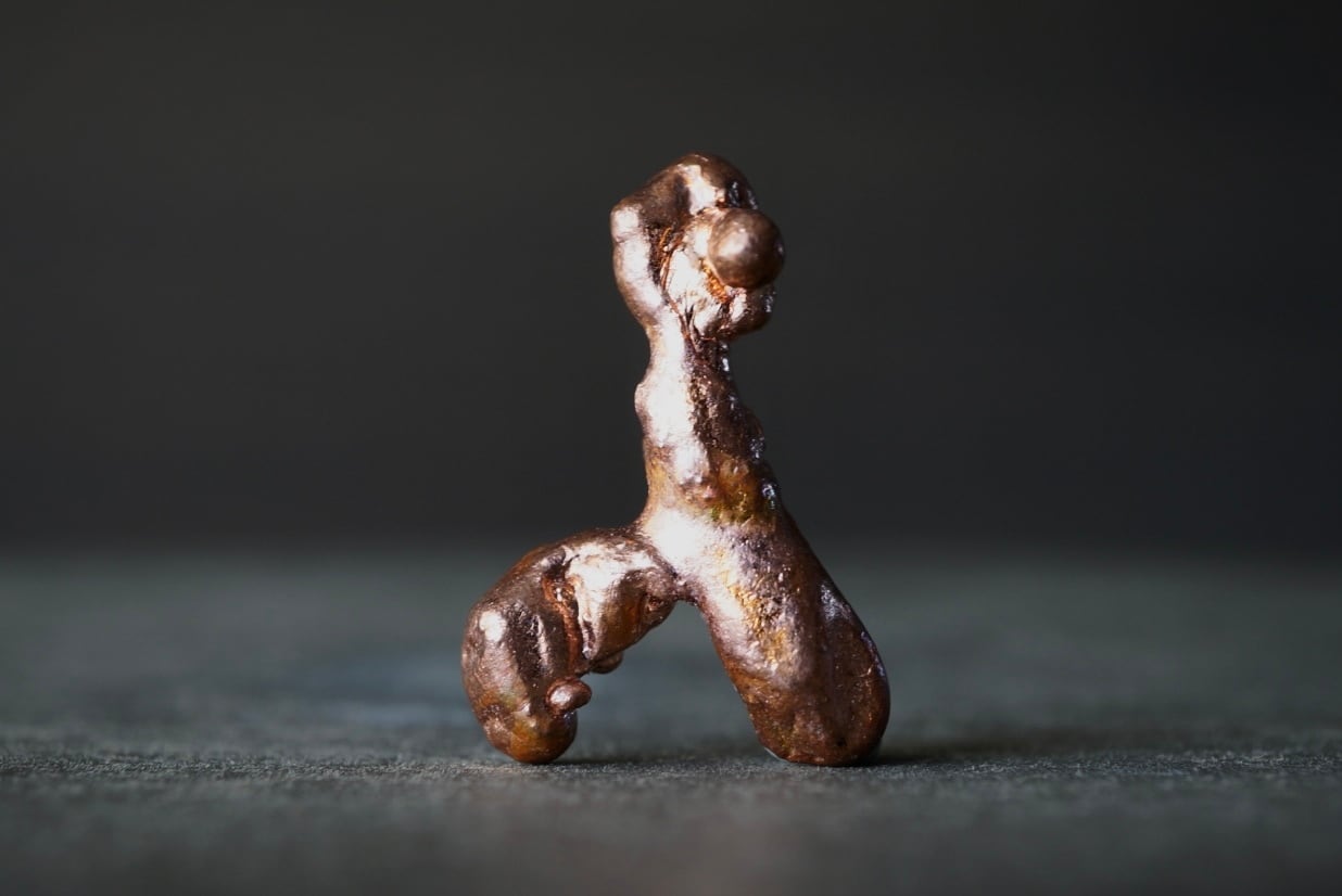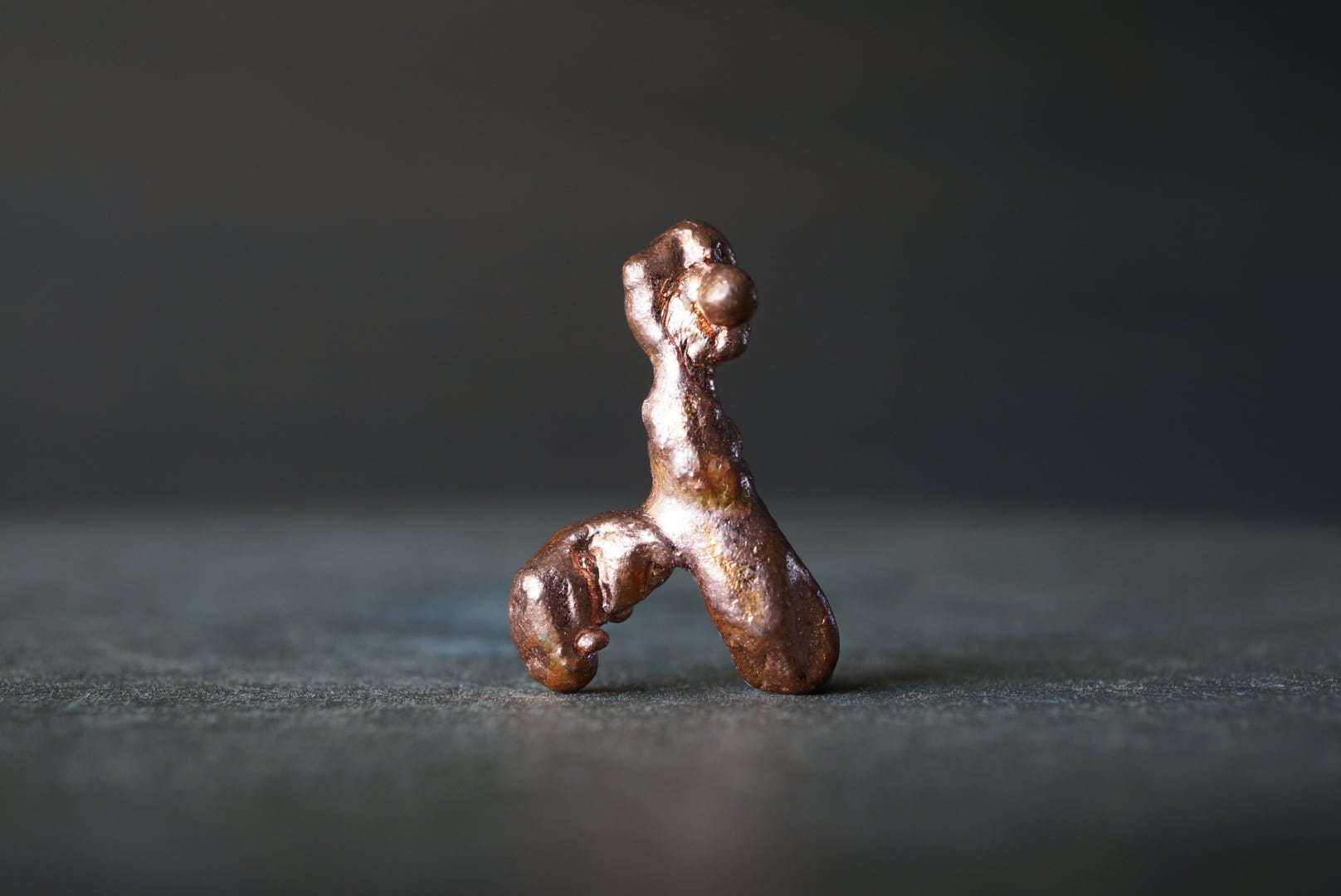 滑らかな肌合いは、雨風のもとで風化した古い像や、撫でられることで艶を増したブロンズ彫刻を思わせる艶めかしさを湛えています。