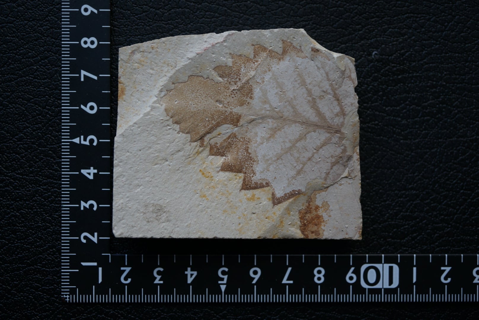 ハンガリー北東部、トカイ山地に位置するErdőbénye(エルドベーニェ)周辺の中新世層(約2000万年前)から産出した木の葉(Betula?)の化石です。