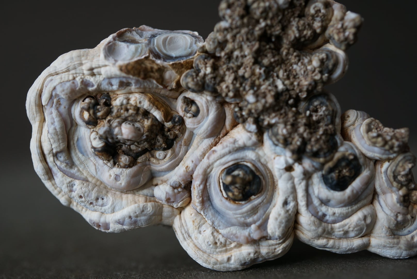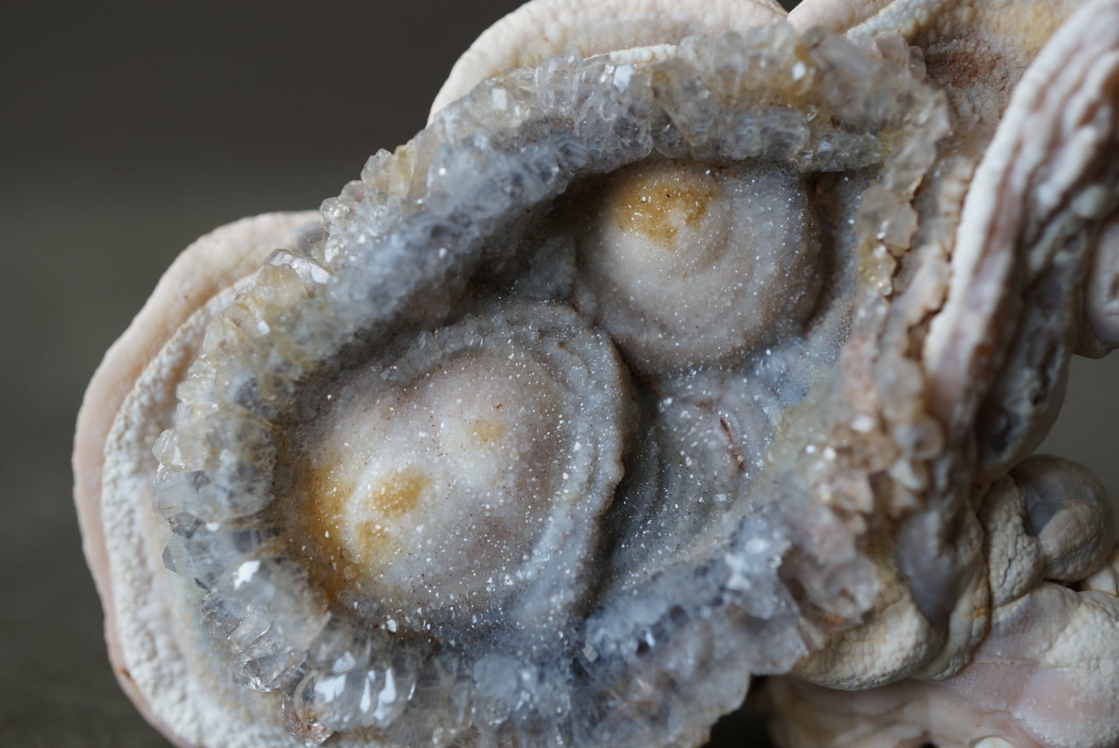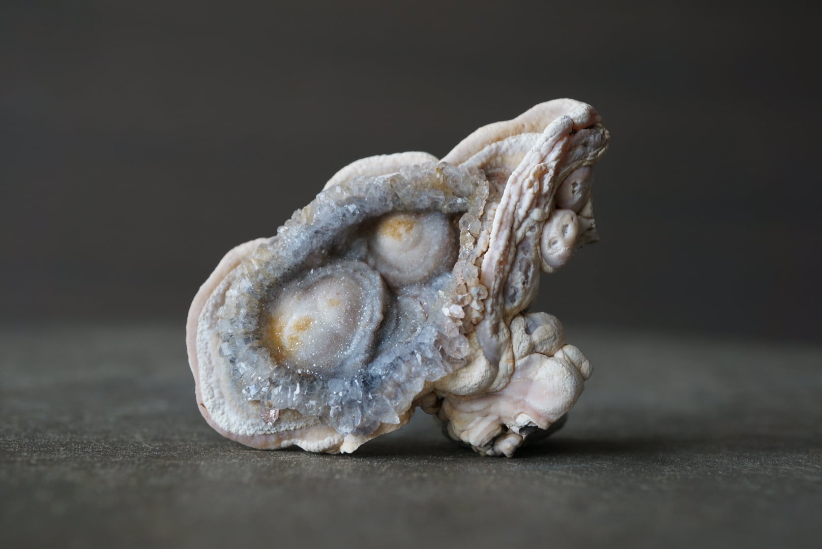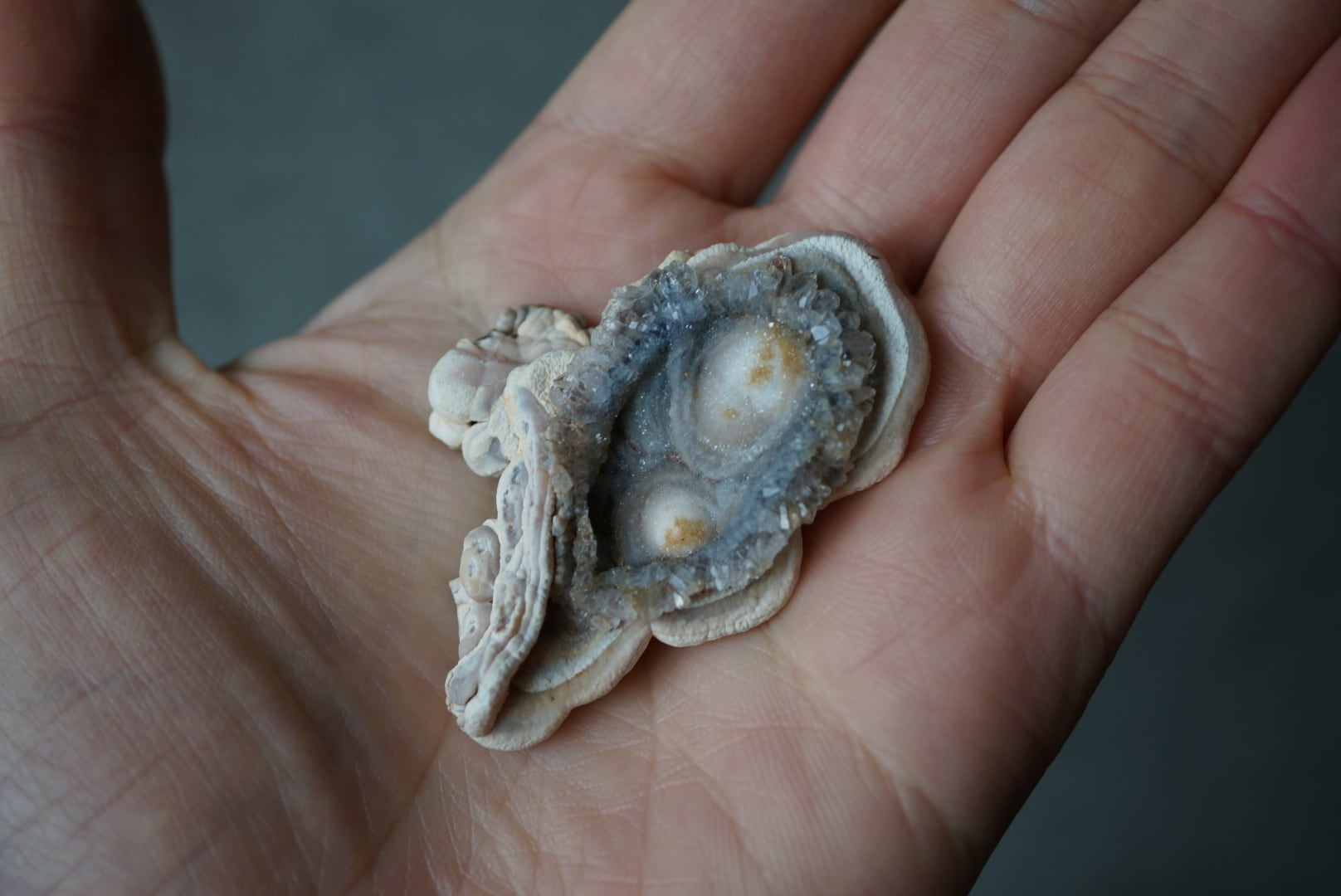 牡蠣の貝殻や、耳のような丸みを帯びた形が特徴のブラジル産コンシャ・アゲートです。
