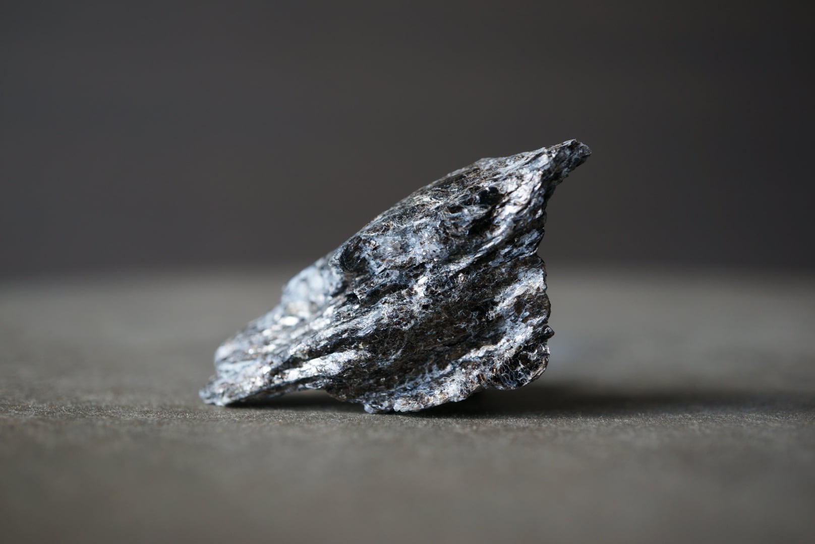 灰色〜銀色の鈍い光沢を放つバイオタイト(雲母)の母岩は、不均一な起伏を持ち、風化した古木の一部や、乾いた骨の内部構造を思わせる有機的な風合いです。