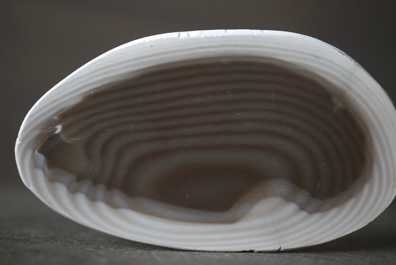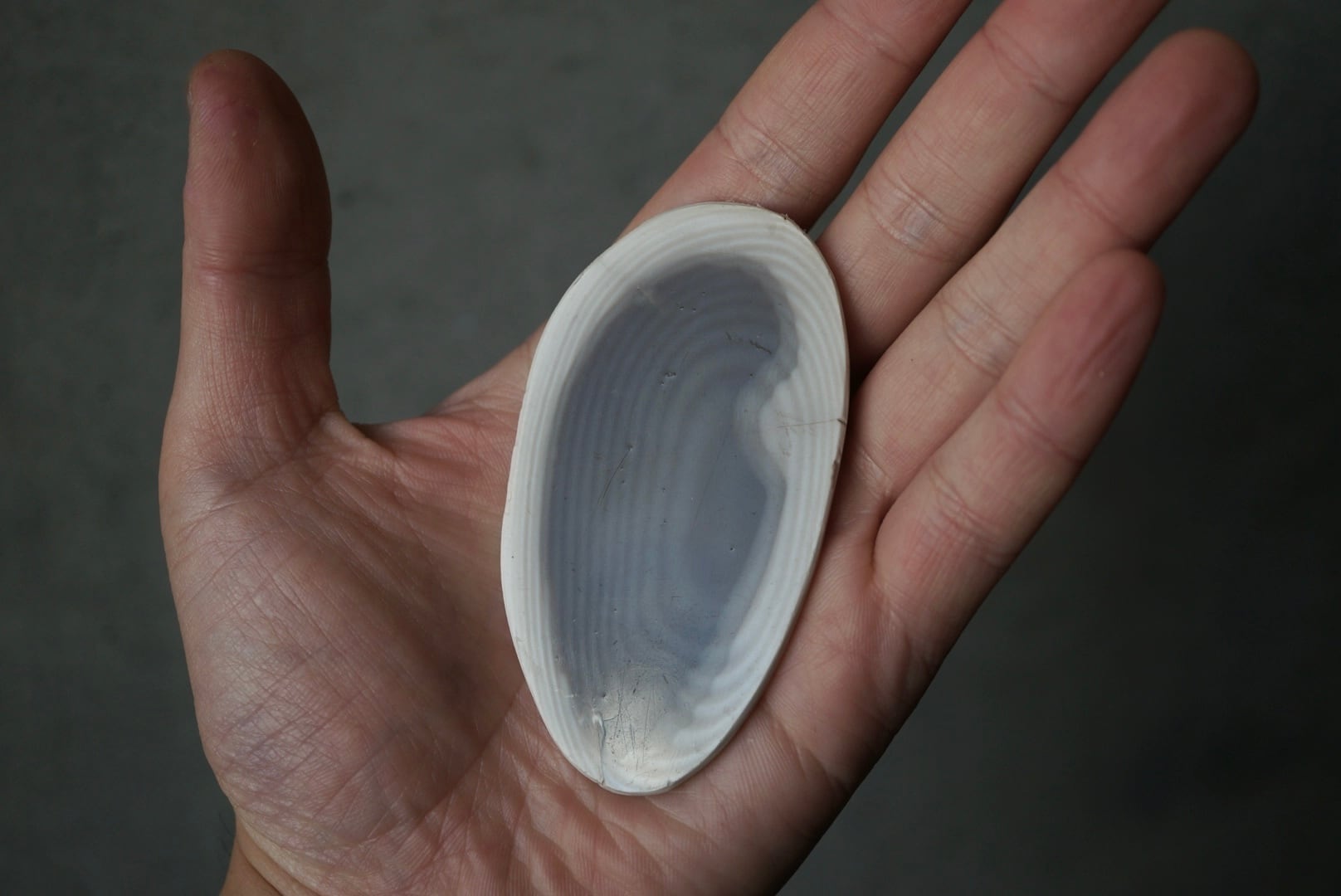 墨流しのように滑らかに重なるフリントらしい縞模様が美しく表れており、グラフィカルな魅力に溢れた一石です。