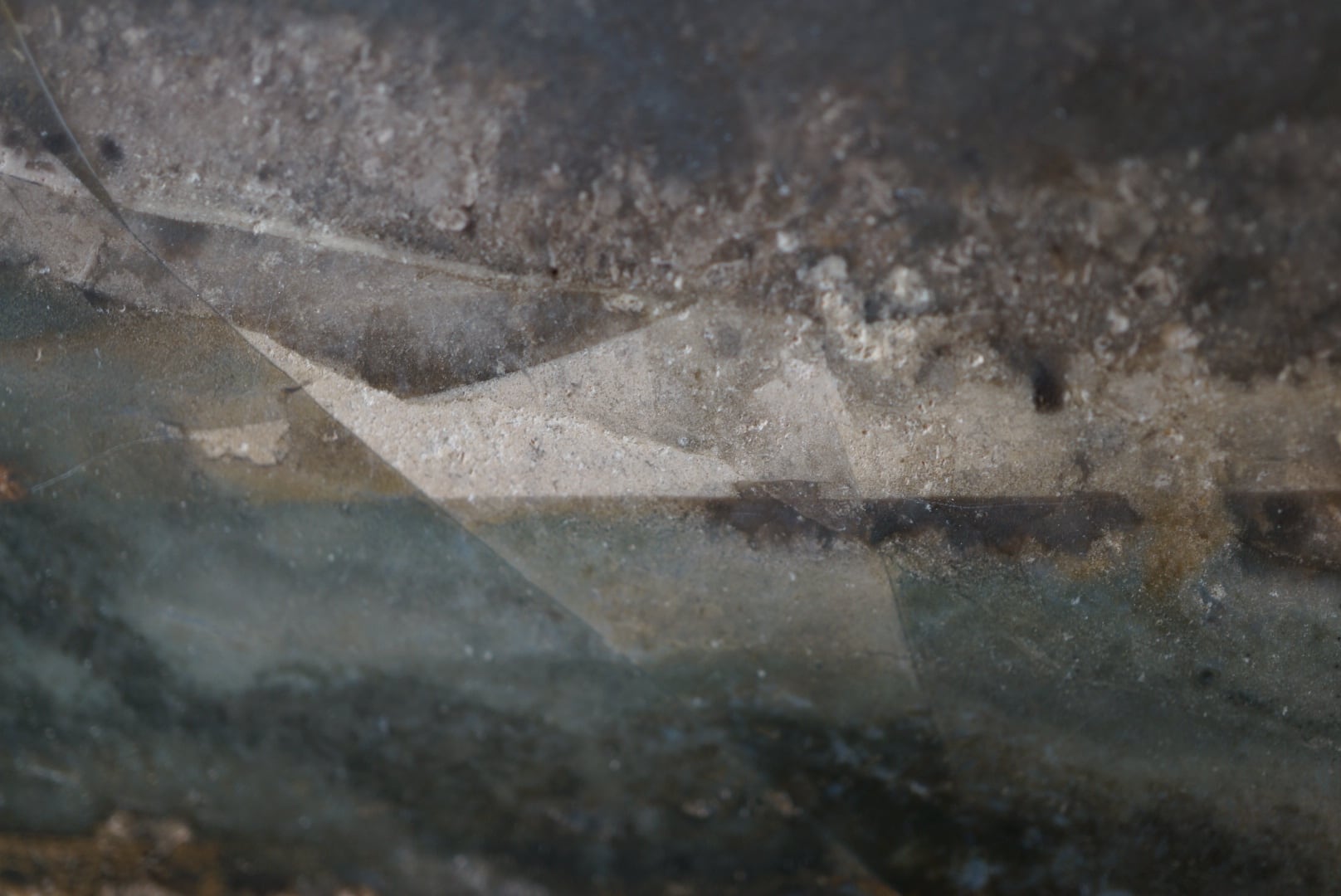 青灰、鈍い藍、わずかに緑を含んだ鼠色、いずれも強く主張する色ではなく、重なり合いながら静かに深度をつくる、日本の伝統色を思わせる奥深い色調です。