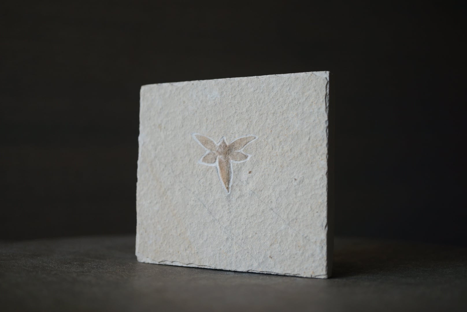 本個体はゾルンホーフェン産としては希少で、具体的な種名の特定には至っていませんが、体形と翅の配置から、キバチやカゲロウ類に近縁な昆虫の一種であると考えられます。