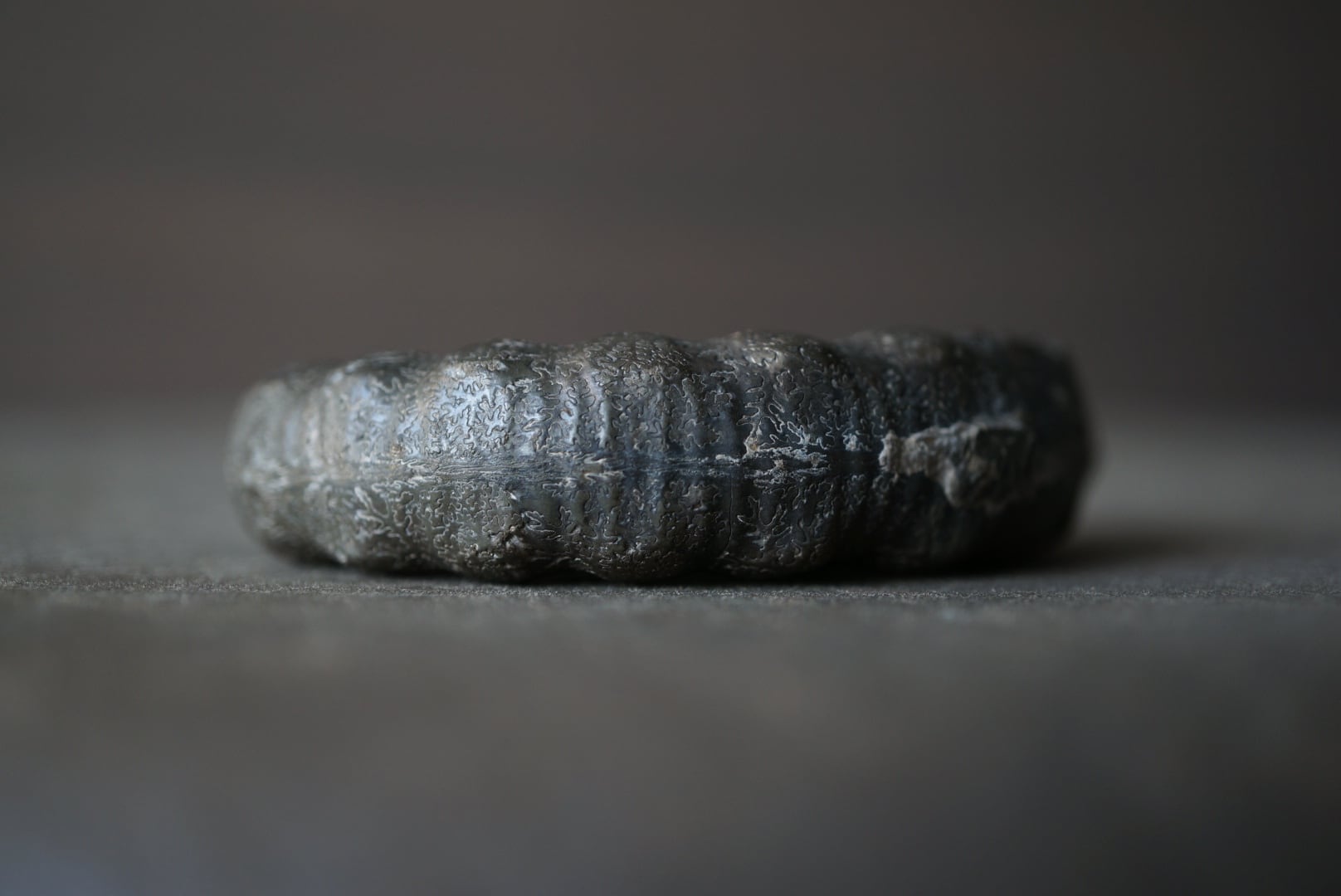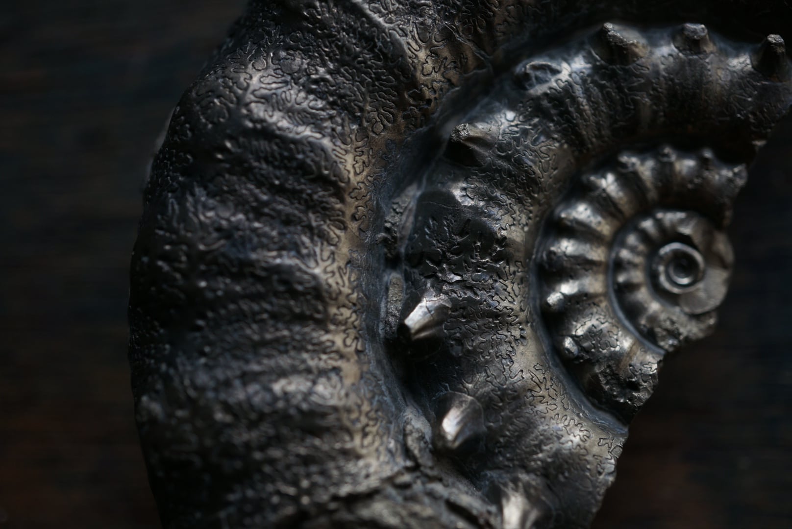 置換の過程で形づくられた螺旋は、有機的な輪郭を保ったまま、燻し銀のような沈んだ輝きをまとっています。