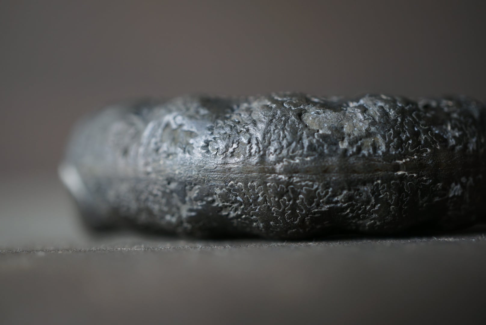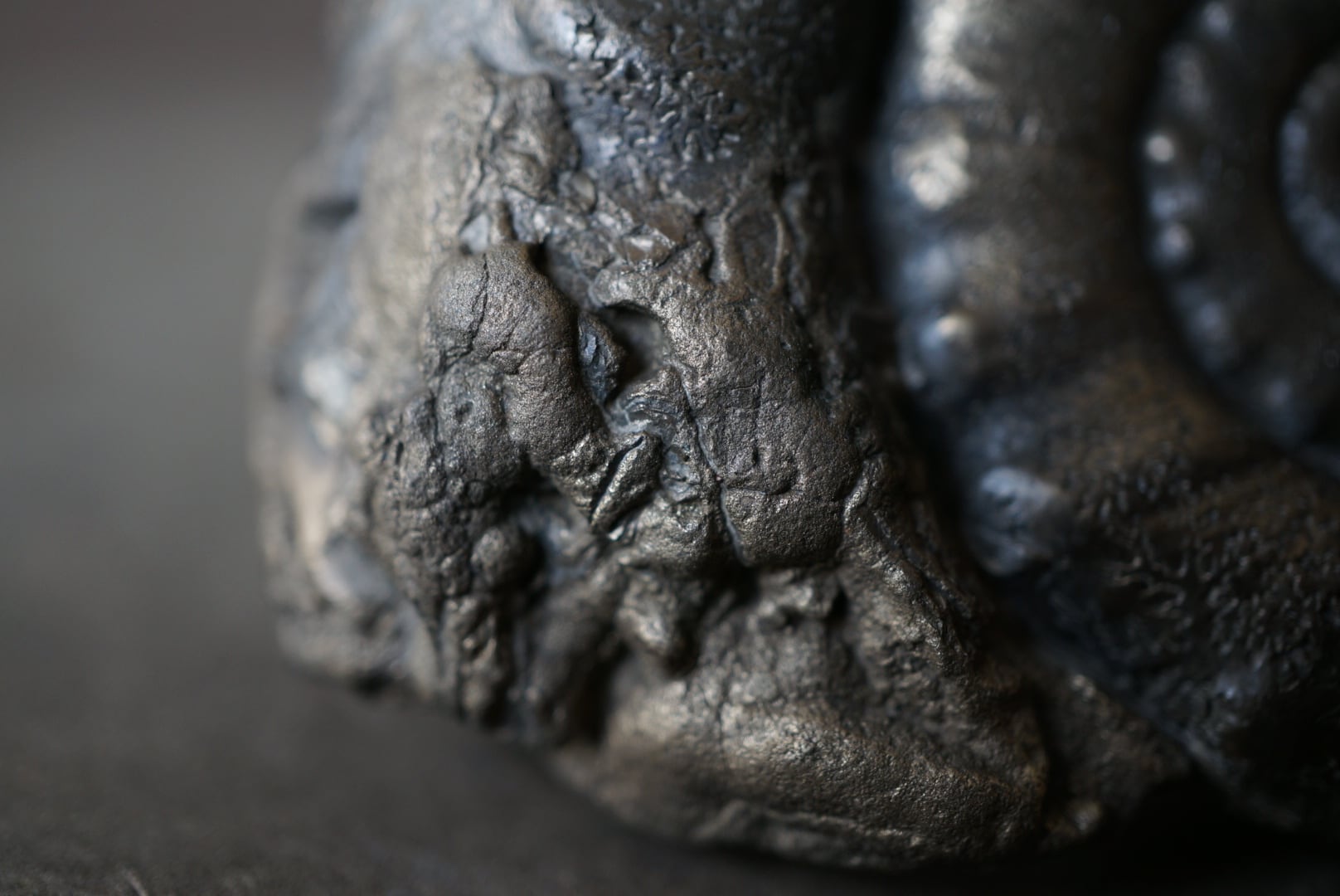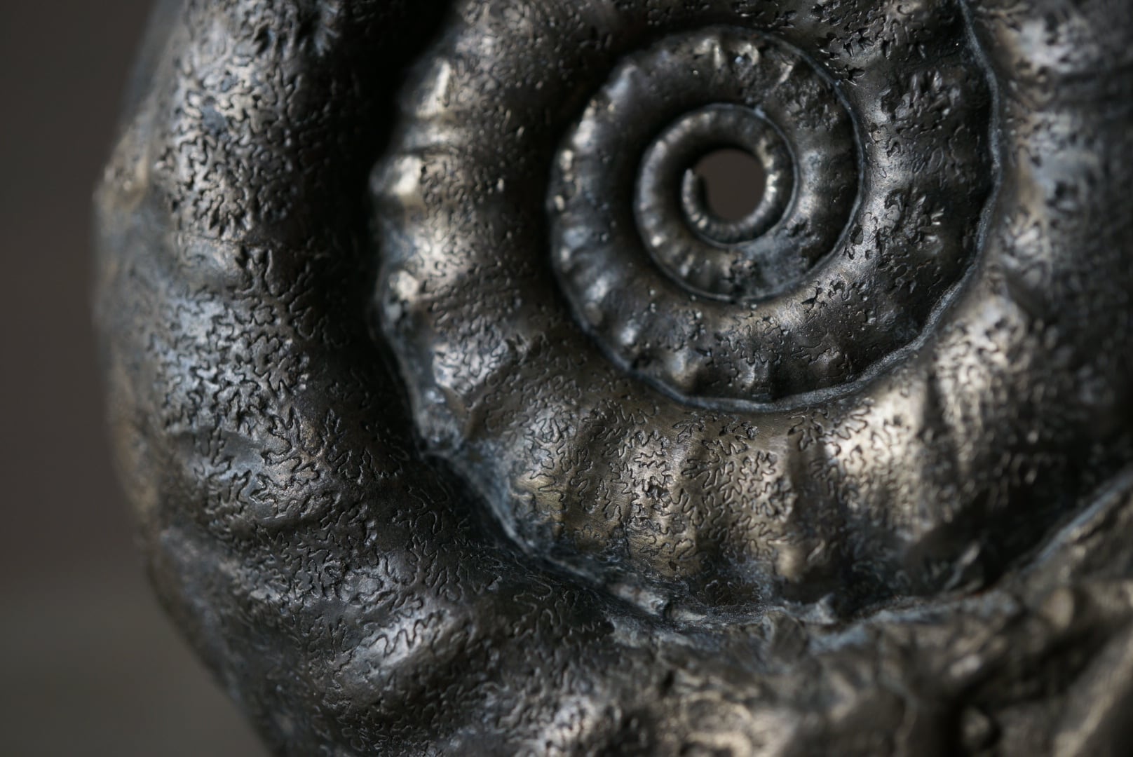 置換の過程で形づくられた螺旋は、有機的な輪郭を保ったまま、燻し銀のような沈んだ輝きをまとっています。