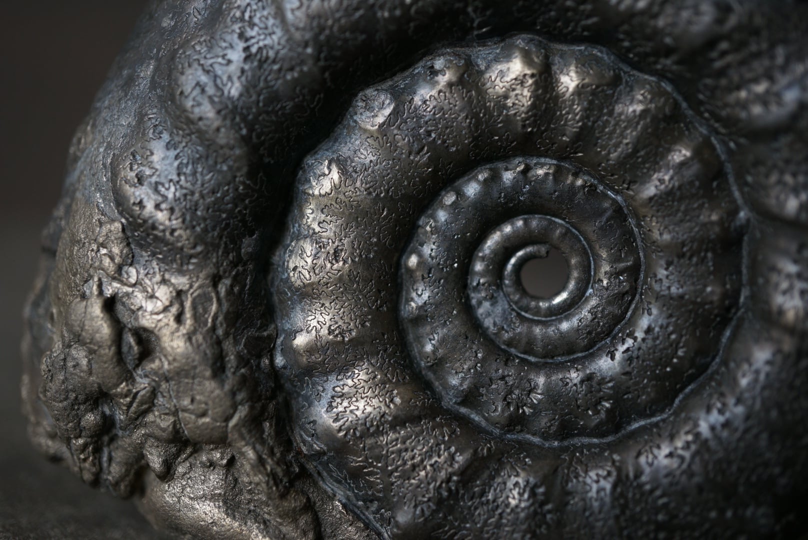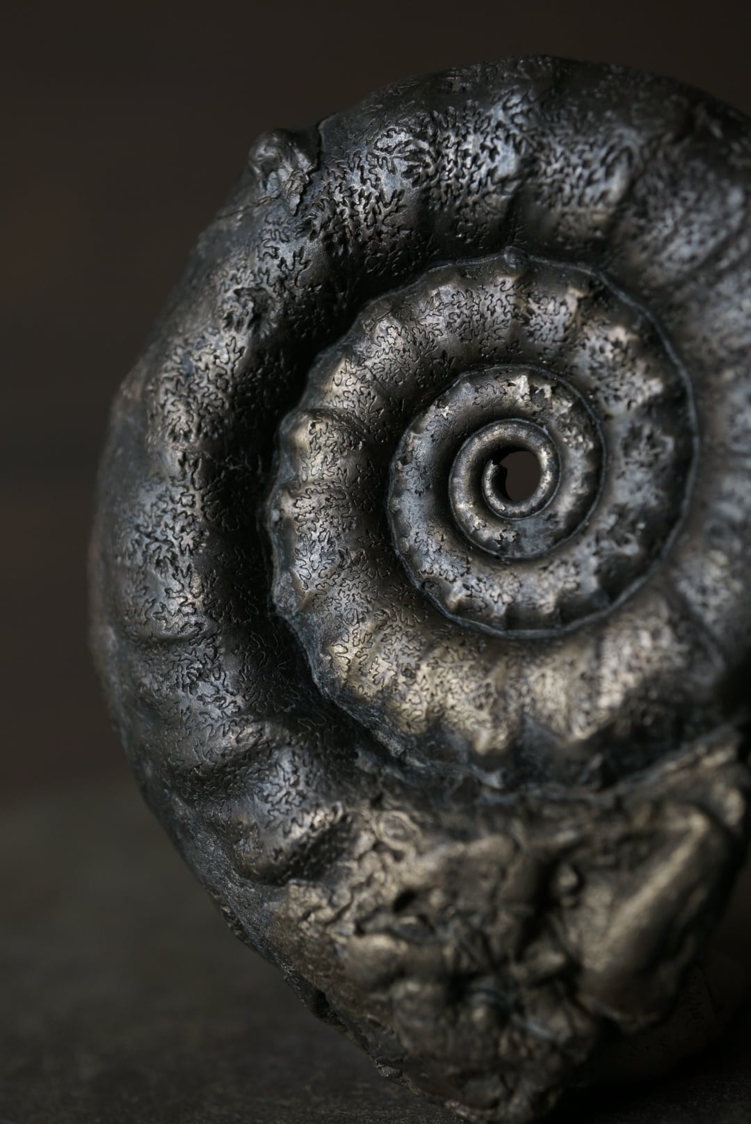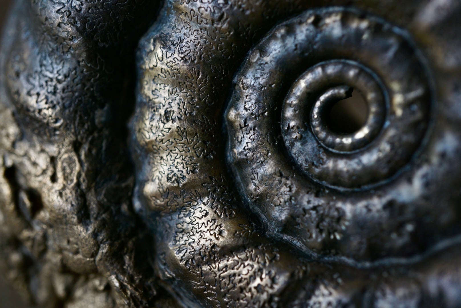 置換の過程で形づくられた螺旋は、有機的な輪郭を保ったまま、燻し銀のような沈んだ輝きをまとっています。