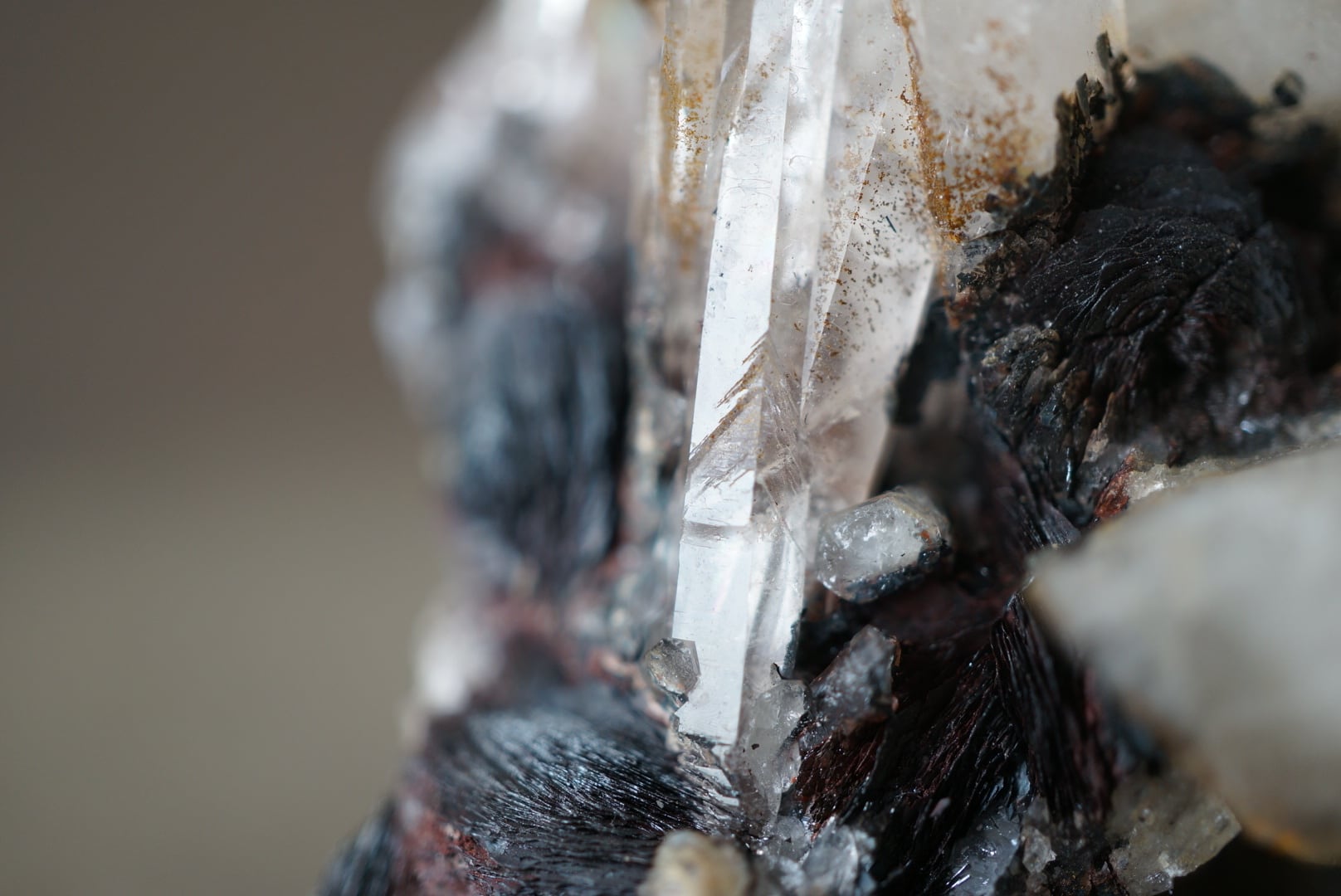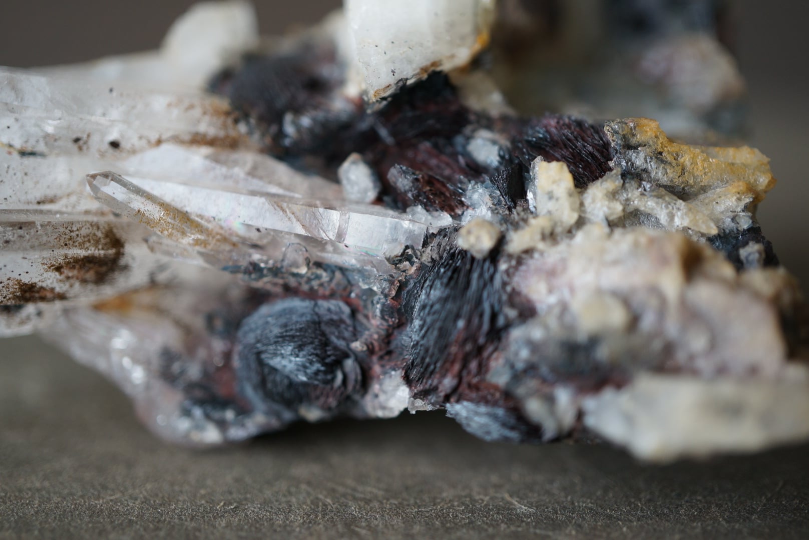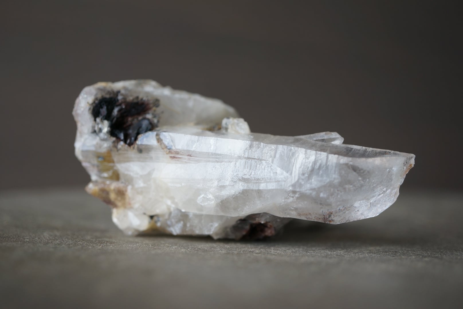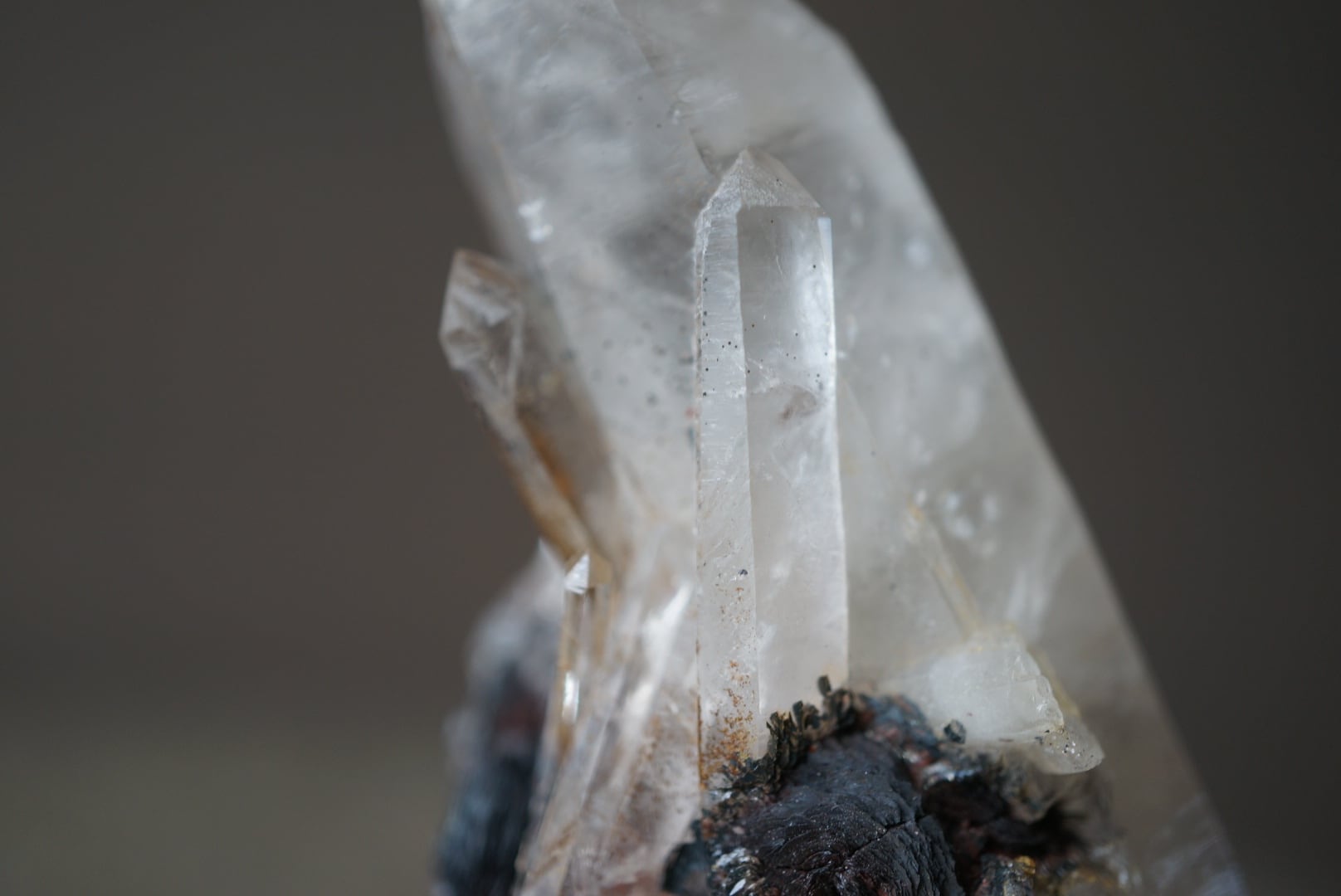 その硬質で重厚な質感に対して、伸びやかに突き出すクォーツは鋭いラインを描きながら光を透過します。
