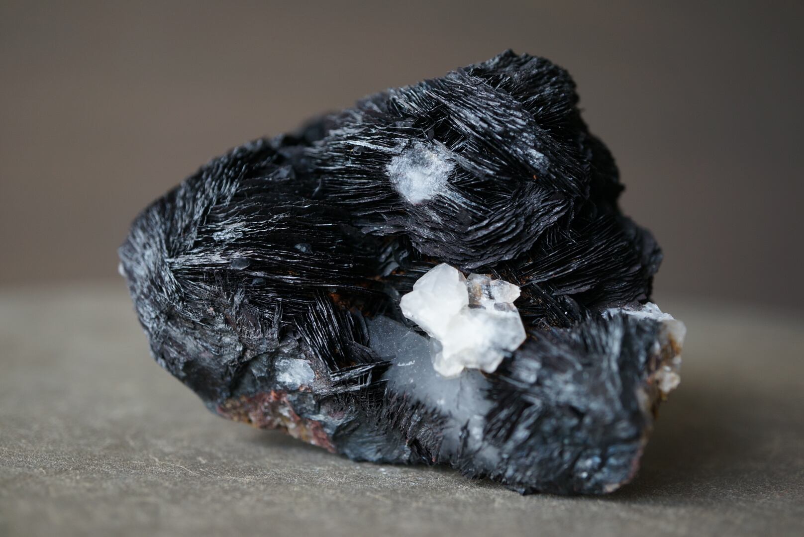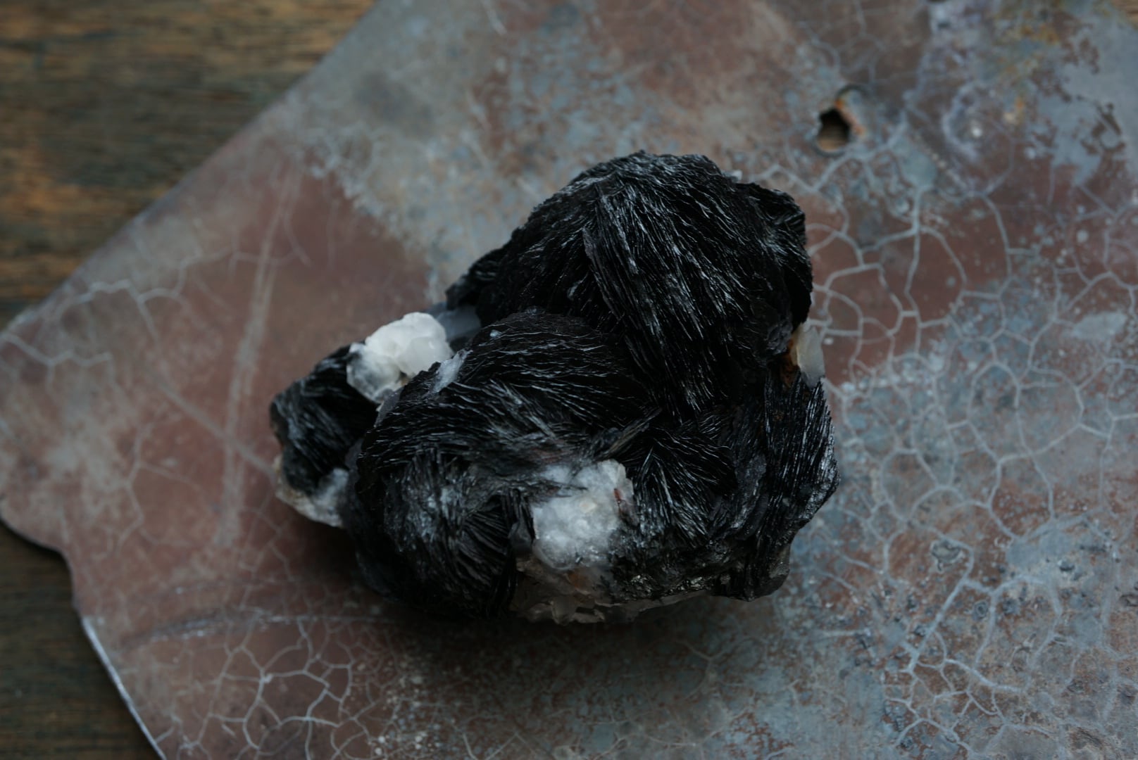 アイアンローズとは酸化鉄により赤みを帯びたヘマタイトが花弁のように幾重にも折り重なり、まさに「鉄の薔薇」と呼ばれる所以を示す希少な結晶です。