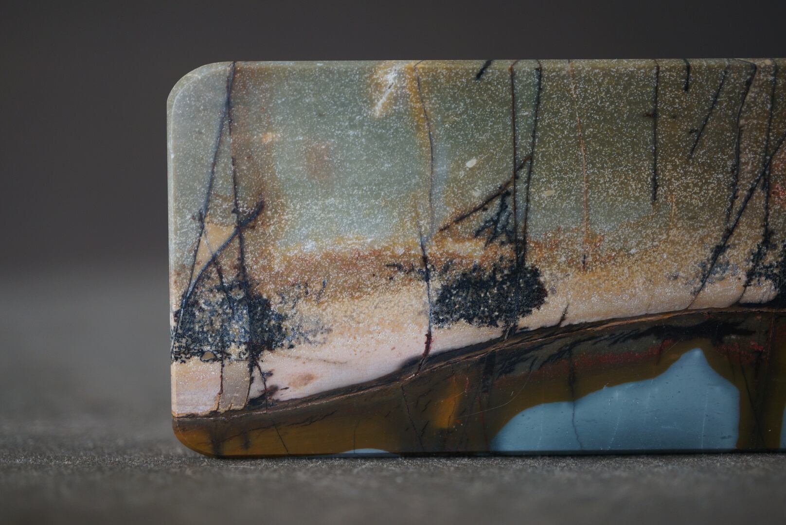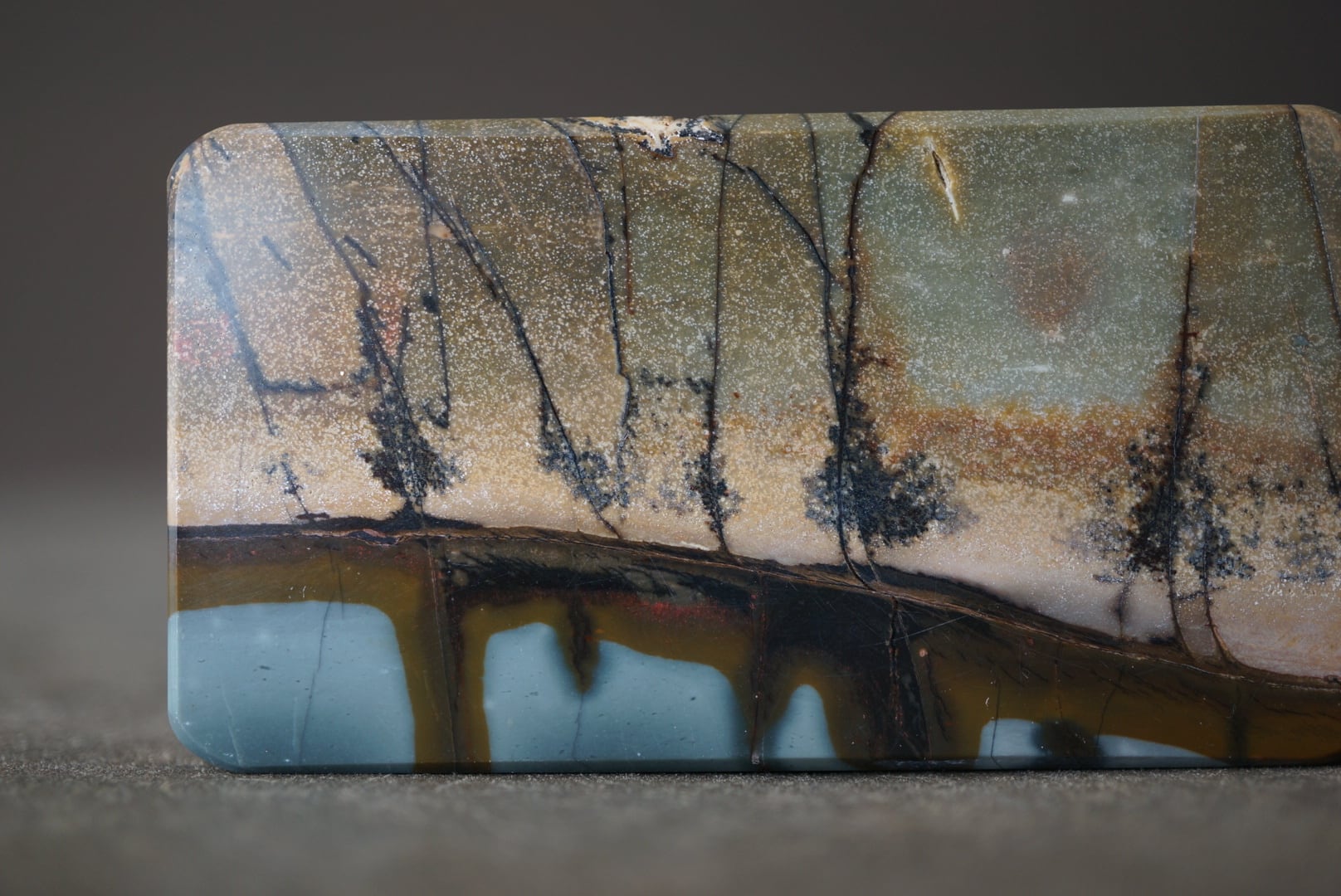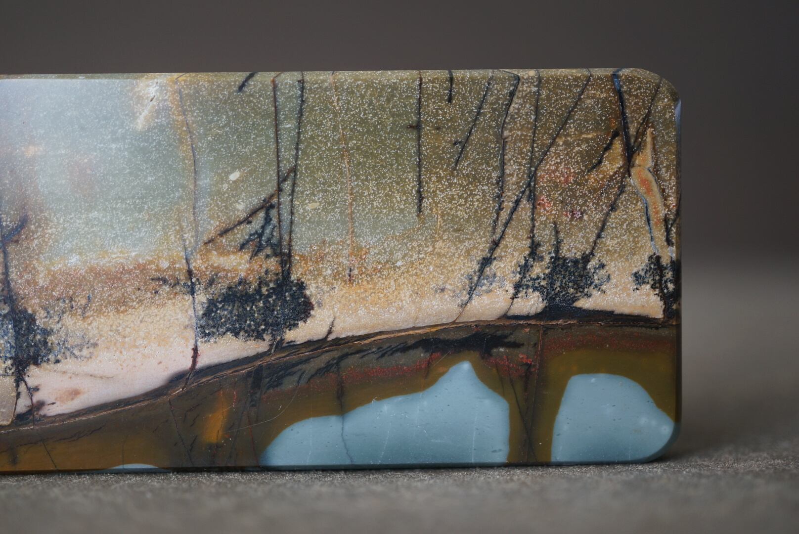 絵画的に切り取られた希少なスクエア型のチェリークリークジャスパーです。