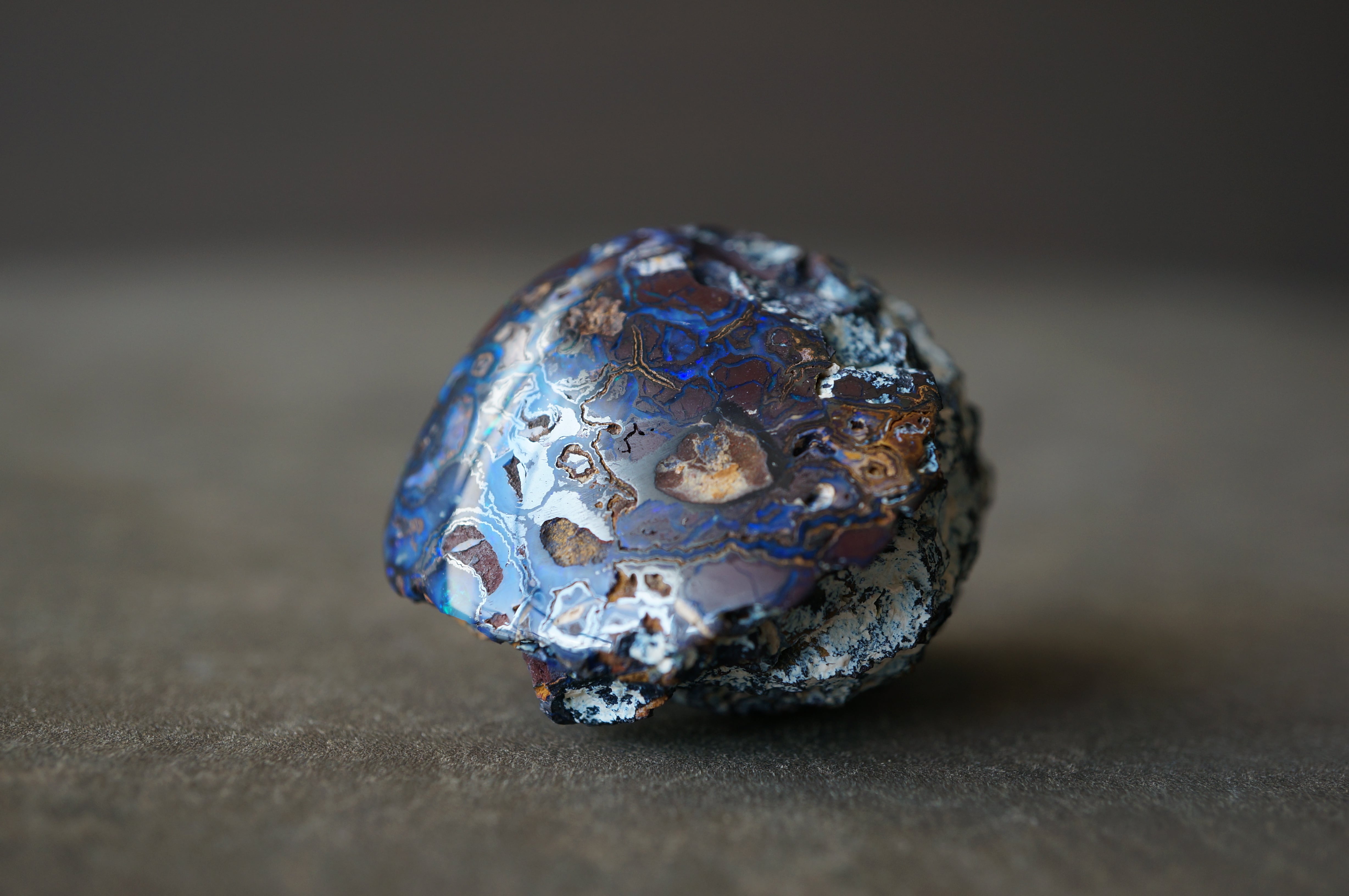 ボルダーオパールは鉄分を多く含む砂岩中に形成されたオパールを、母岩ごと切り出したものです。