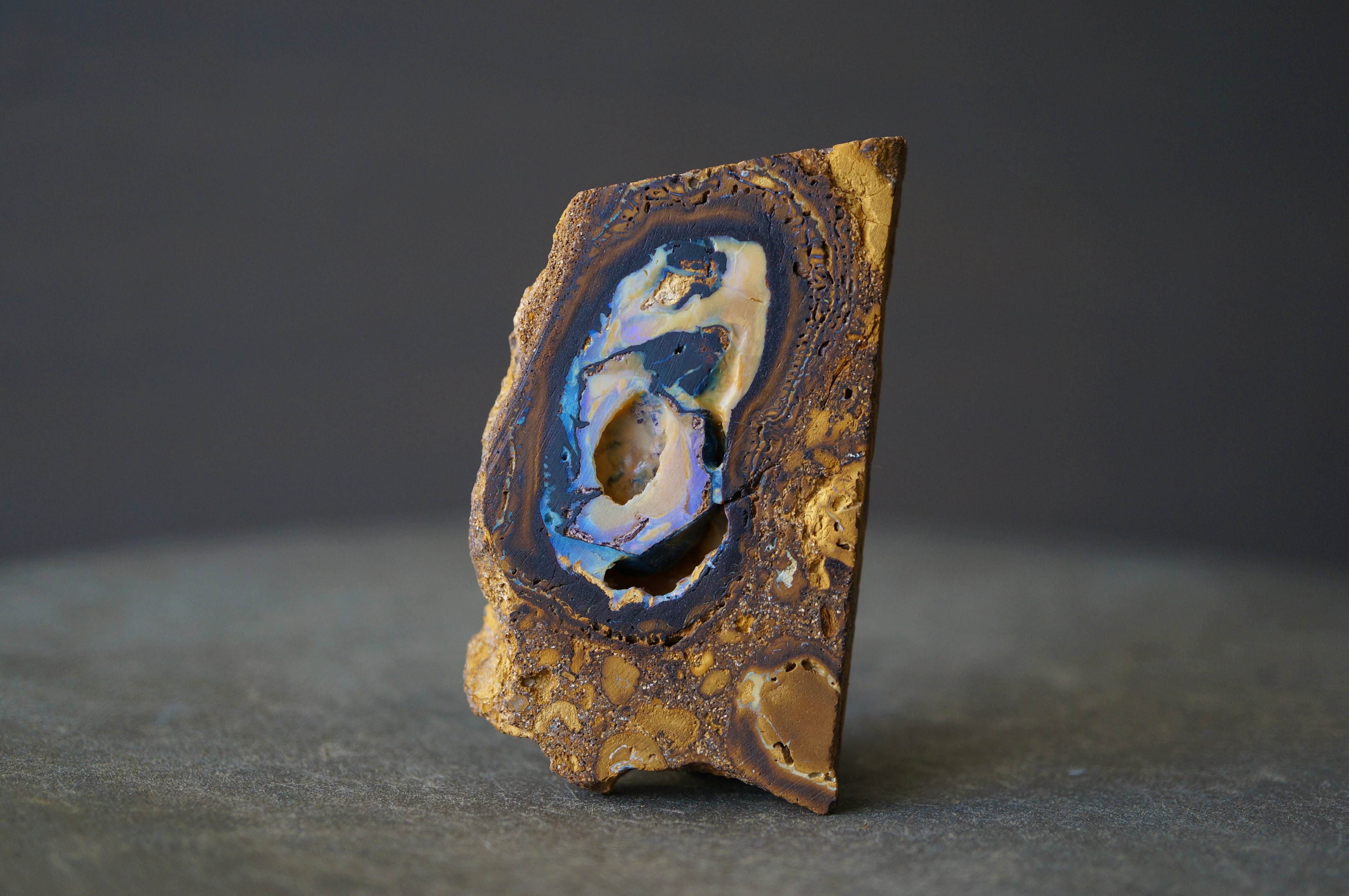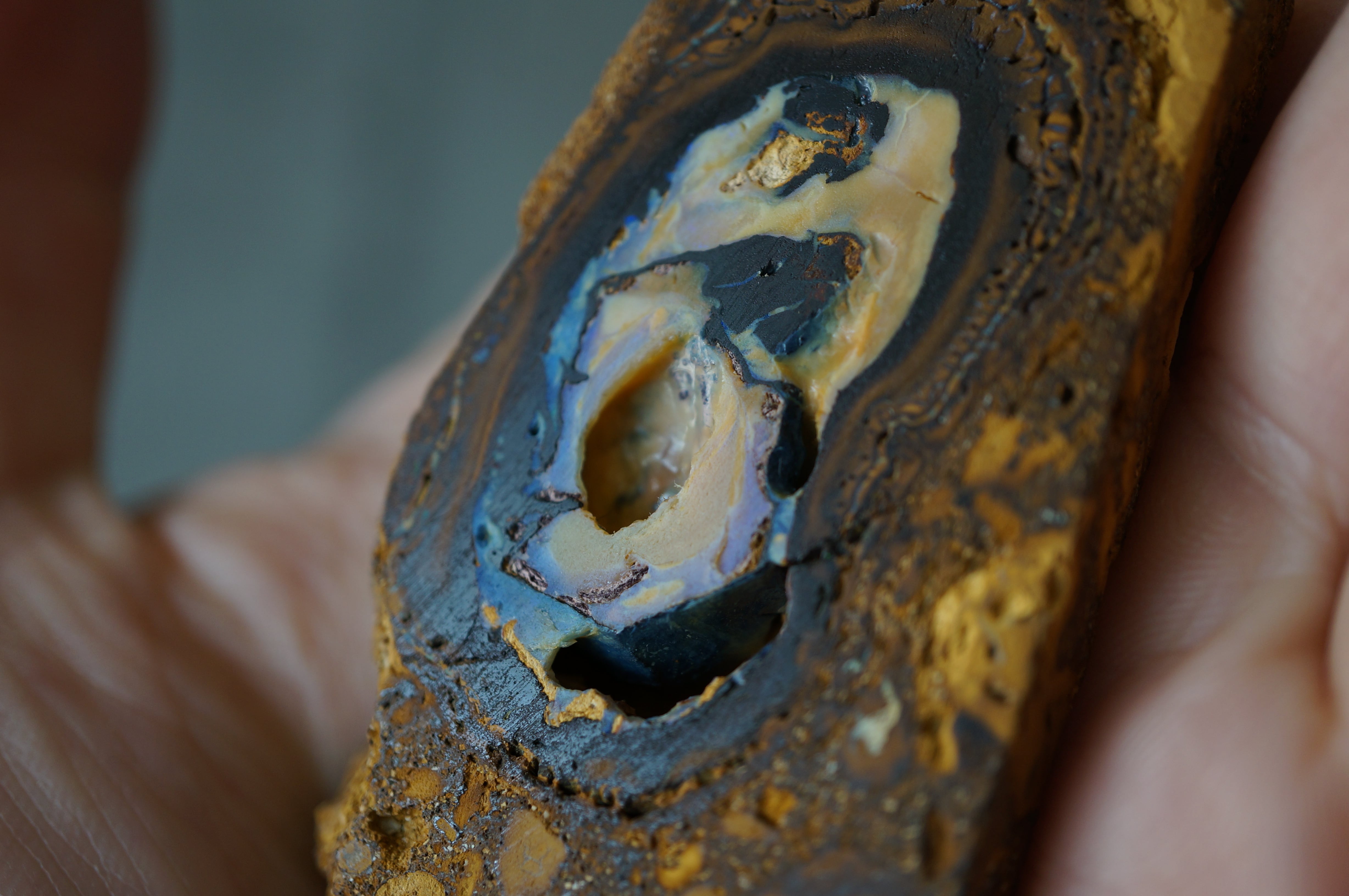 ボルダーオパールは鉄分を多く含む砂岩中に形成されたオパールを、母岩ごと切り出したものです。