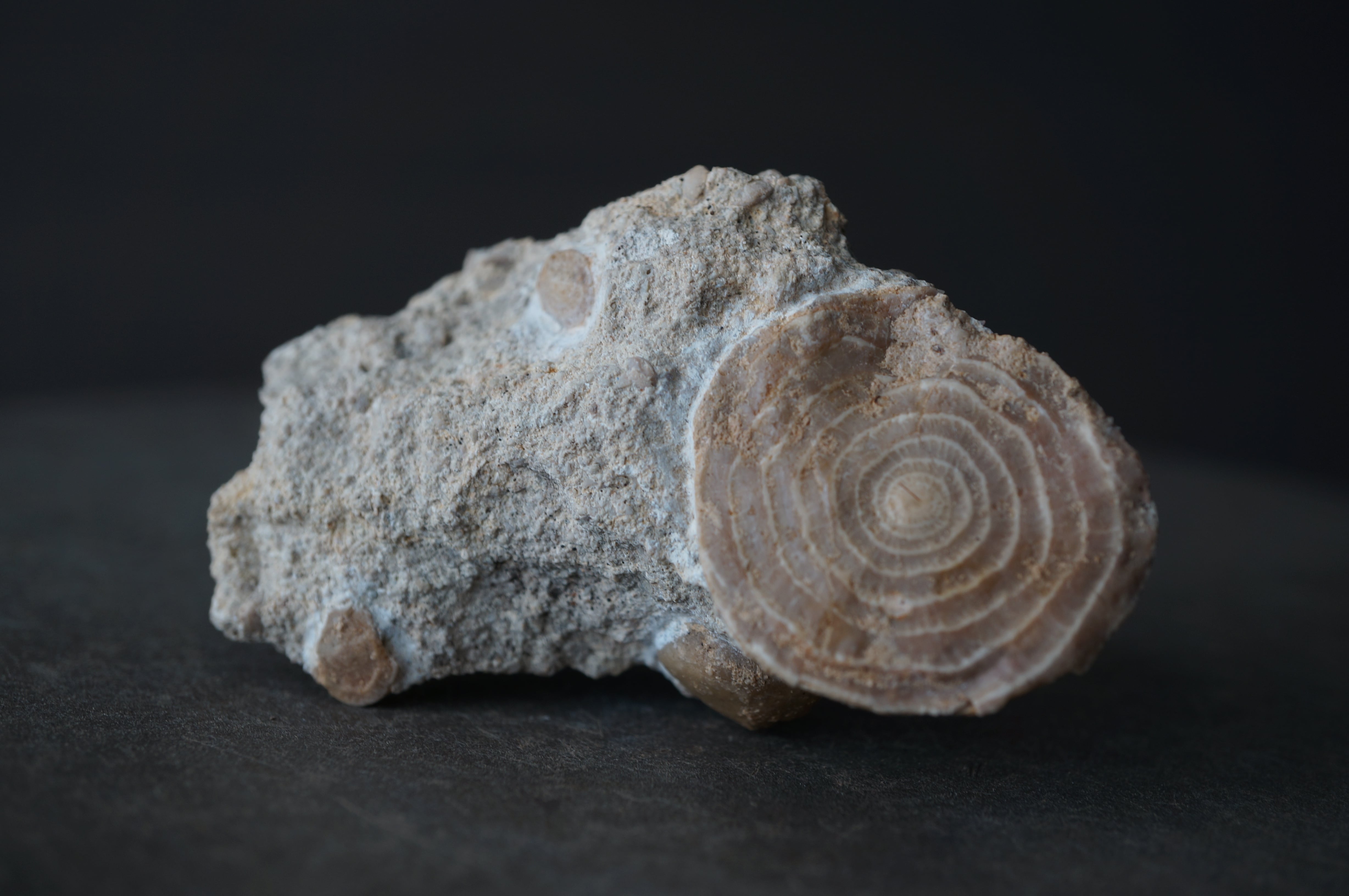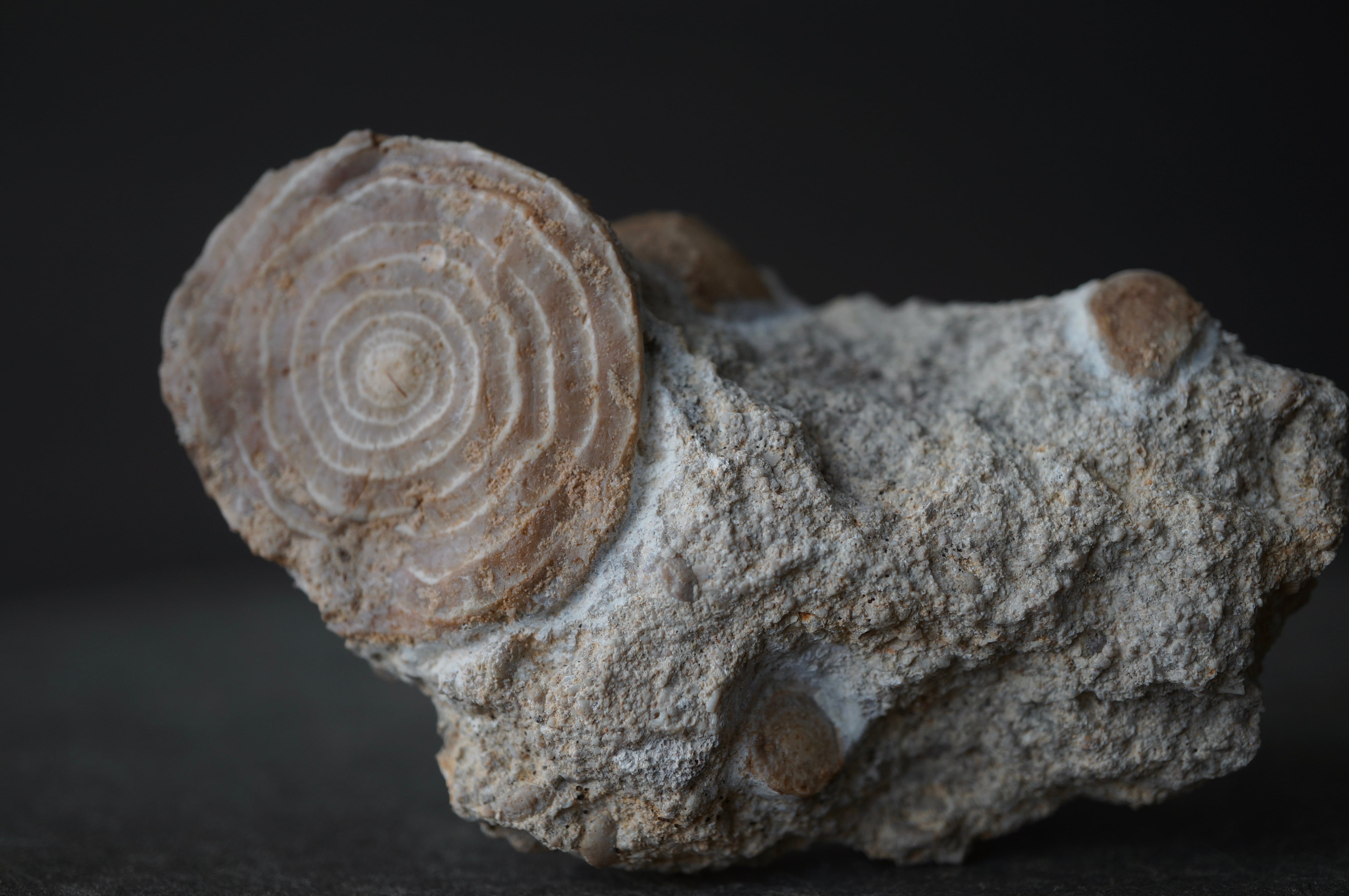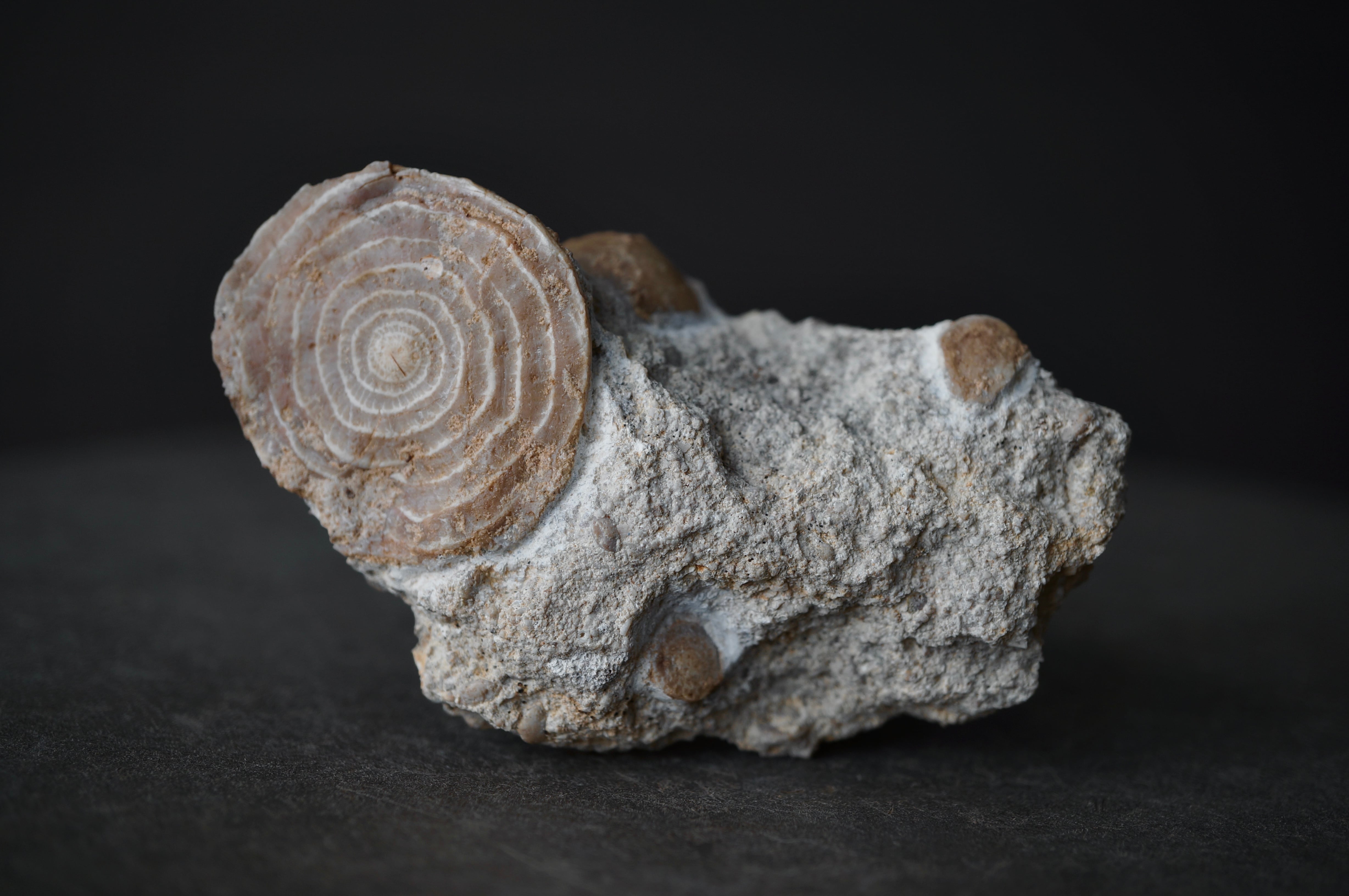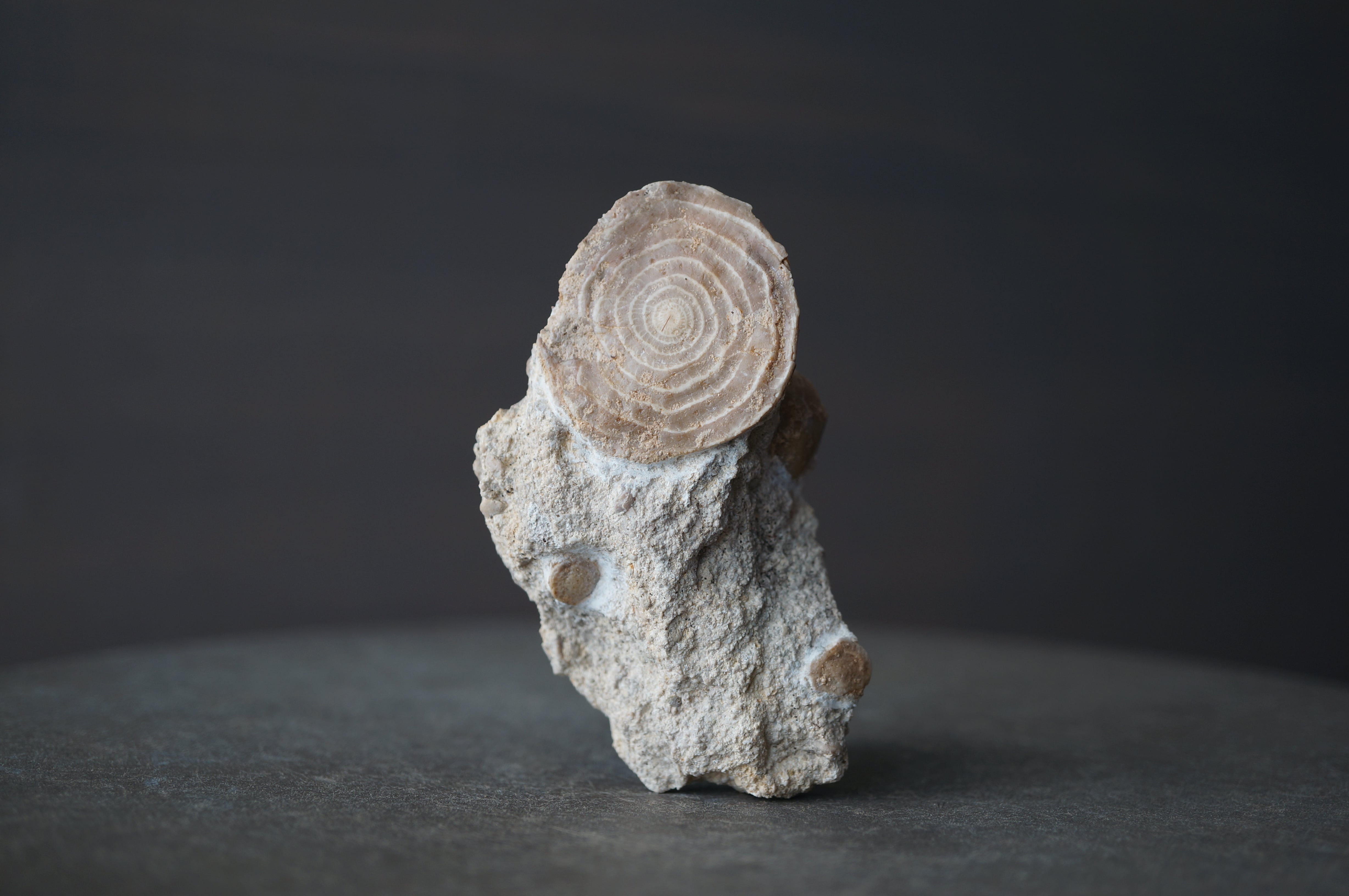 「貨幣石(ヌムリテス)」という名称は、ラテン語 nummulus(小さな貨幣)に由来します。円盤状の平たい殻が古代の硬貨に似ていることからその名が与えられ、日本でもその形状になぞらえて「貨幣石」と呼ばれてきました。
