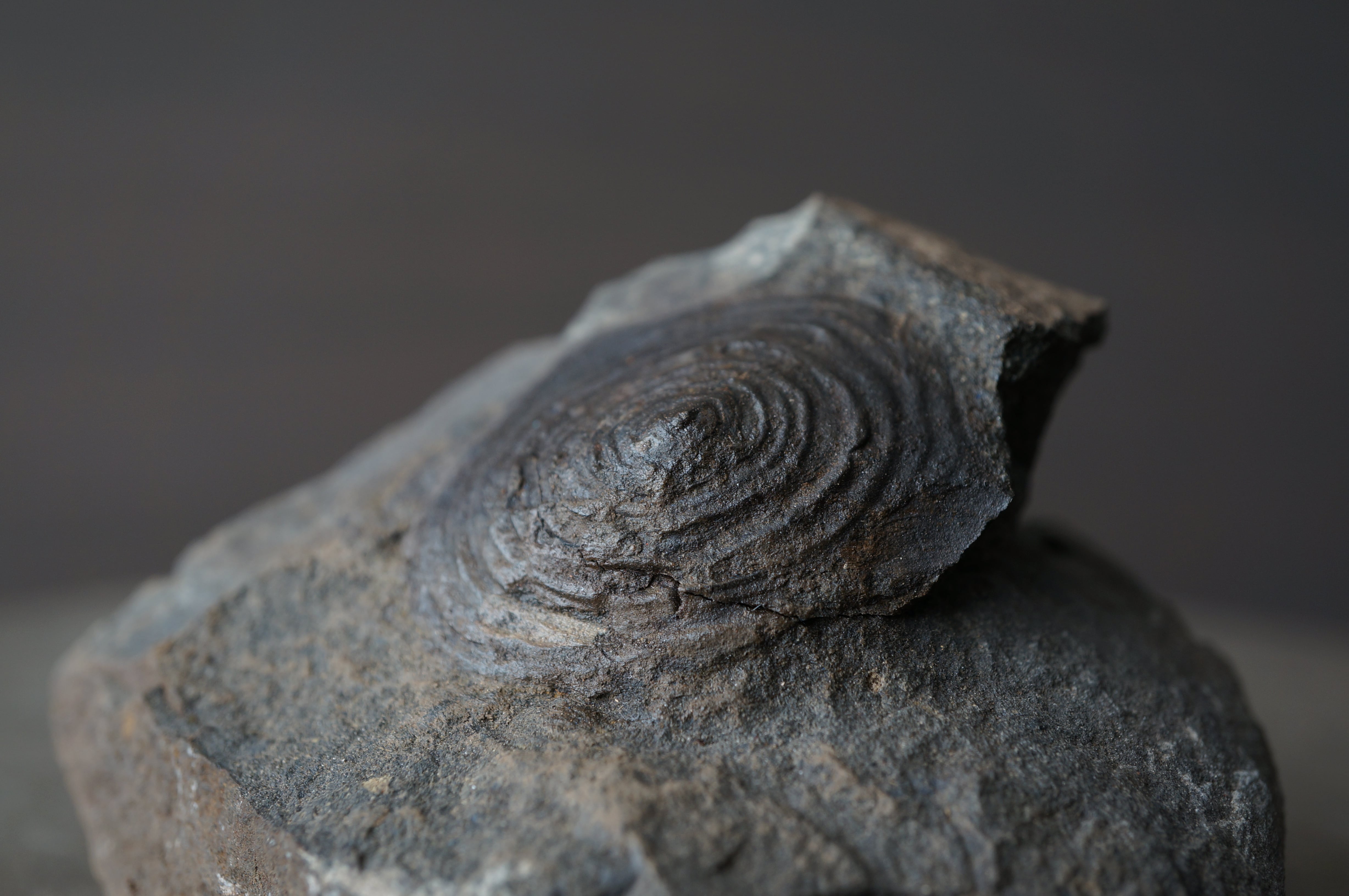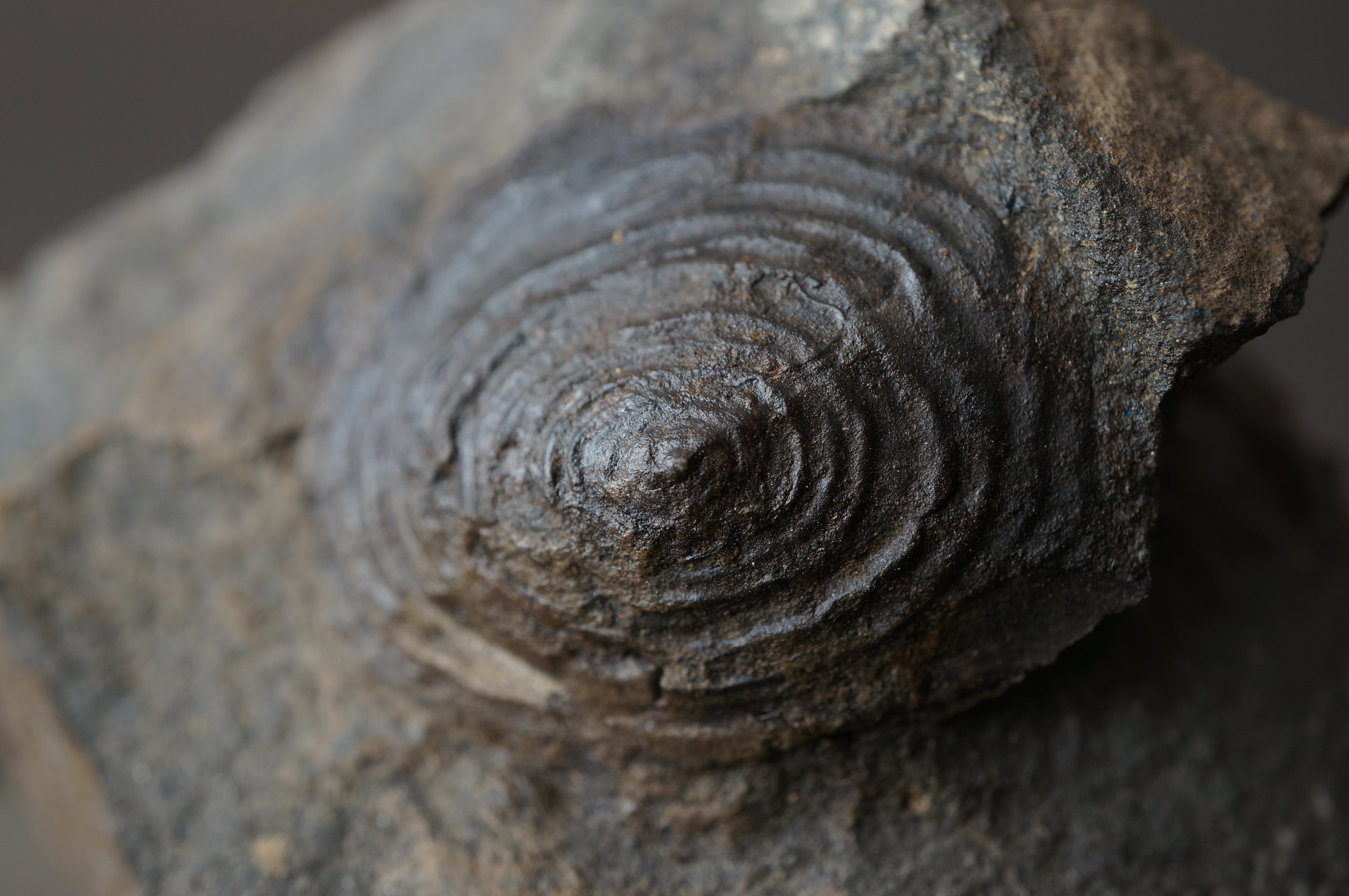 殻の断面には、中心から外縁へと同心円状の成長線が明瞭に刻まれています。