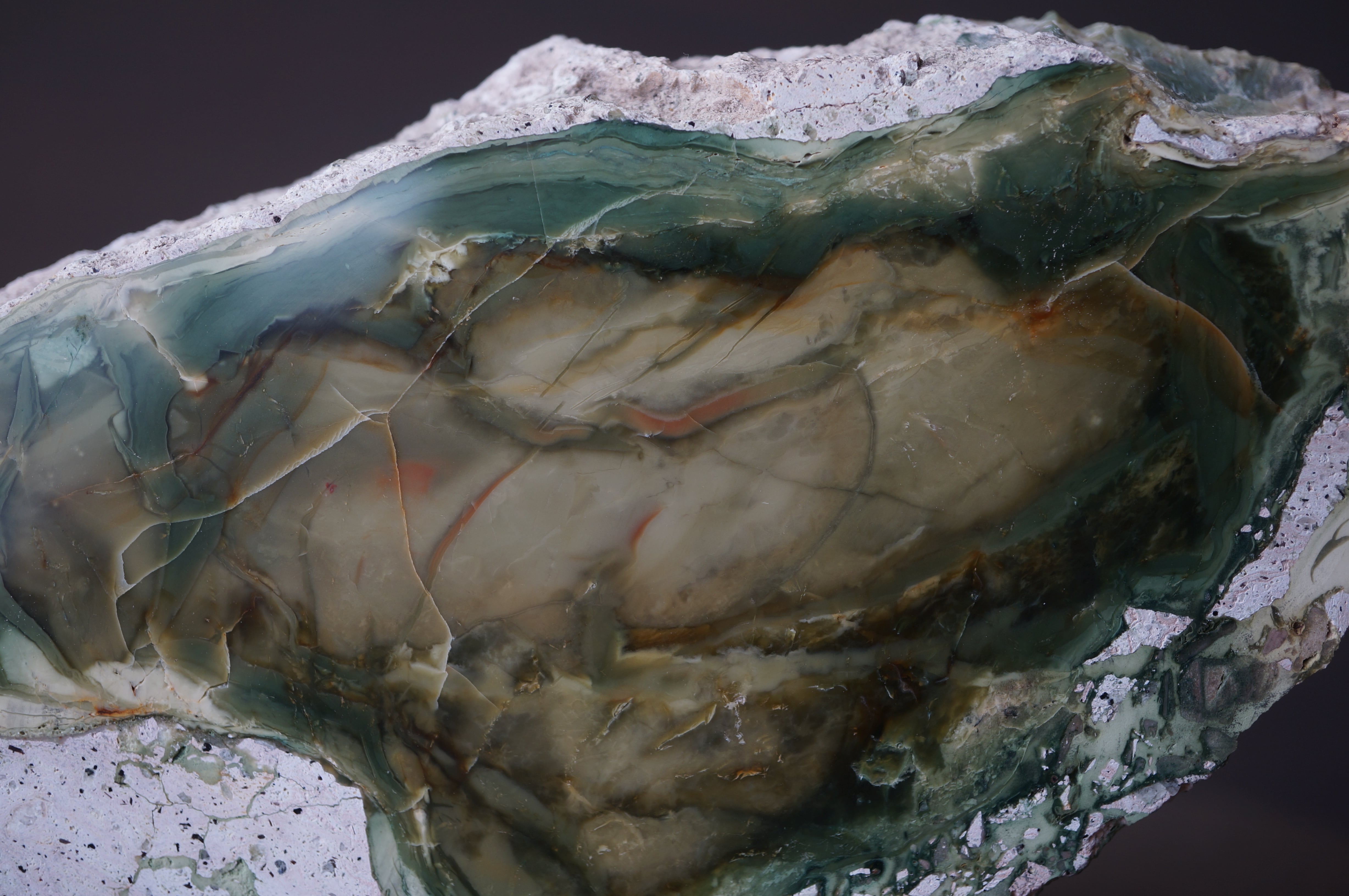 オレゴン州オワイヒー川沿岸では様々なジャスパーが産出され、モリソナイトはその中でも特に芸術的な模様を表す人気種です。