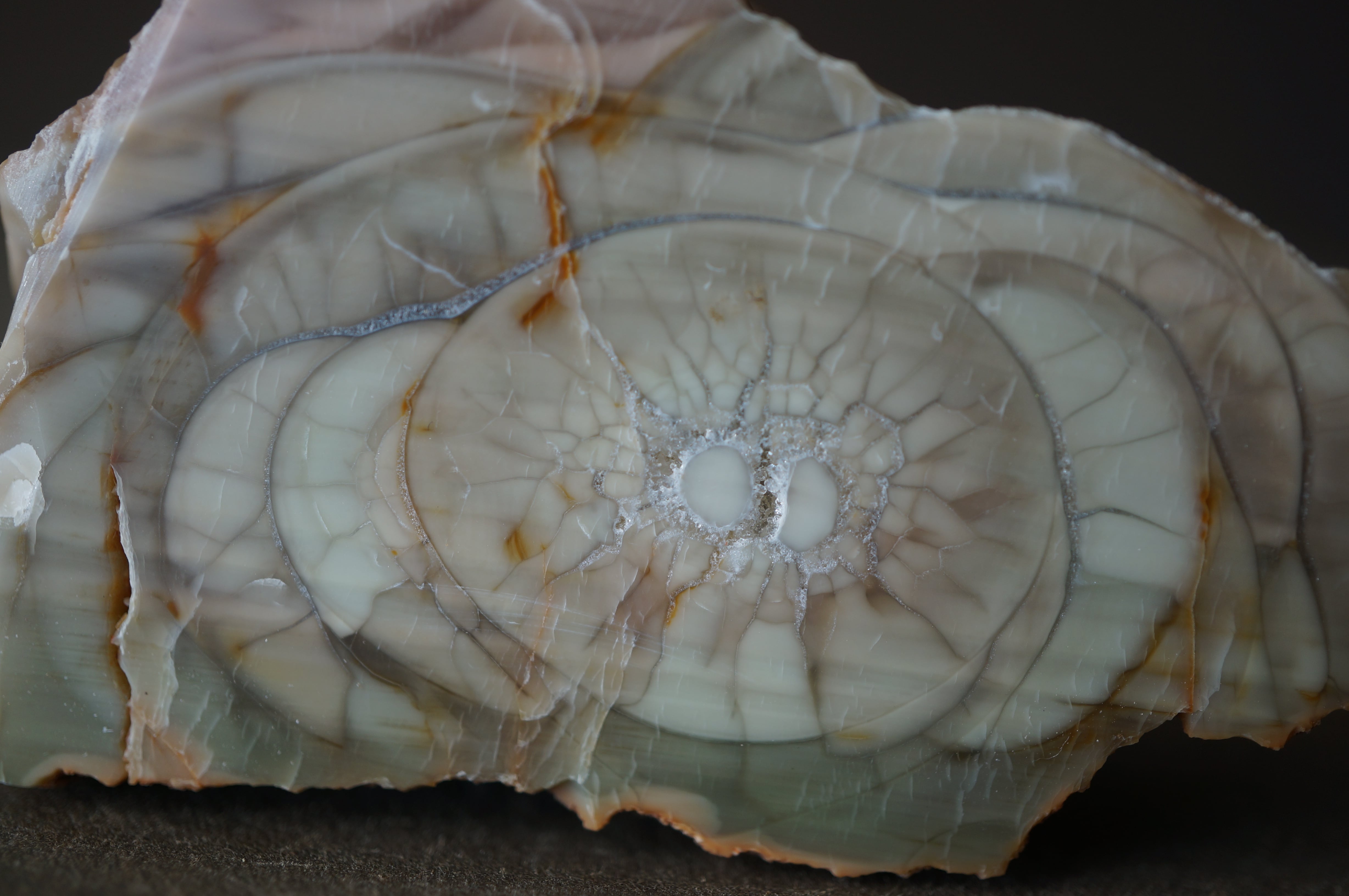 断面のみならず、外殻のジャスパーらしい色の連なりも愉しい一石です。
