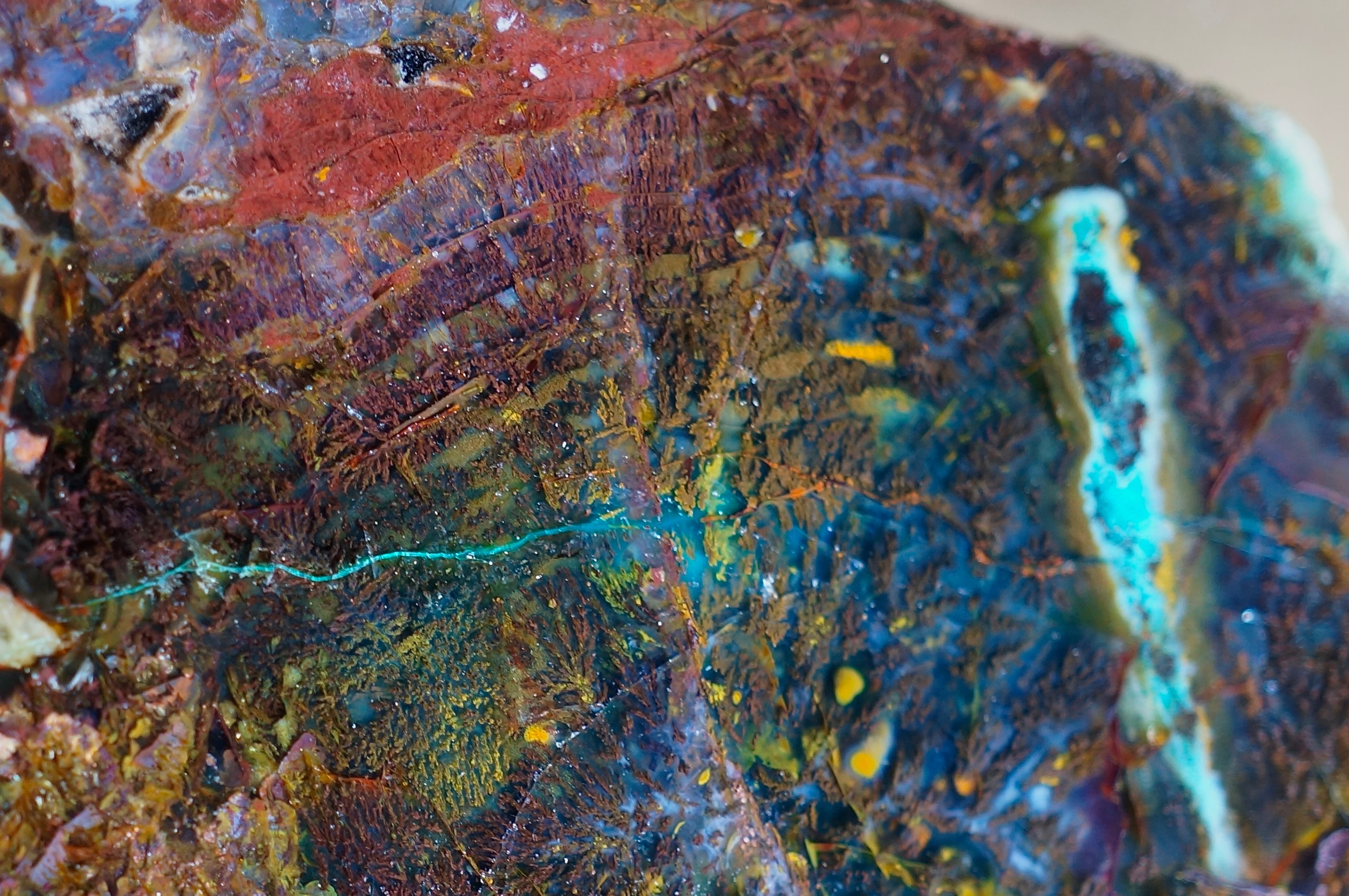太古の木が長い時間をかけて珪化する過程で、銅を含む鉱液によって鮮やかに彩られました。