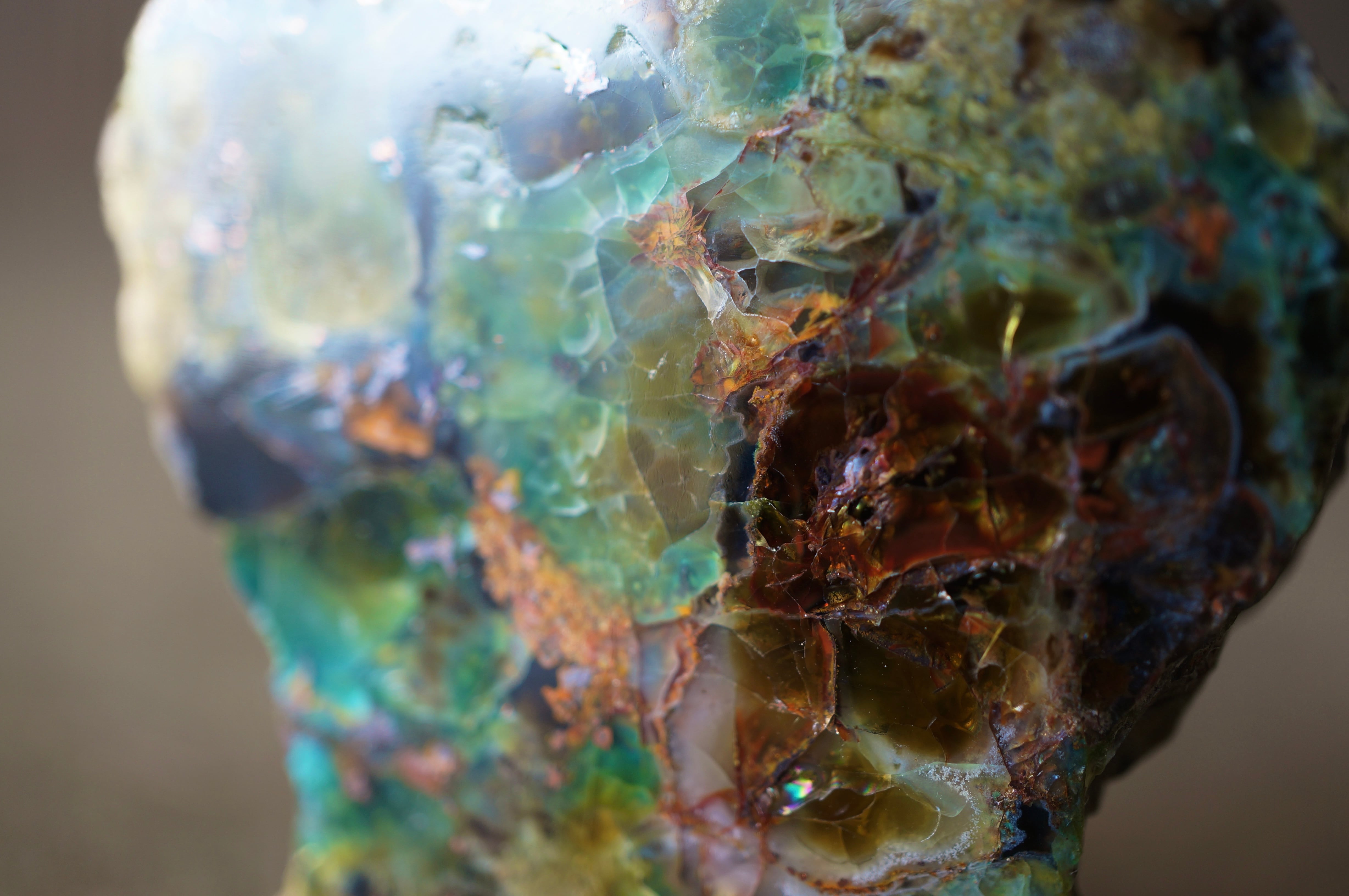 太古の木が長い時間をかけて珪化する過程で、銅を含む鉱液によって鮮やかに彩られました。