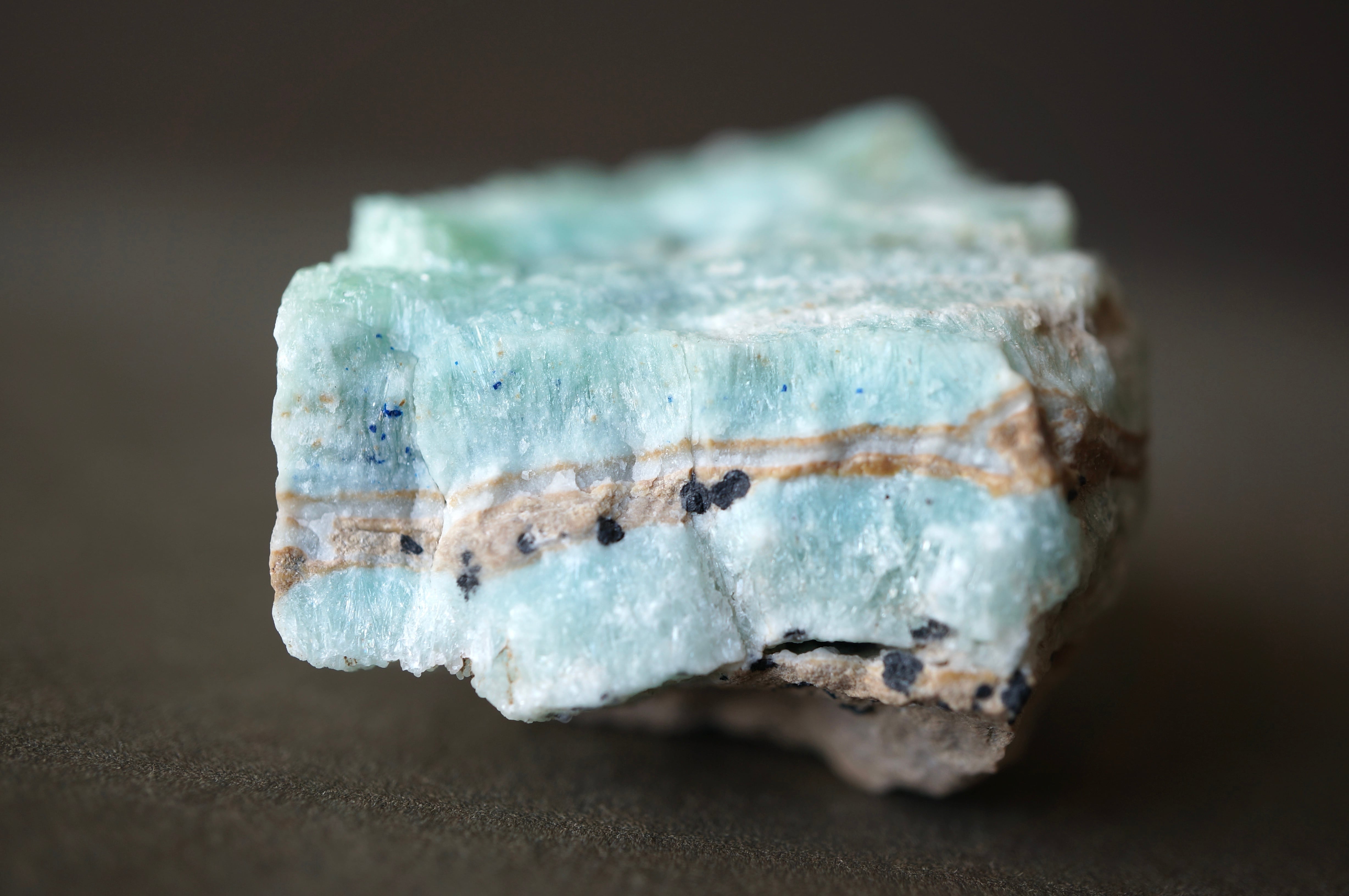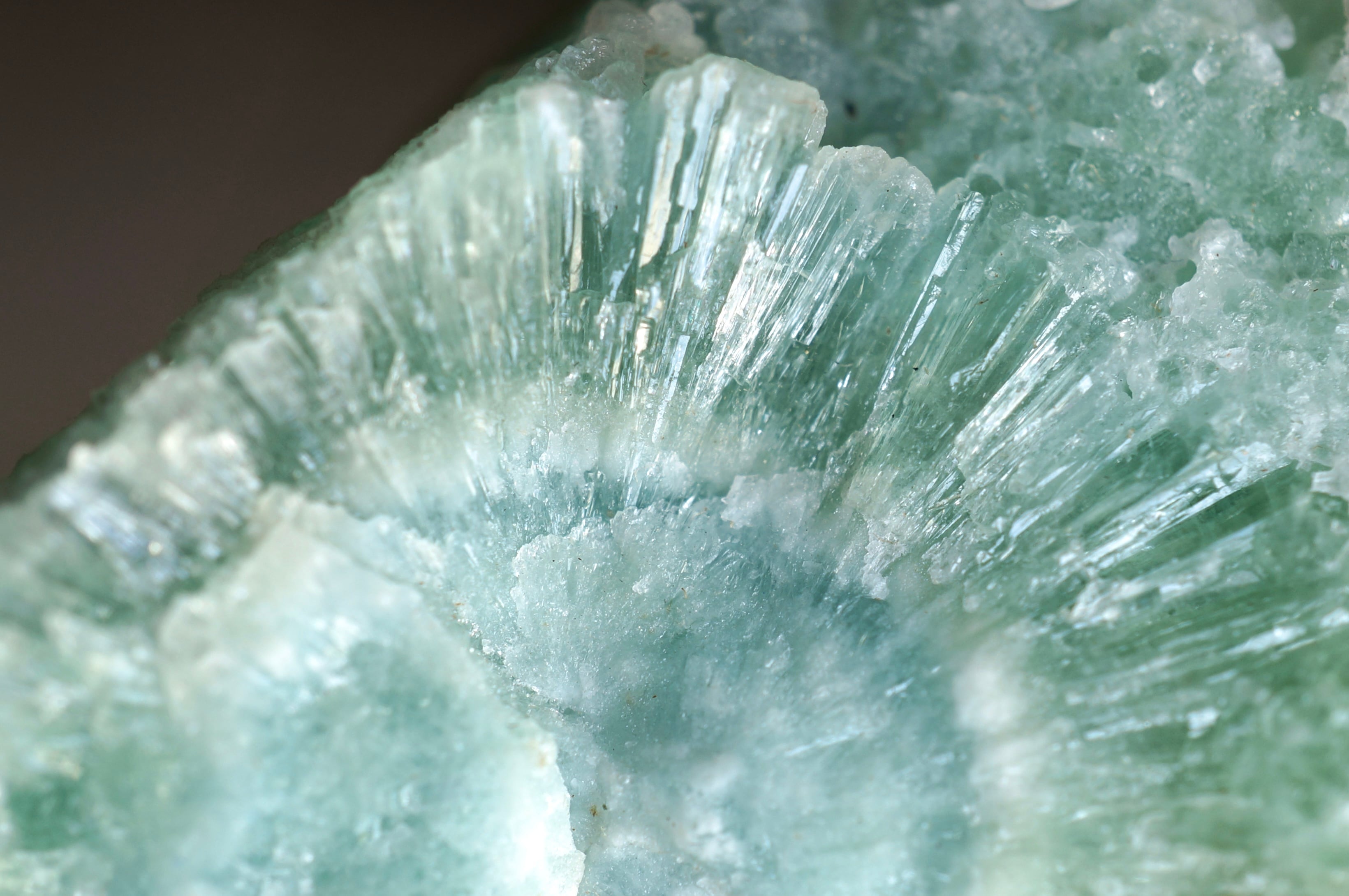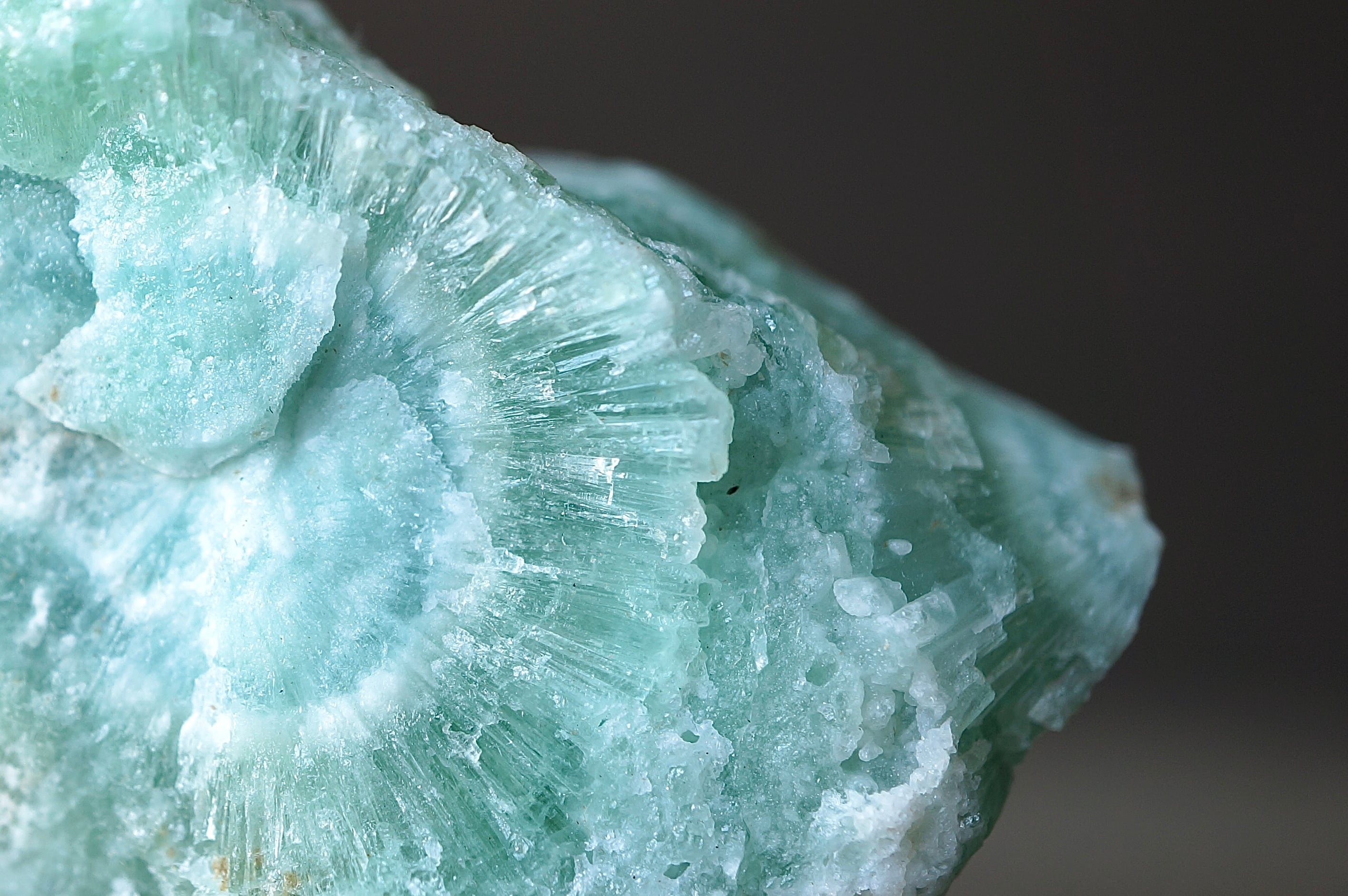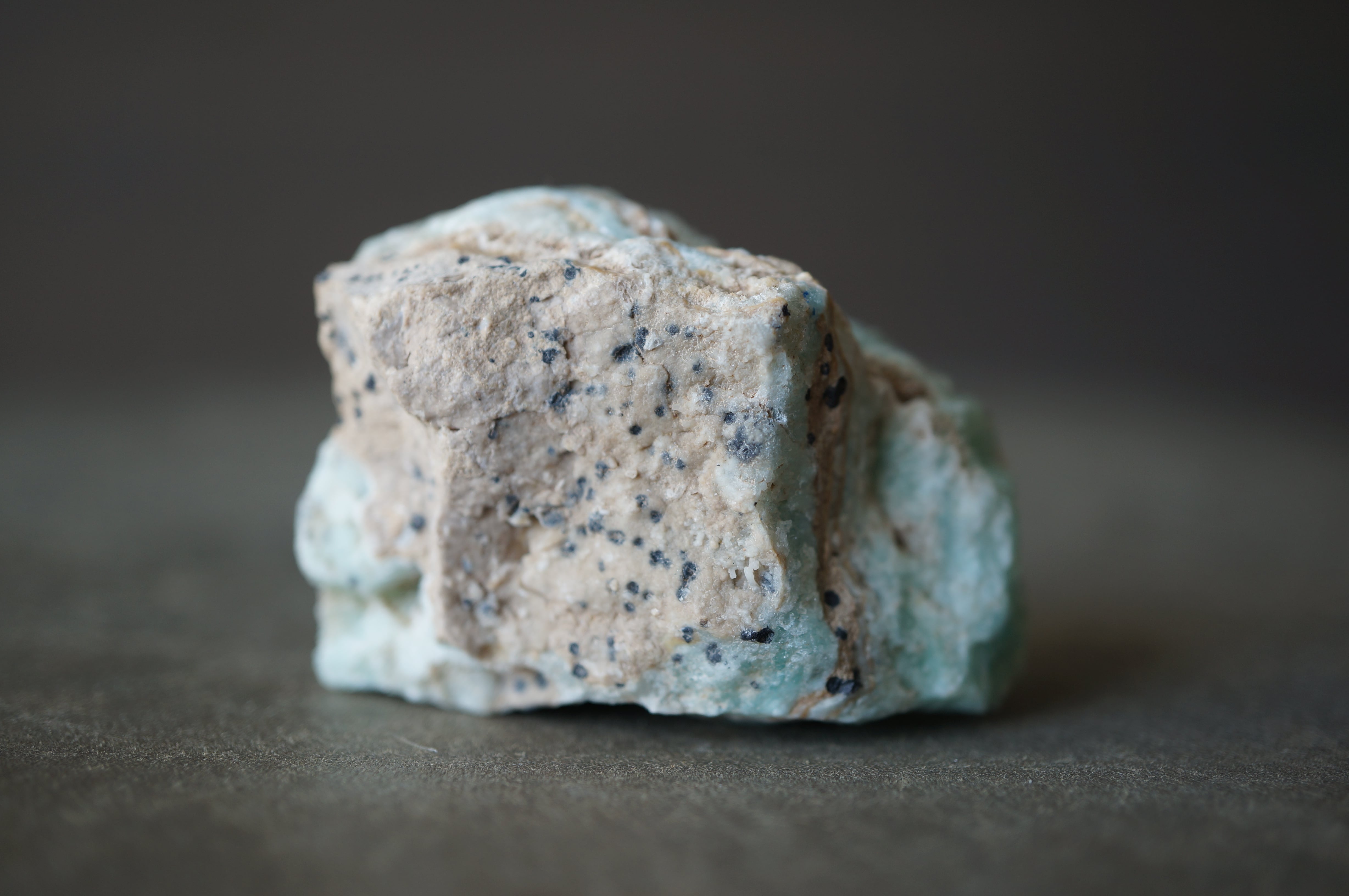 ブルーアラゴナイトのやわらかな淡青緑の発色は、銅イオンを含むことで生じるとされ、青磁を思わせるような静謐な色彩が全体を包みます。