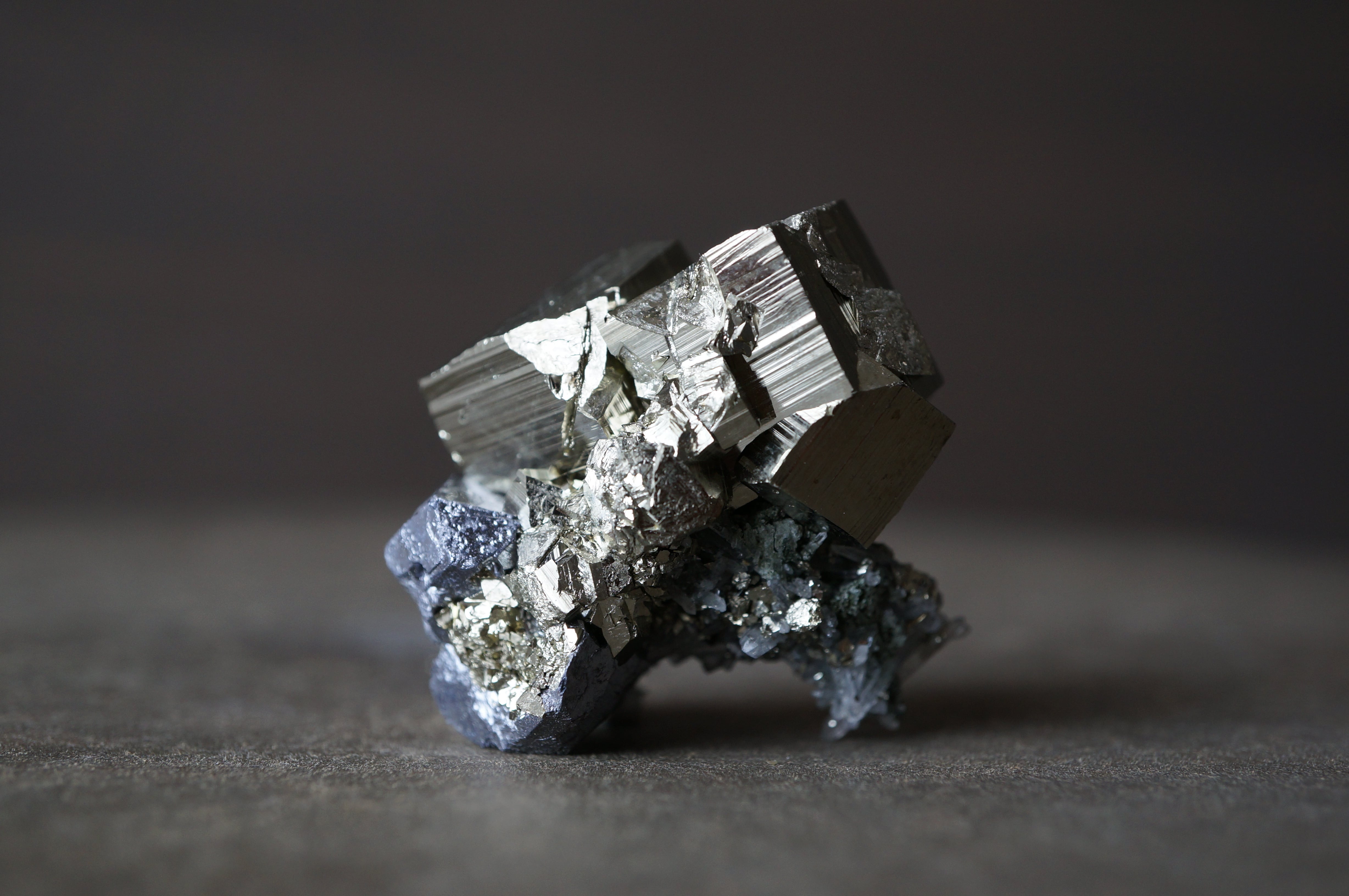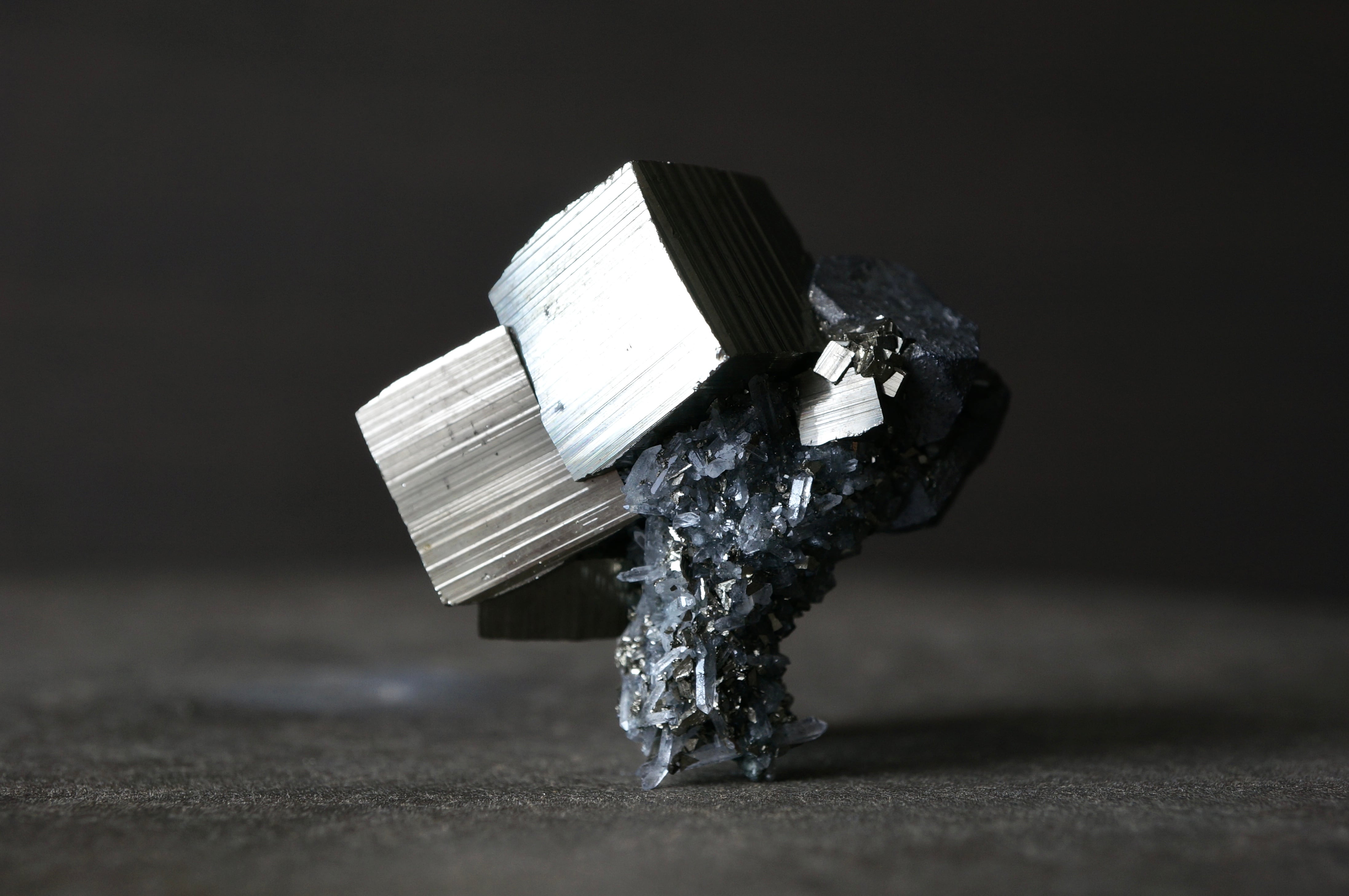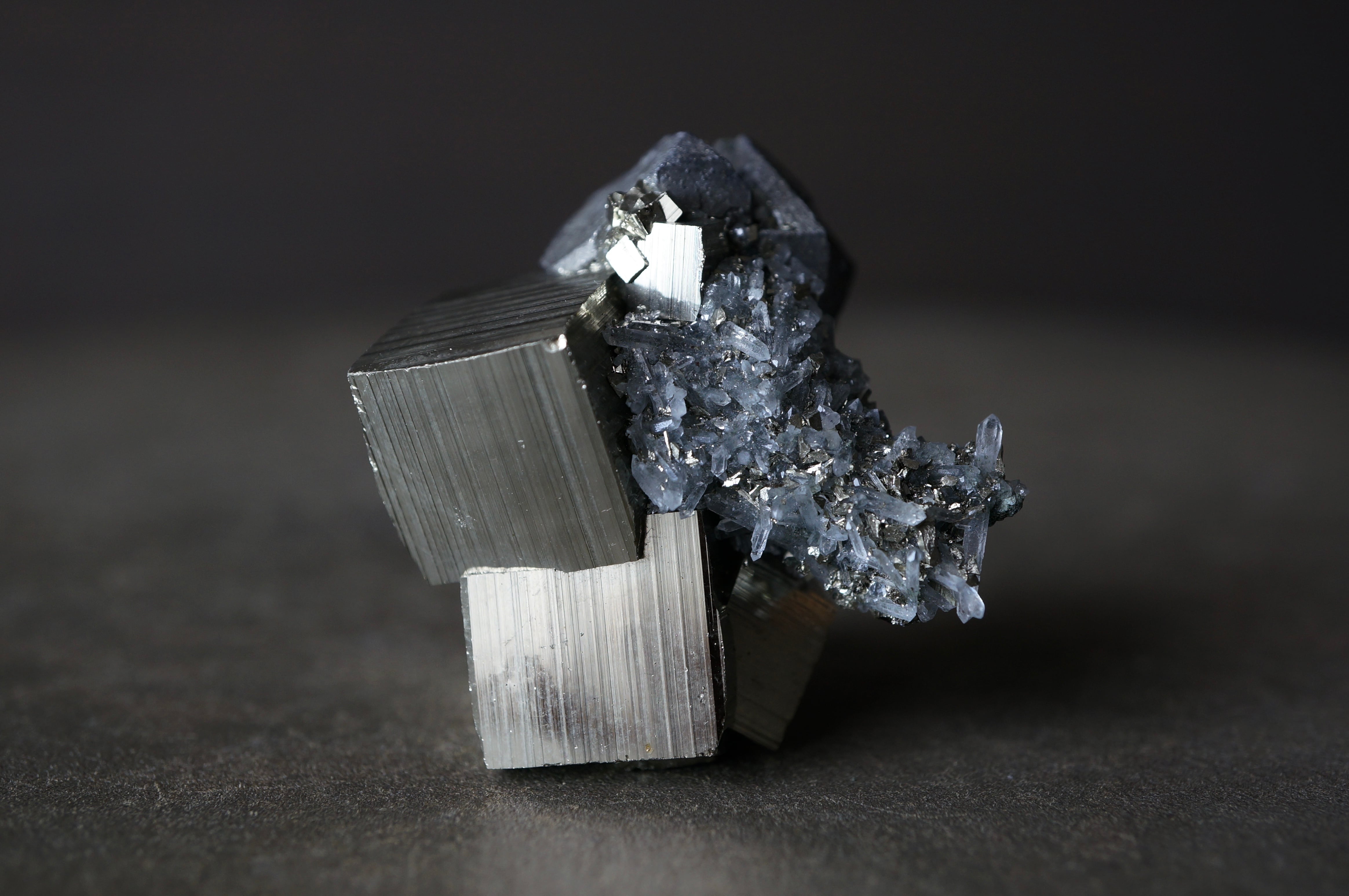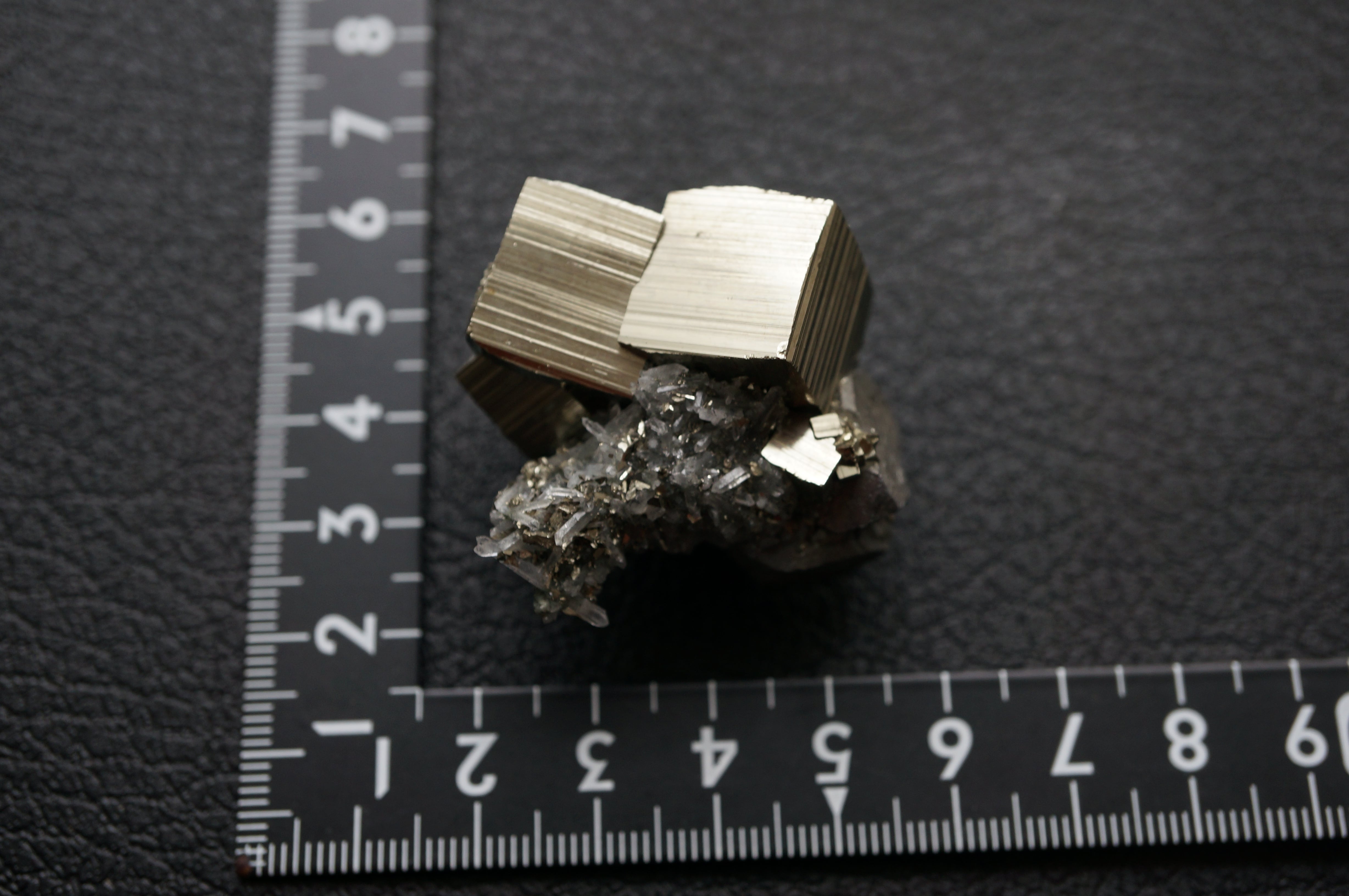 直線的なパイライトが噛み合うように連なり、全体はまるで金属彫刻や建築模型を俯瞰したような構造を見せています。
