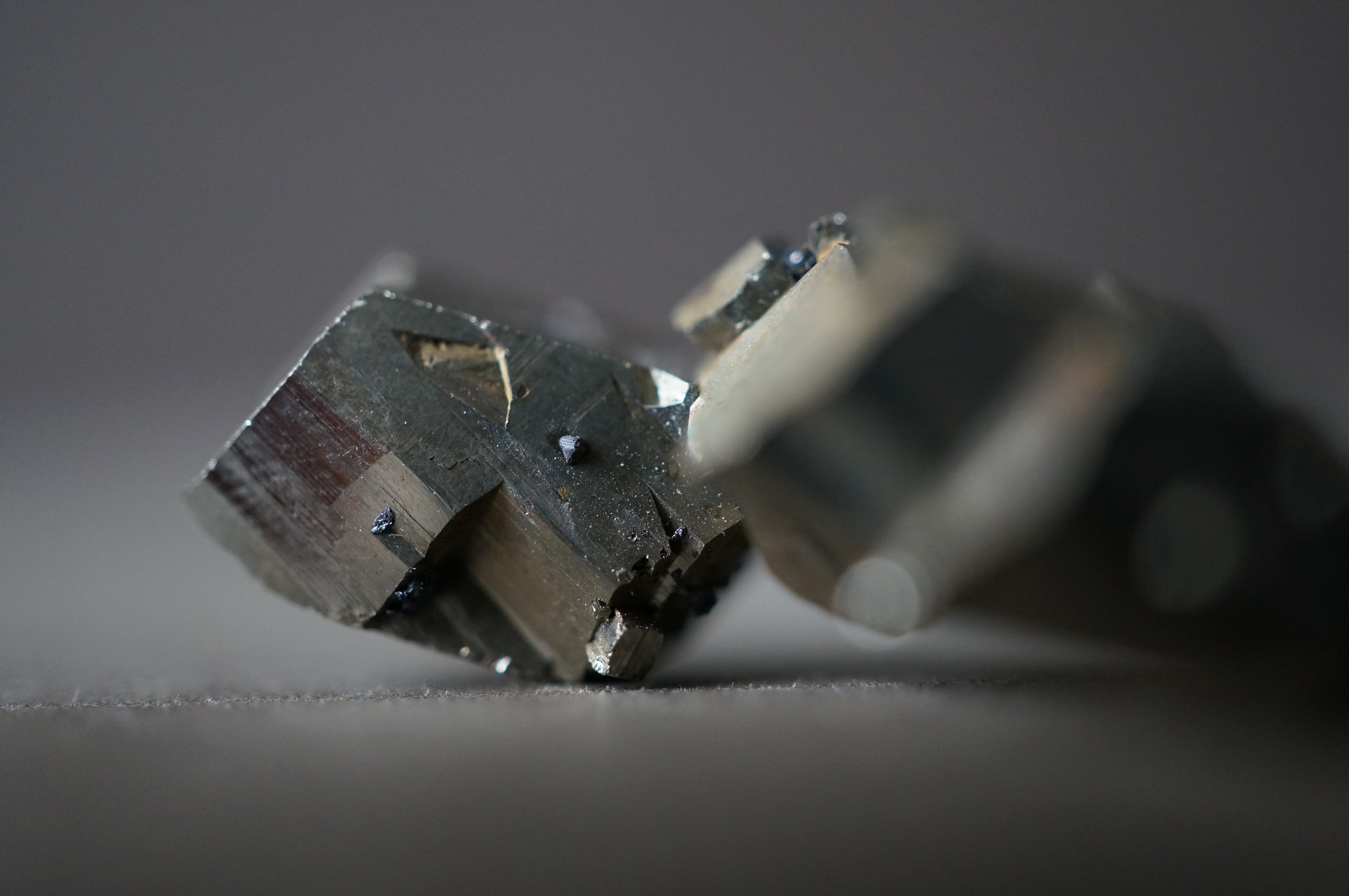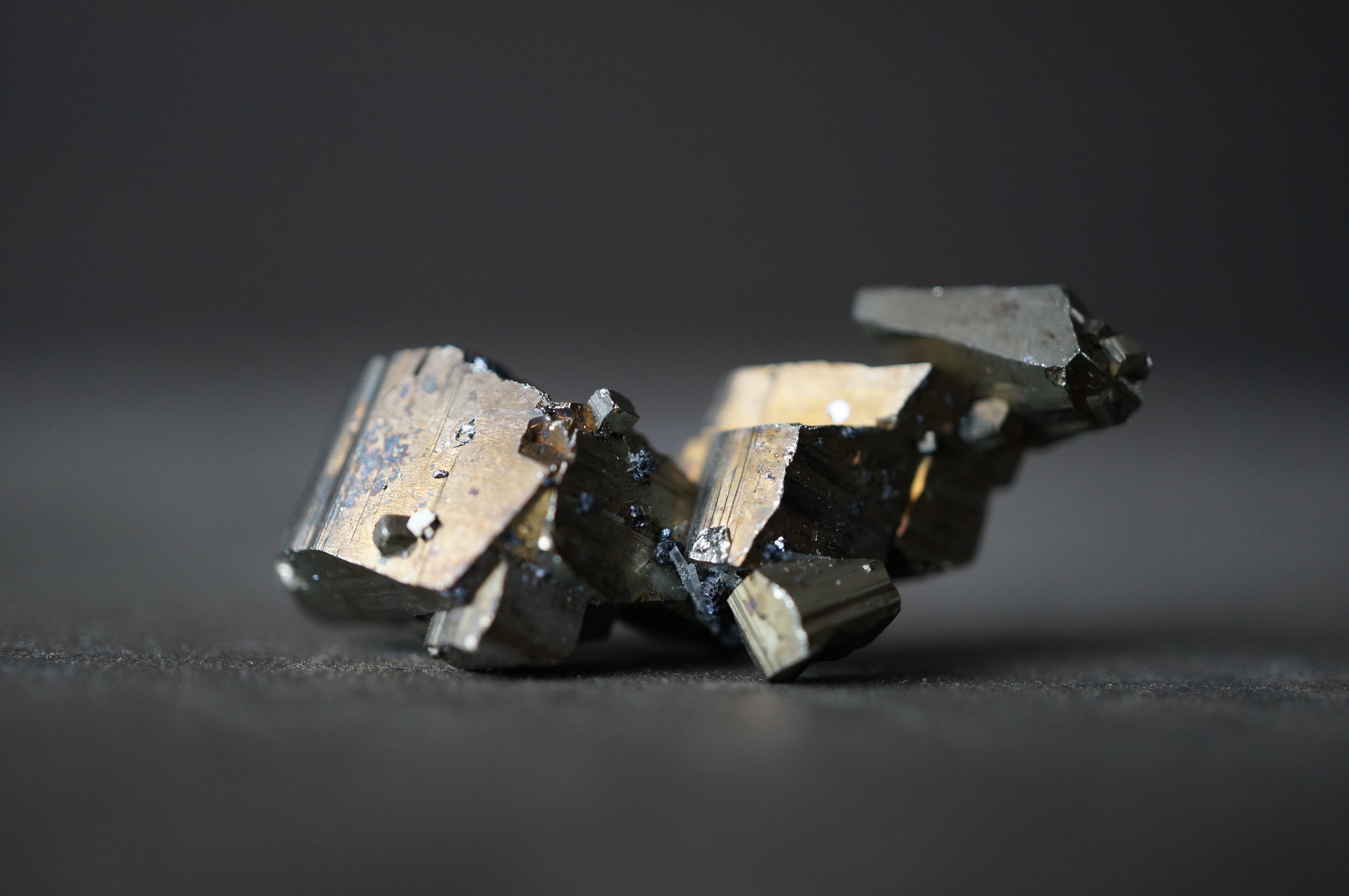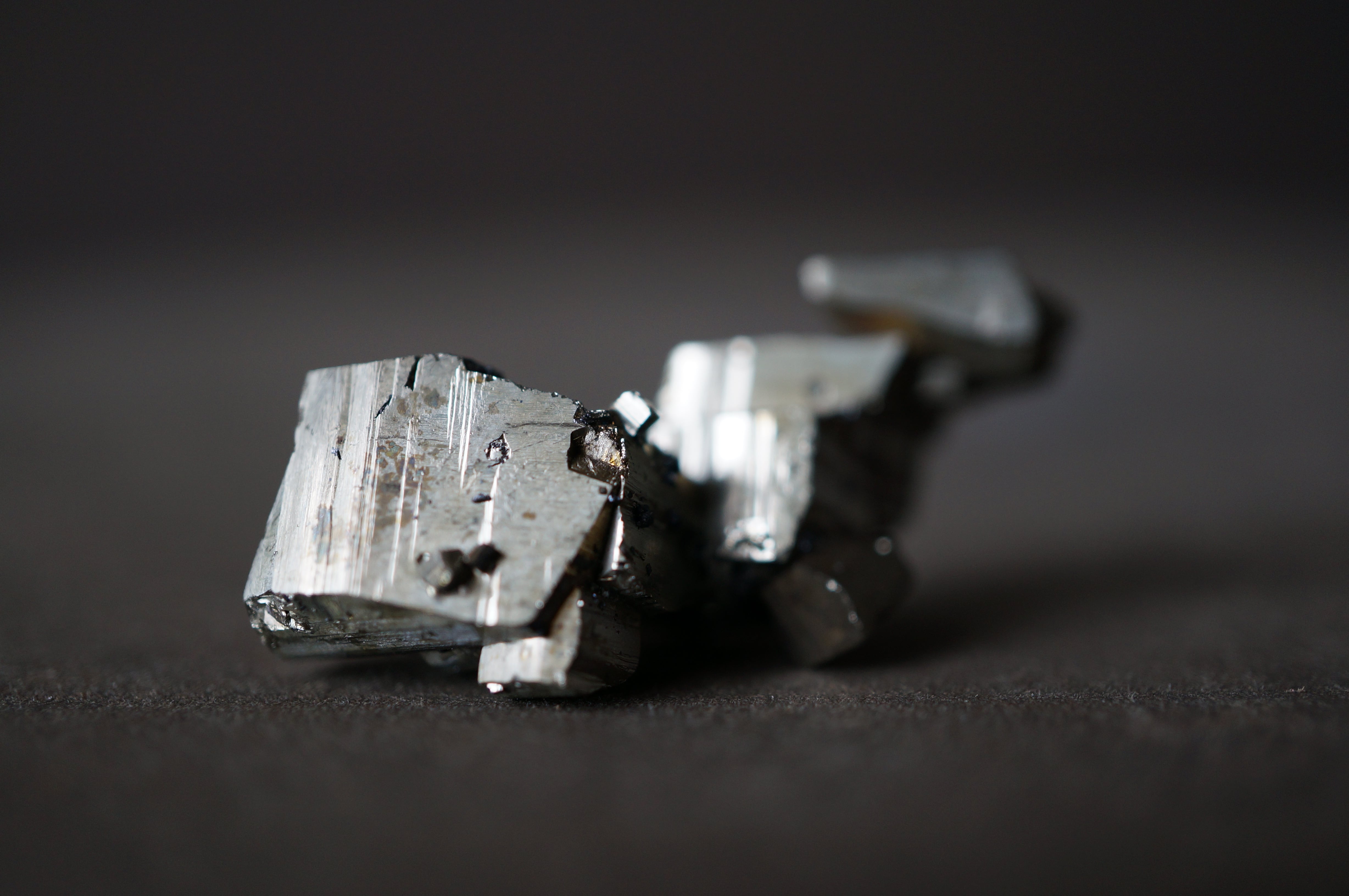 直線的なパイライトが噛み合うように連なり、全体はまるで金属彫刻や建築模型を俯瞰したような構造を見せています。