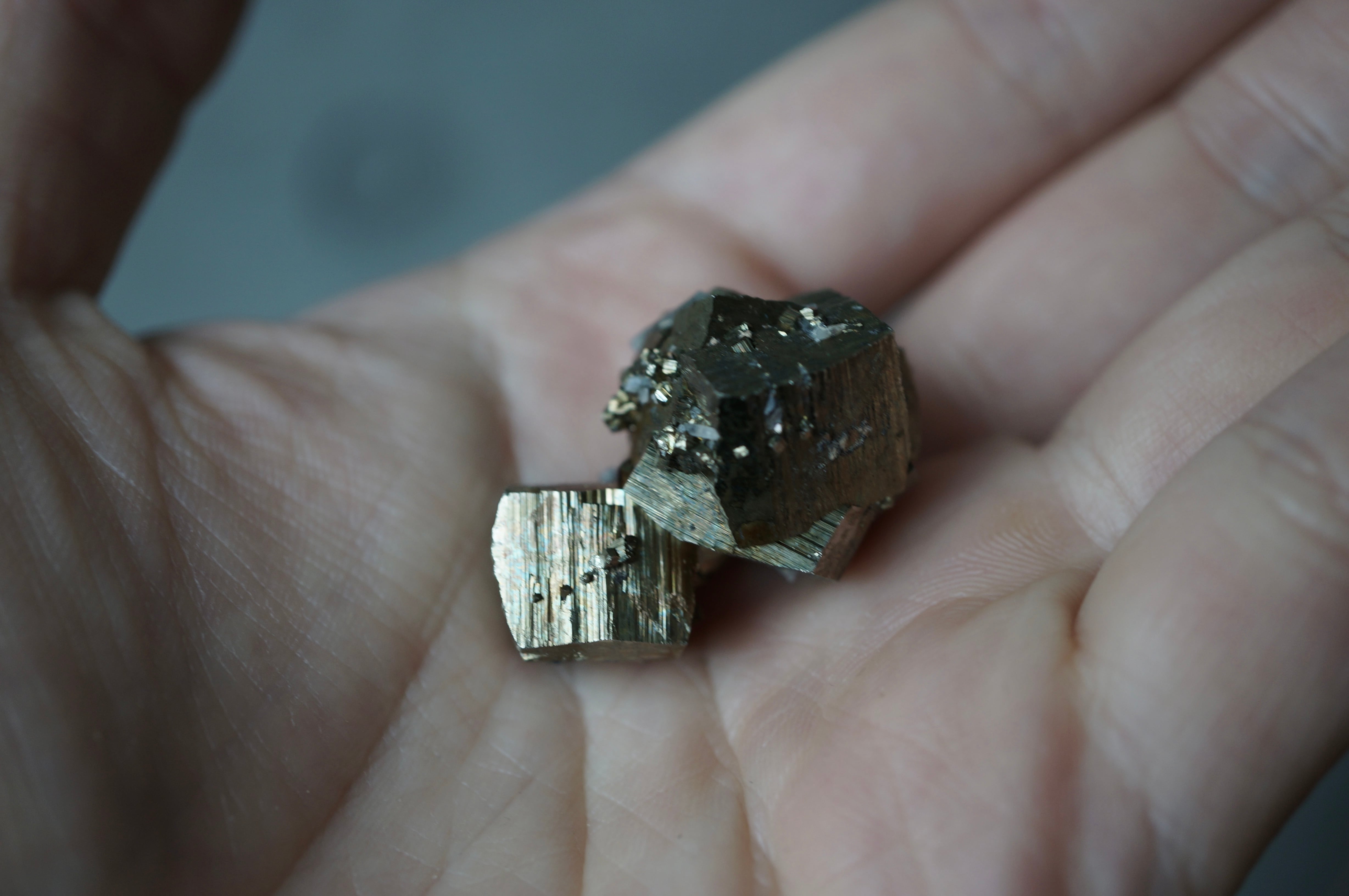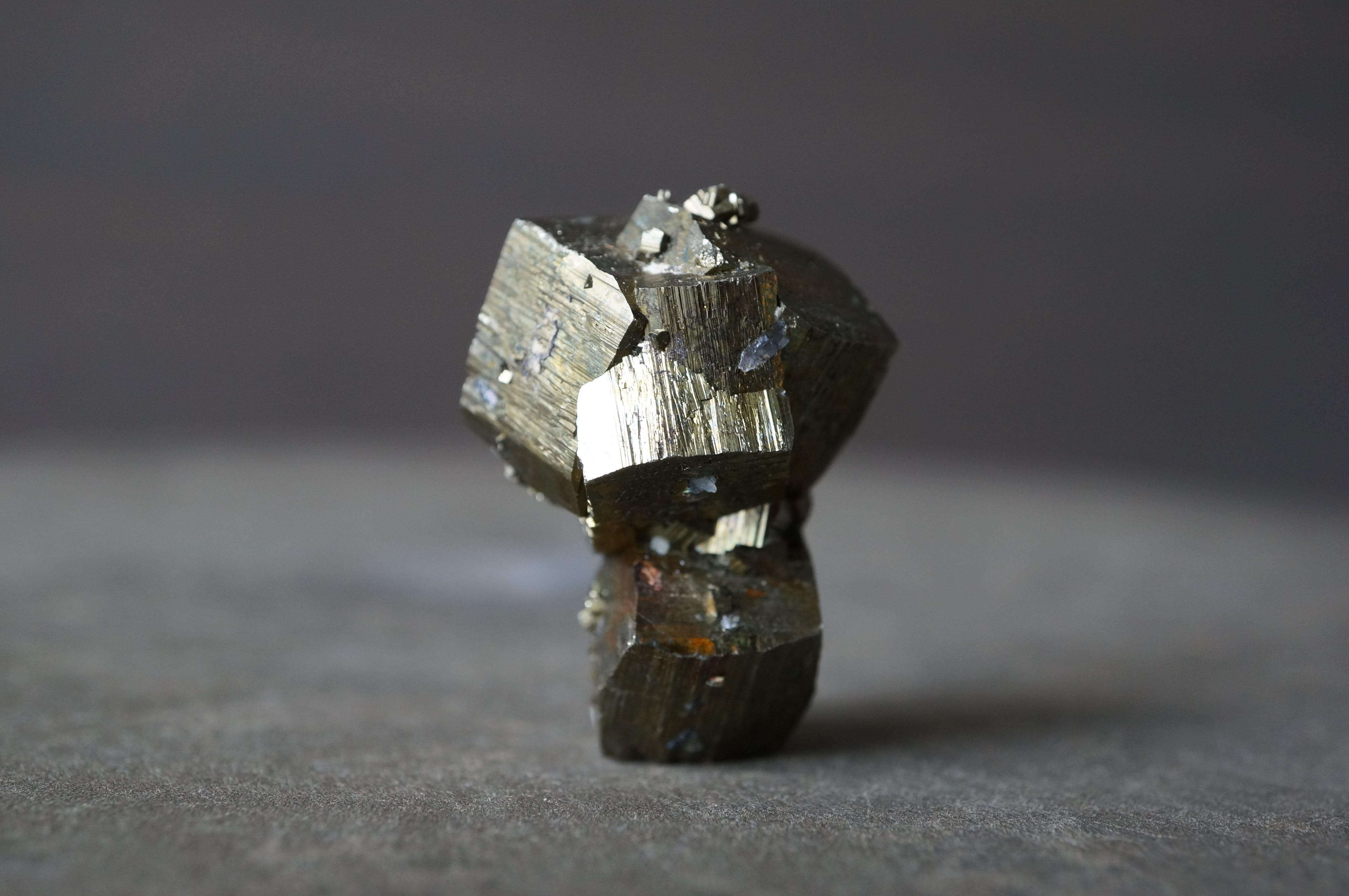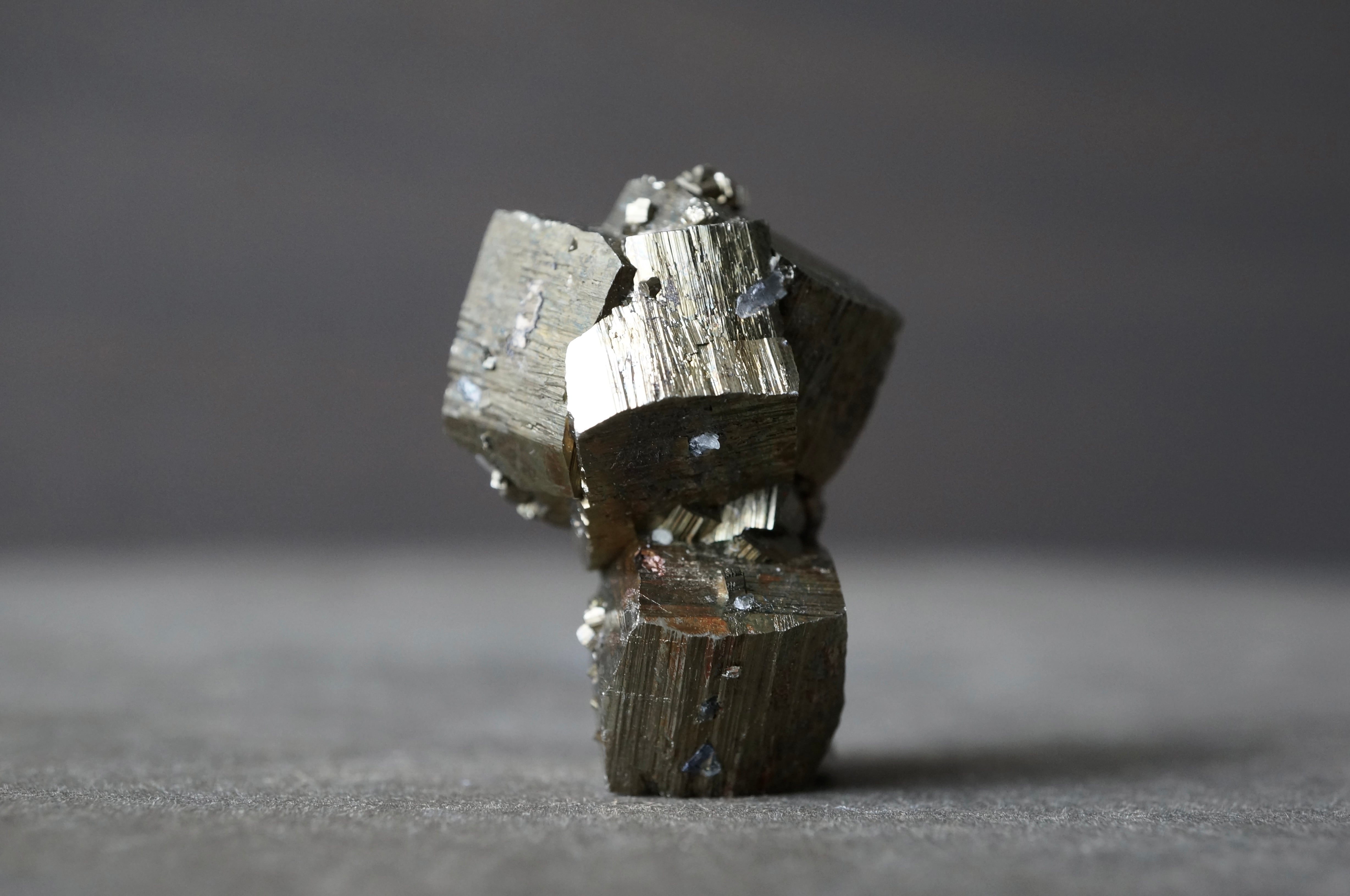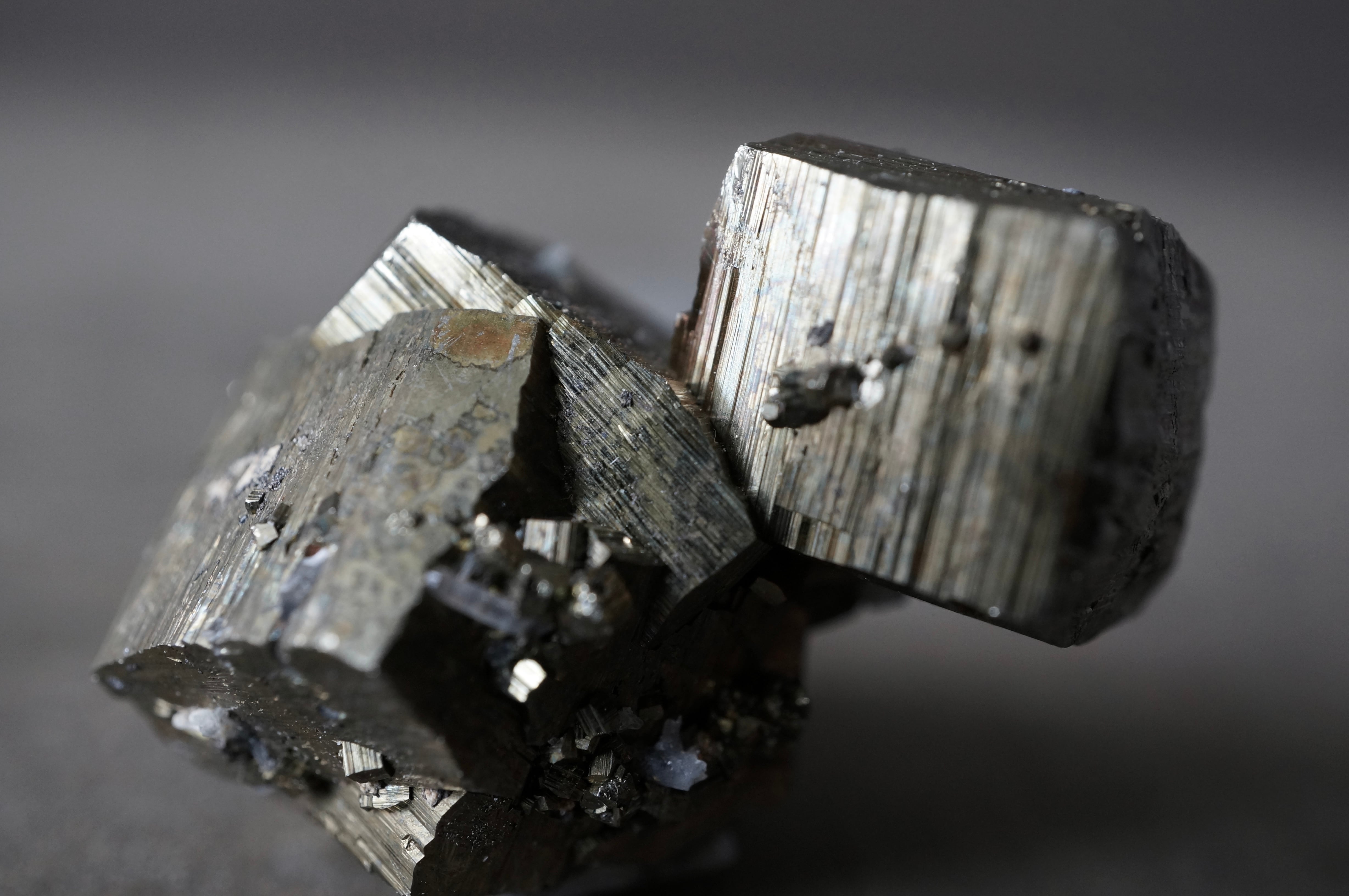 直線的なパイライトが噛み合うように連なり、全体はまるで金属彫刻や建築模型を俯瞰したような構造を見せています。