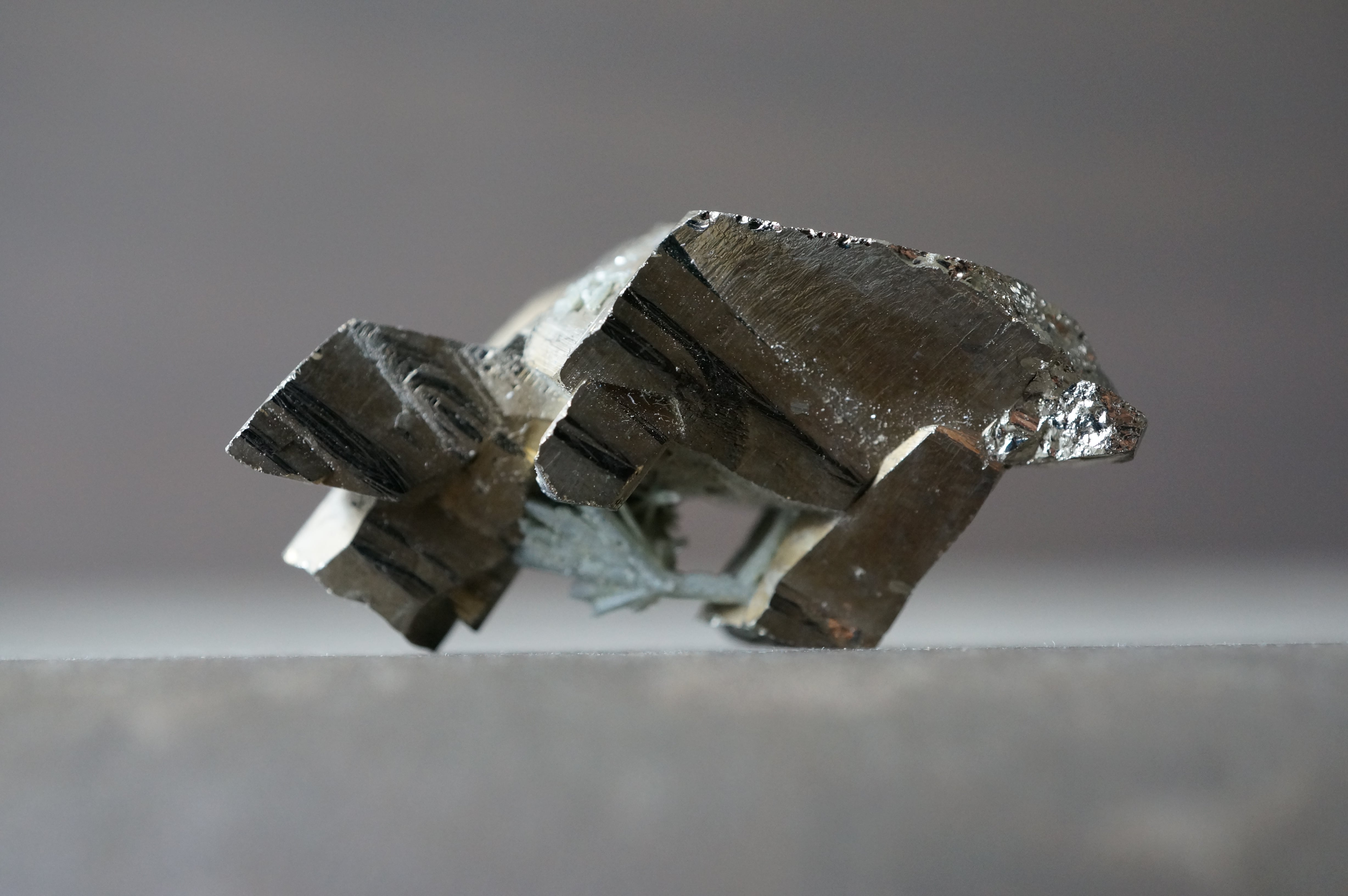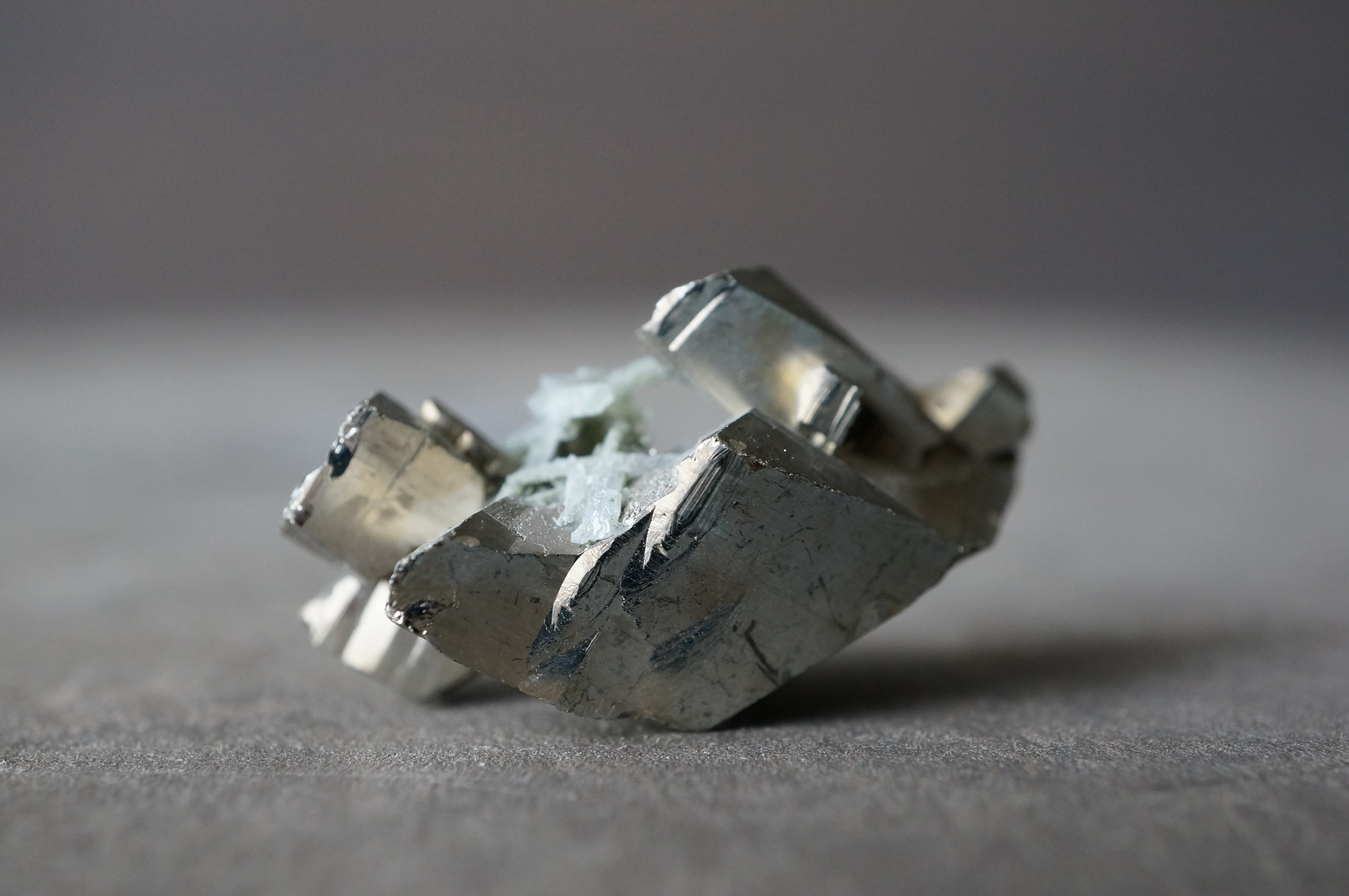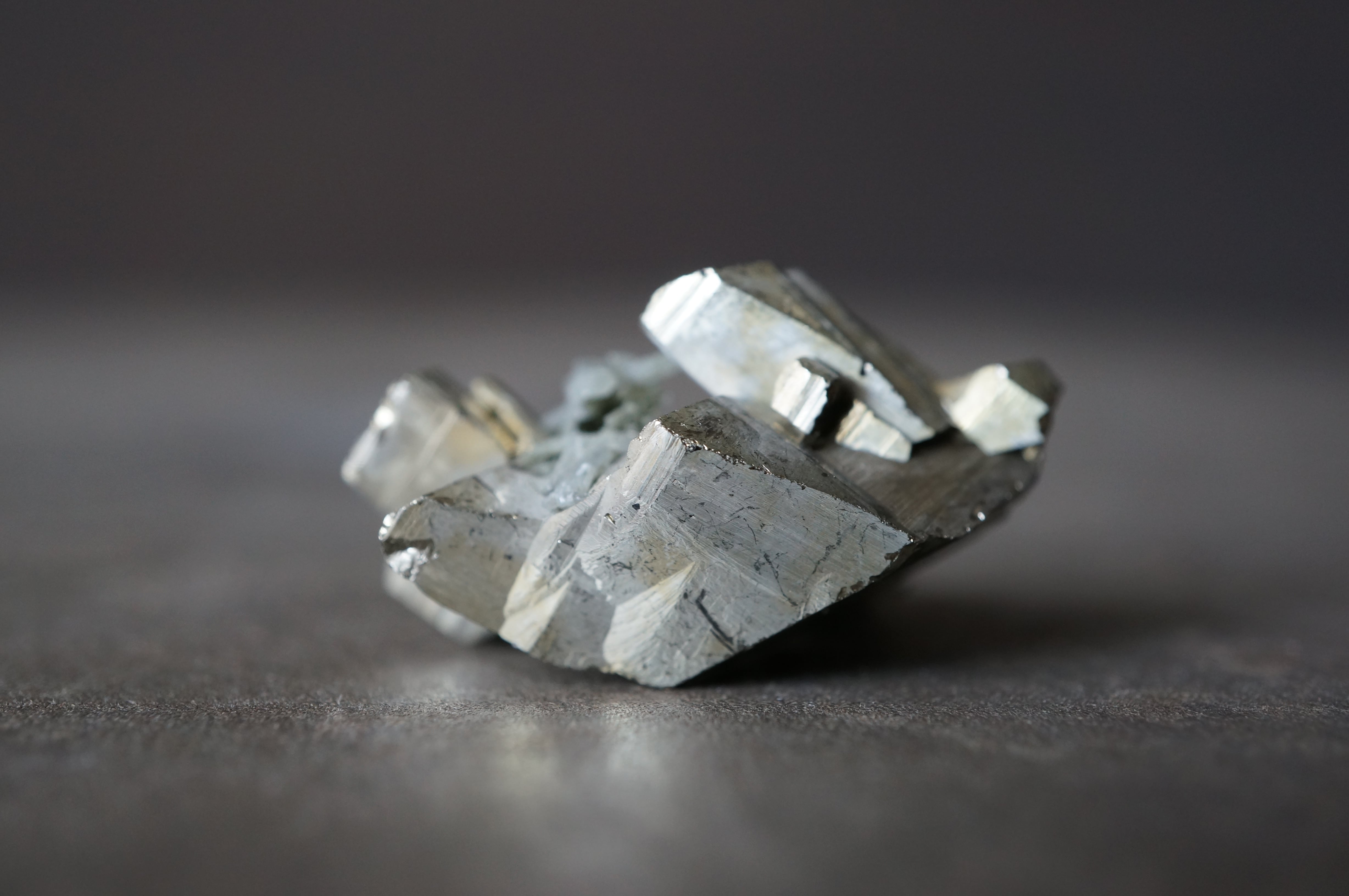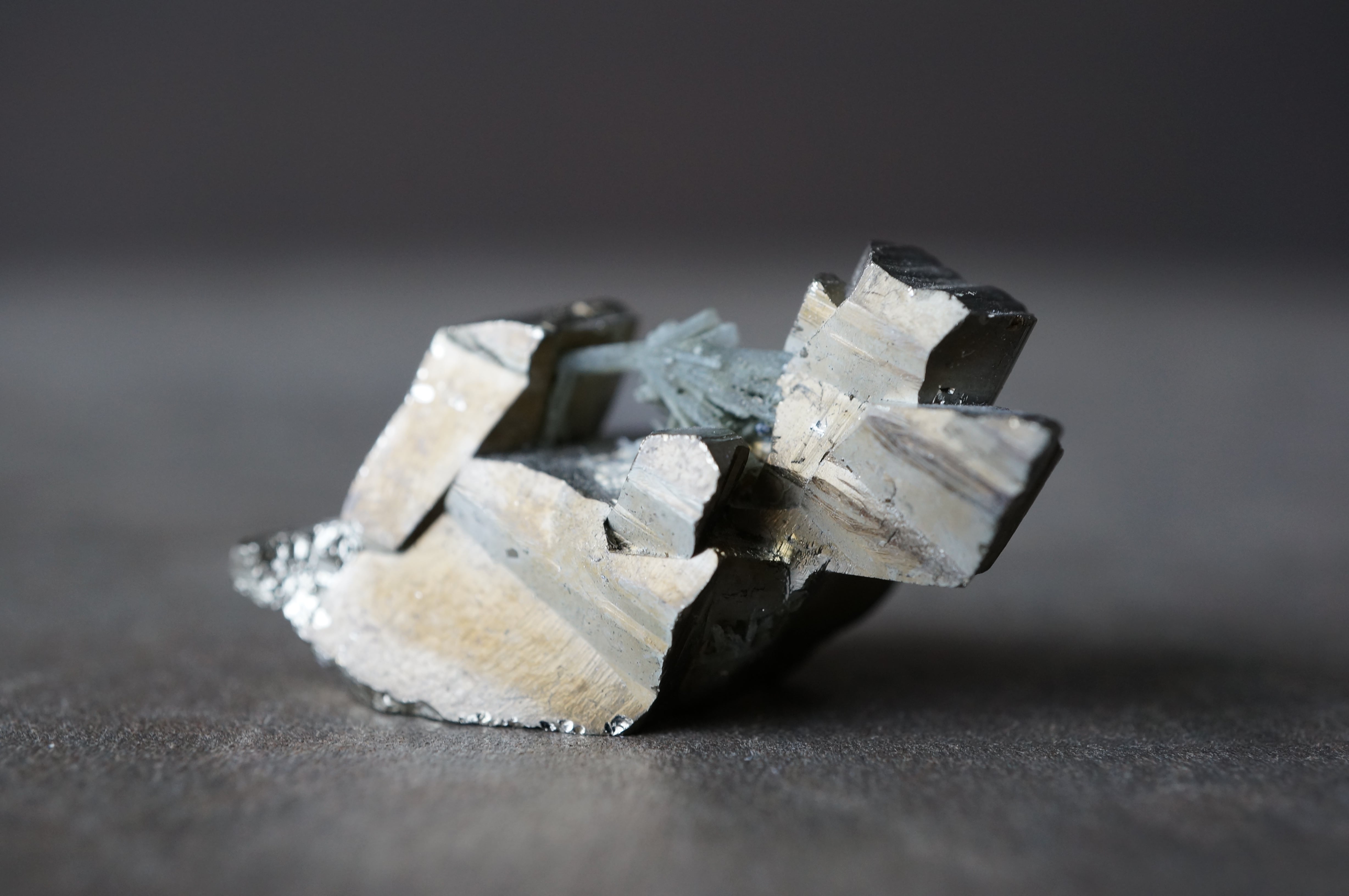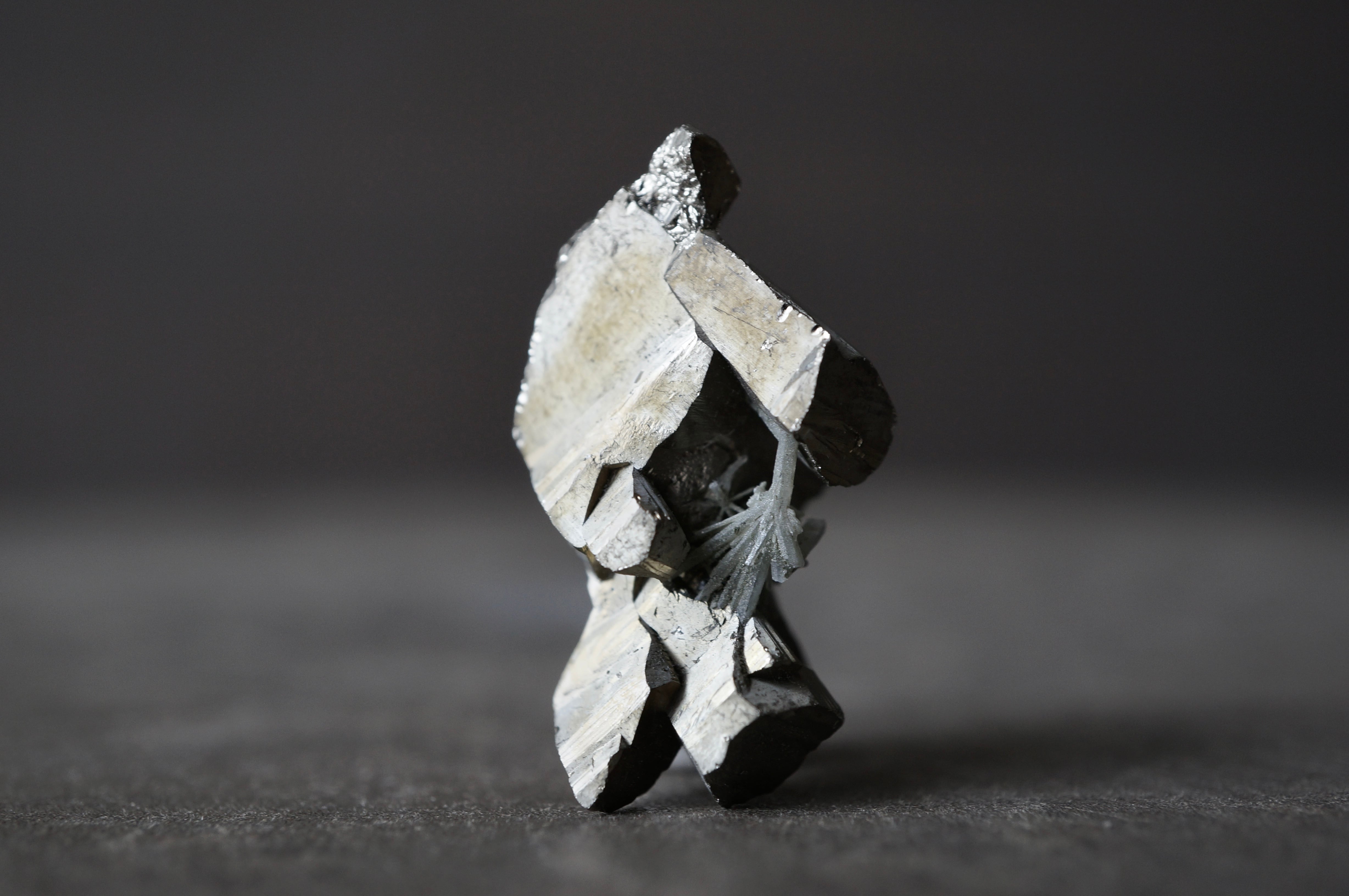 直線的なパイライトが噛み合うように連なり、全体はまるで金属彫刻や建築模型を俯瞰したような構造を見せています。