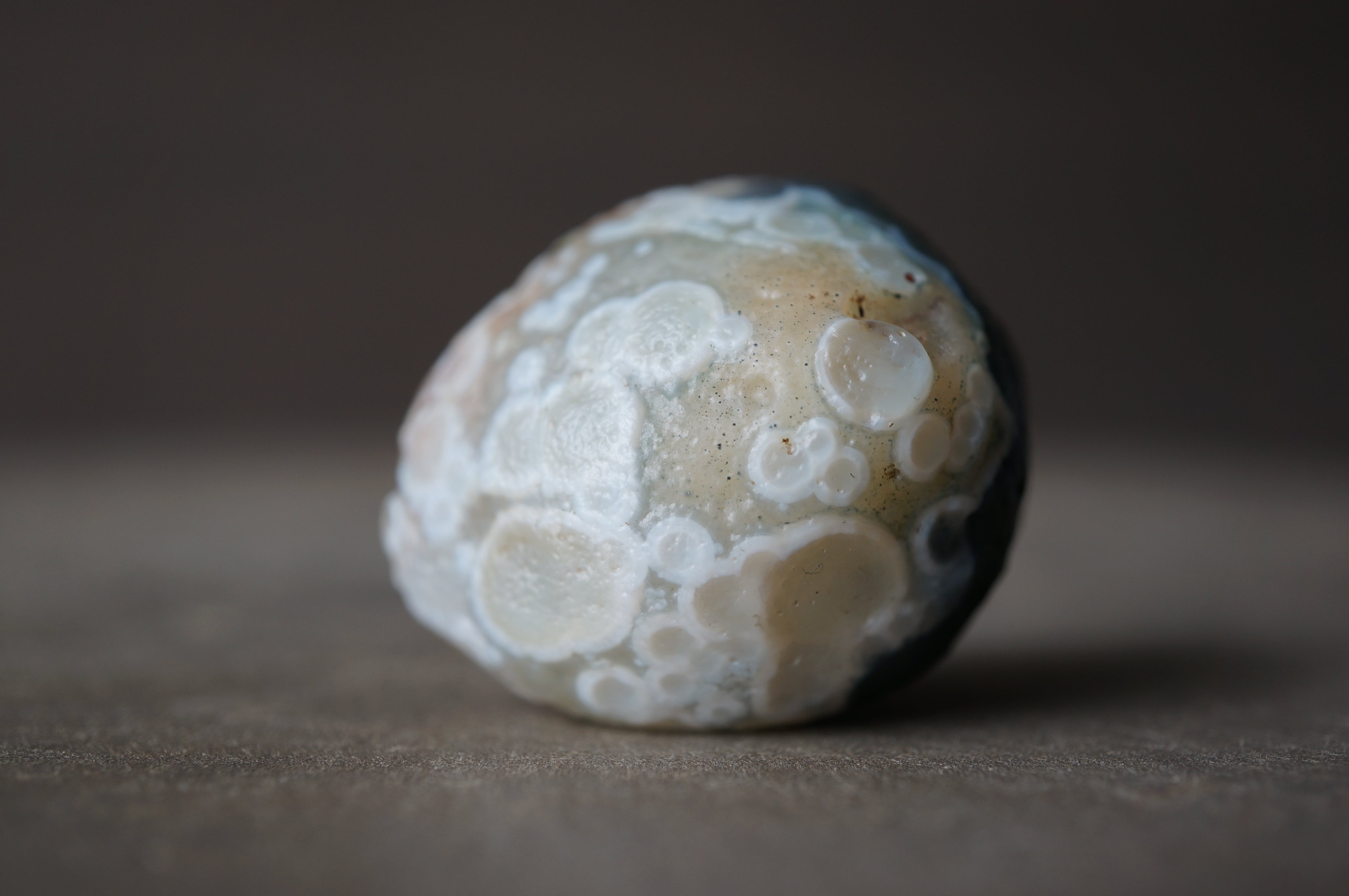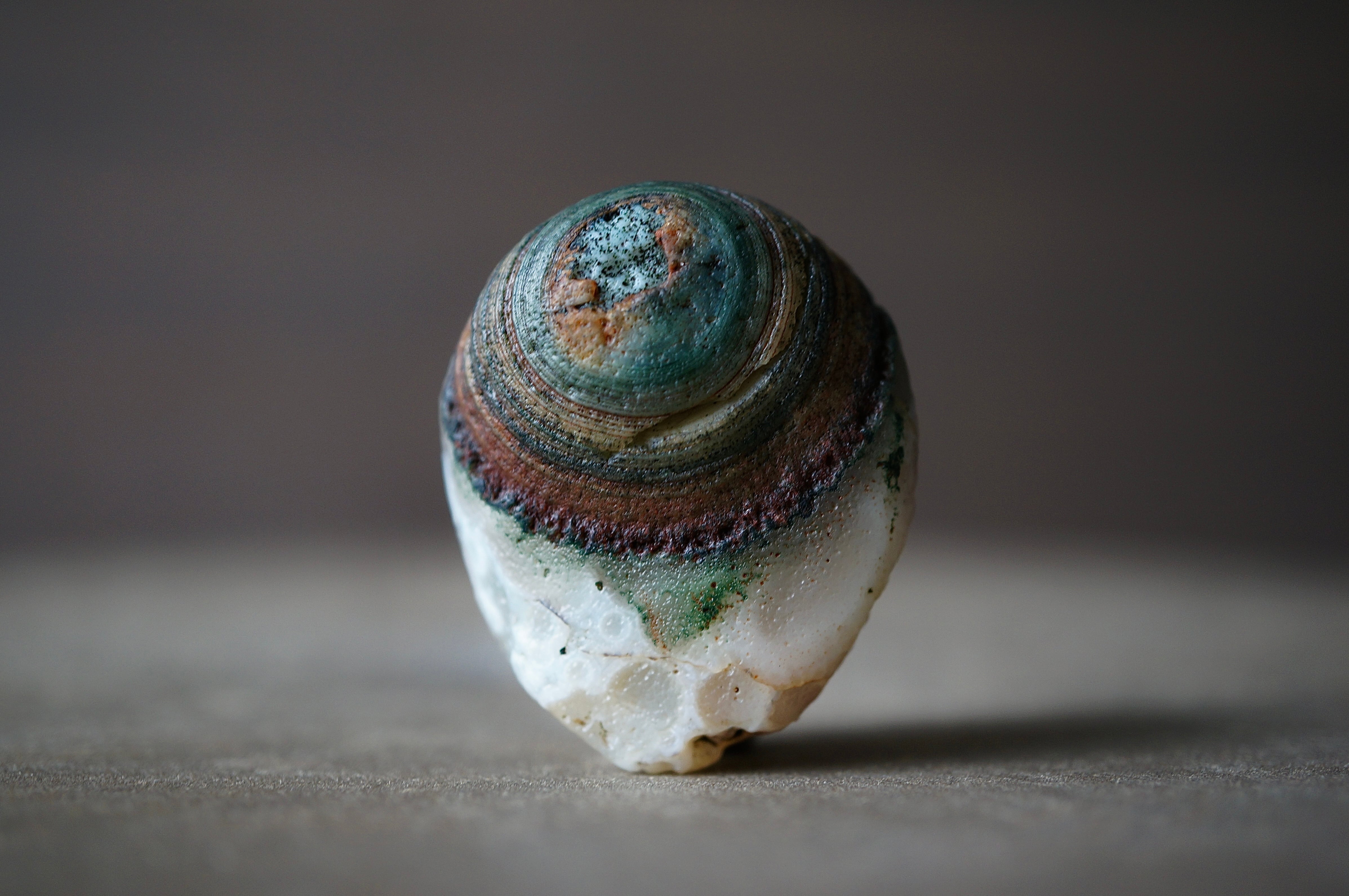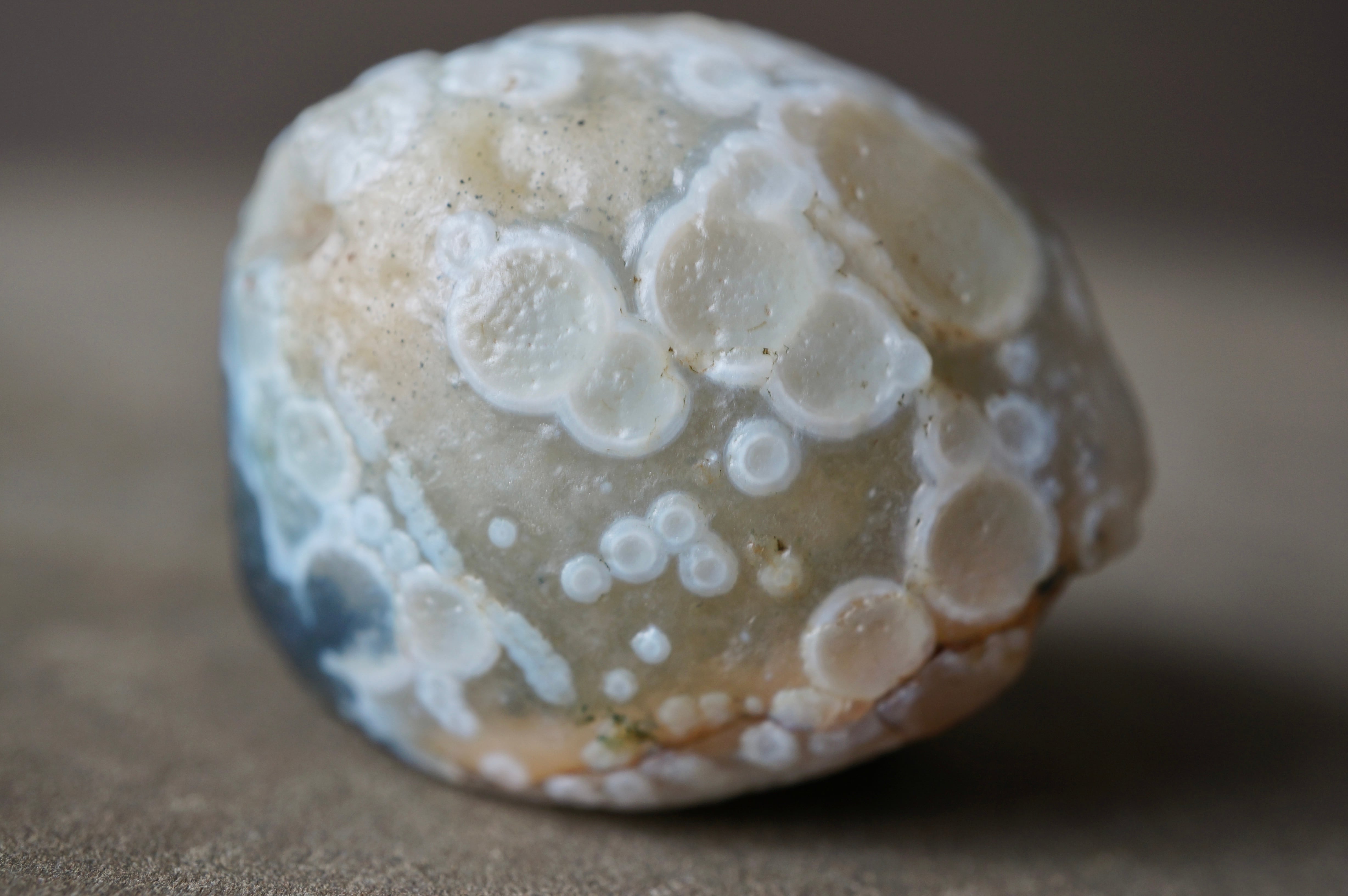 大きくカラフルな同心円状模様、泡沫のような丸模様が美しい一石です。