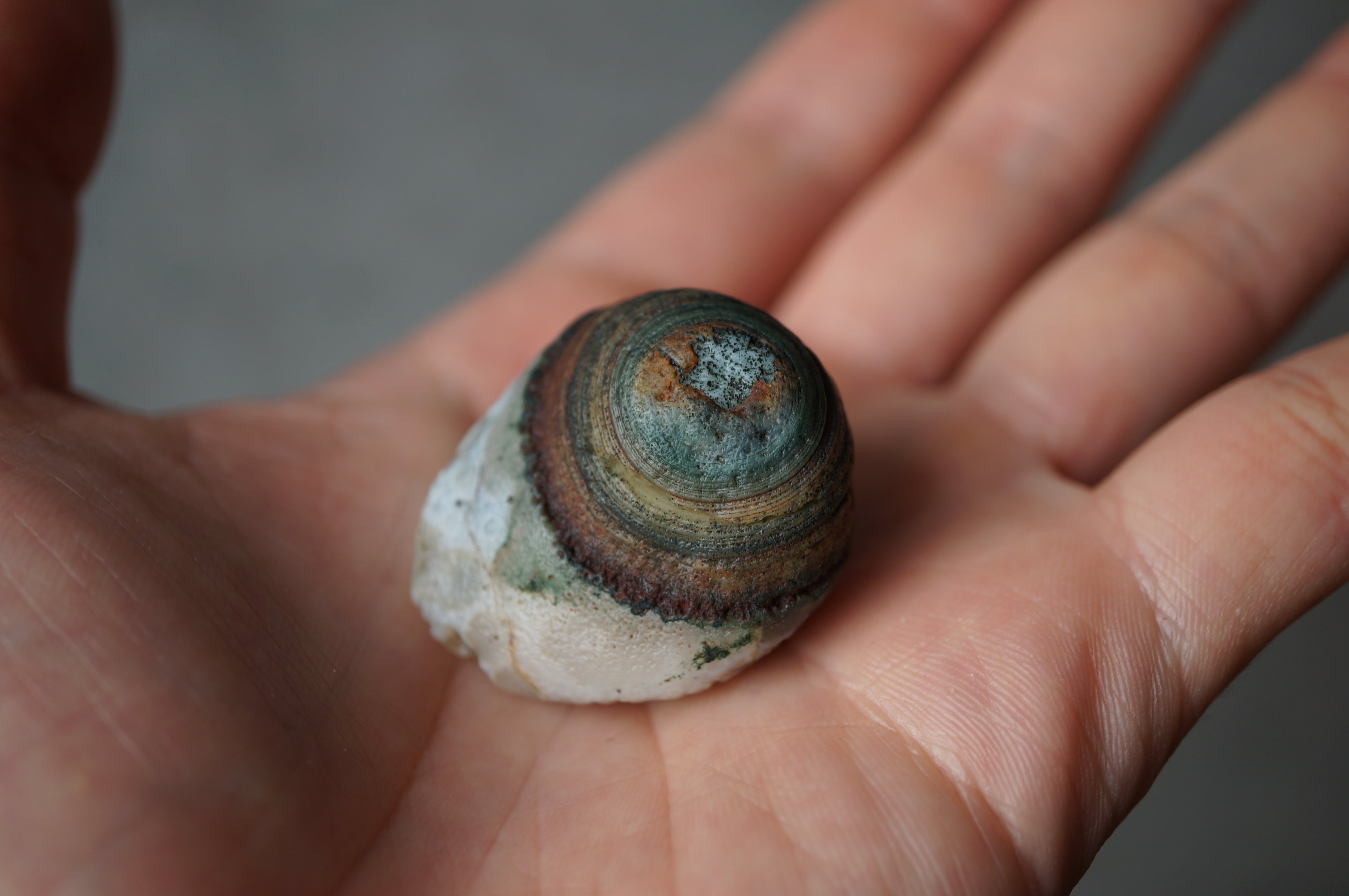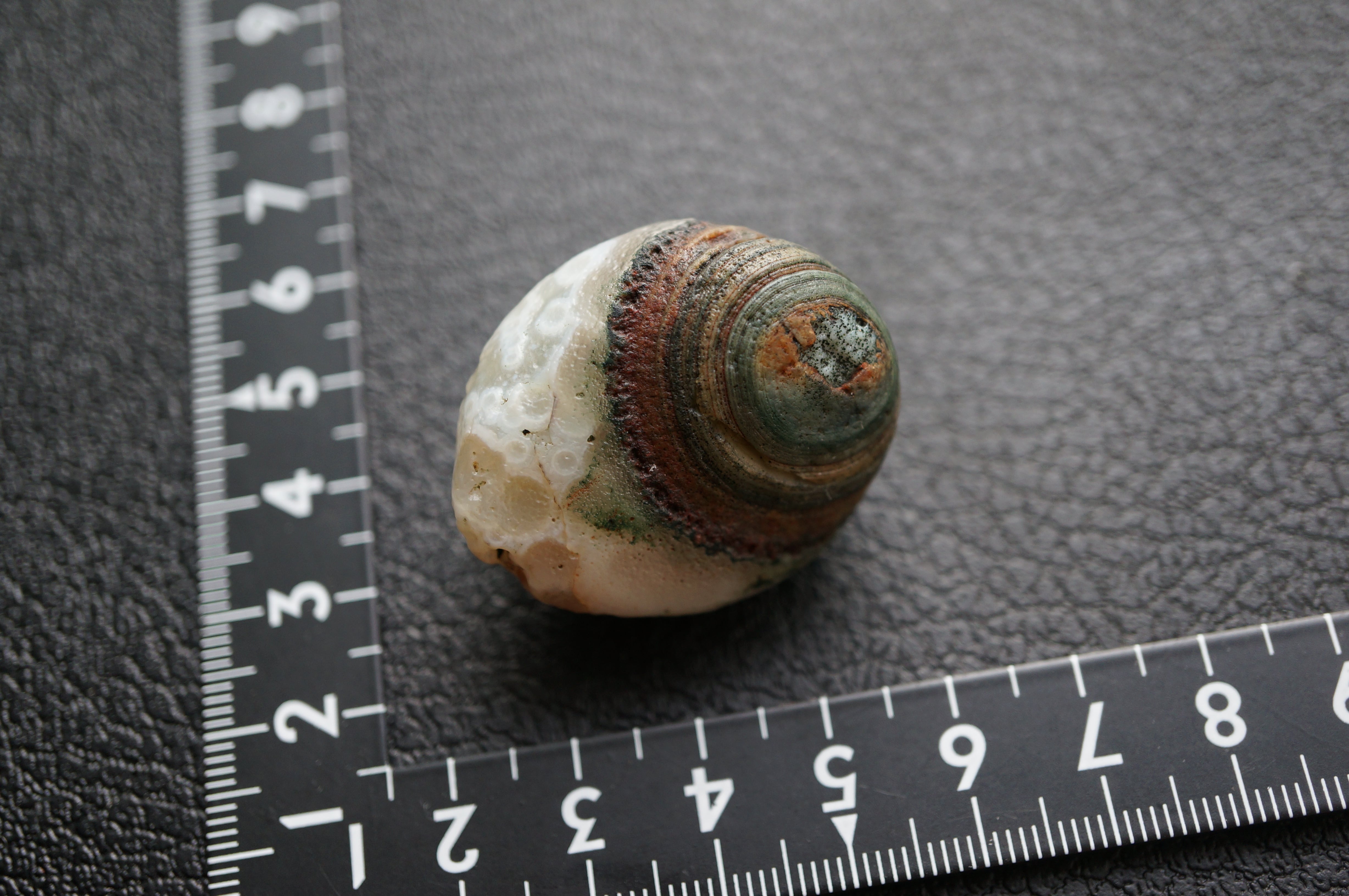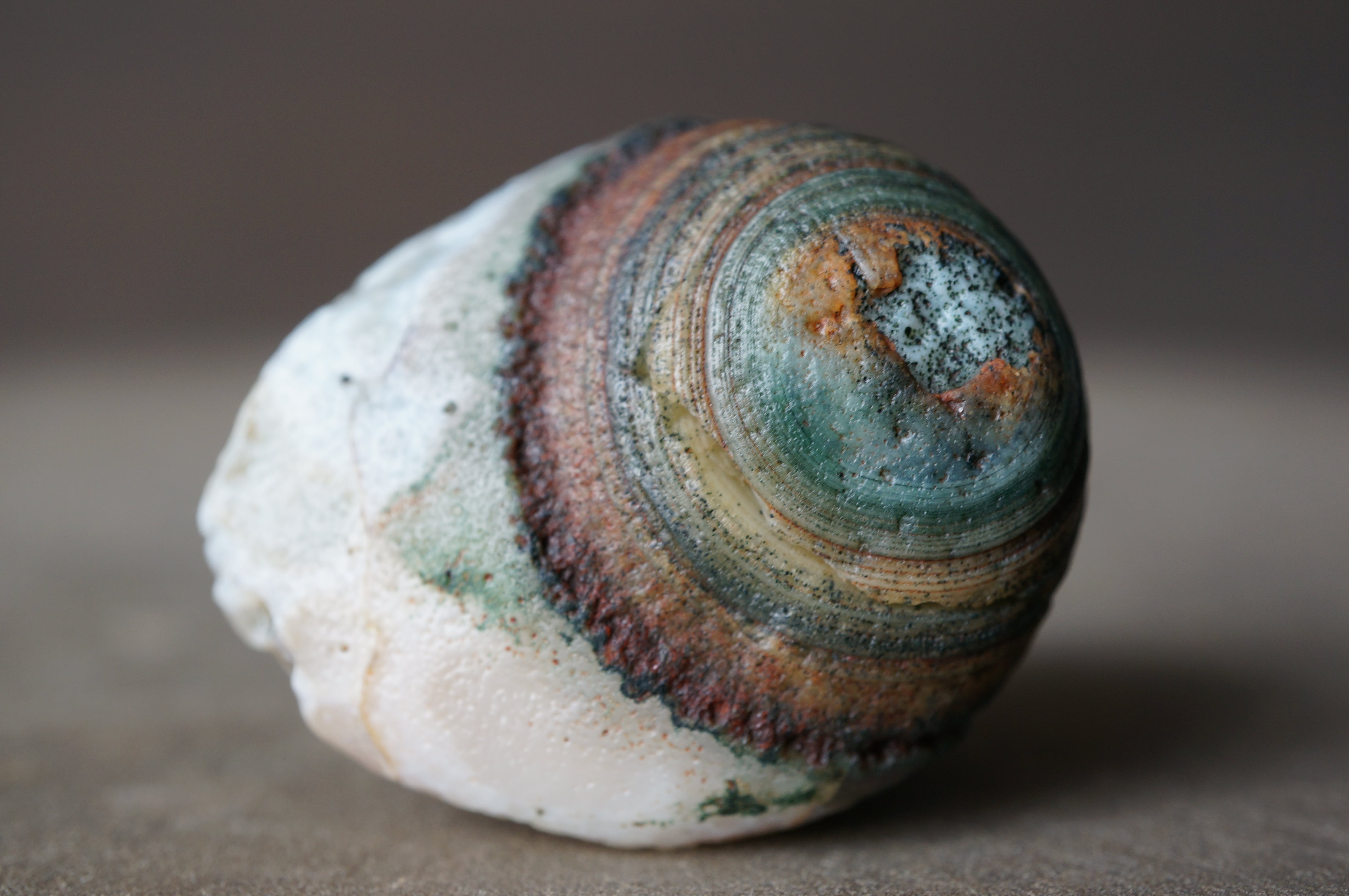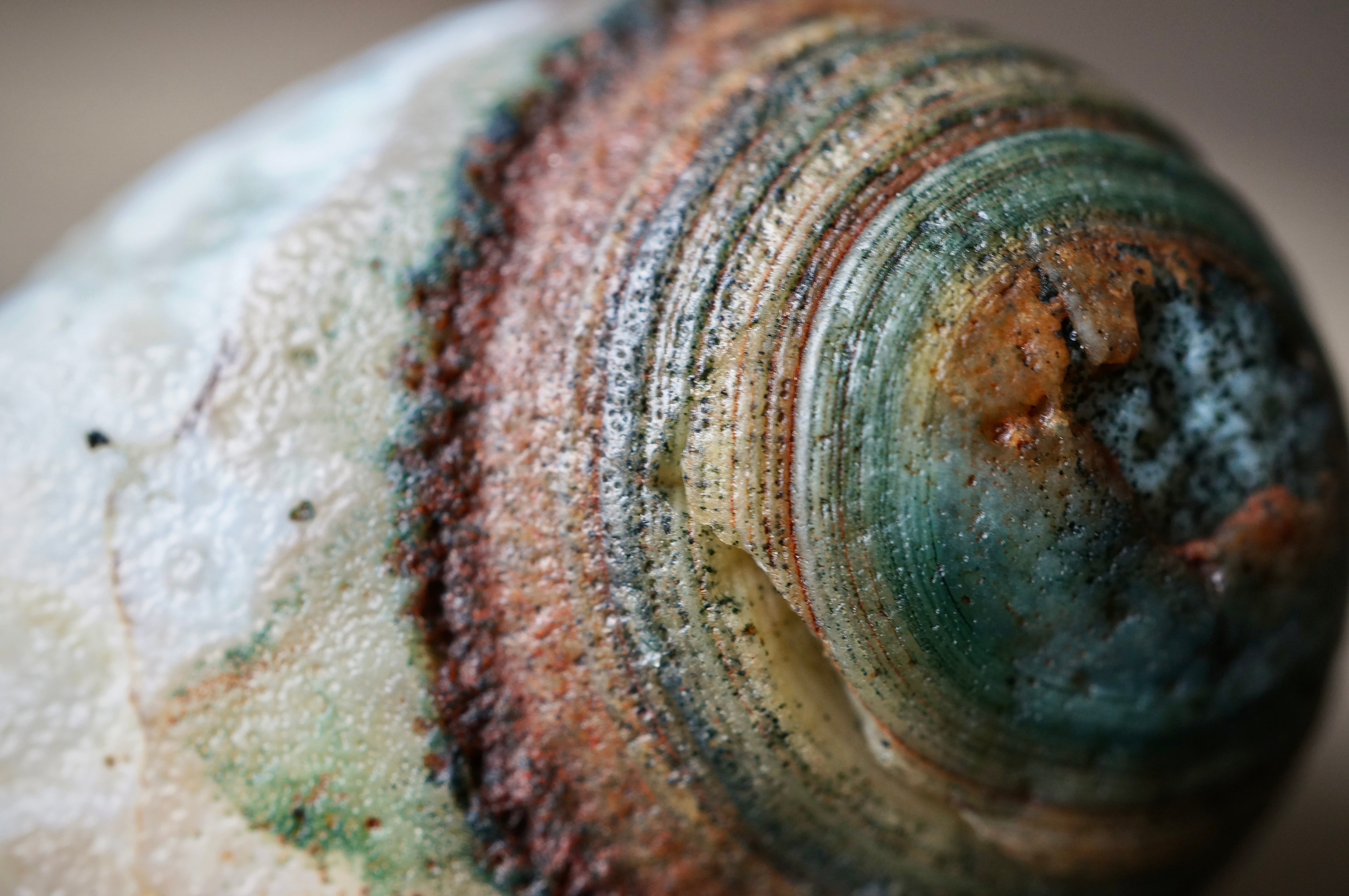 大きくカラフルな同心円状模様、泡沫のような丸模様が美しい一石です。