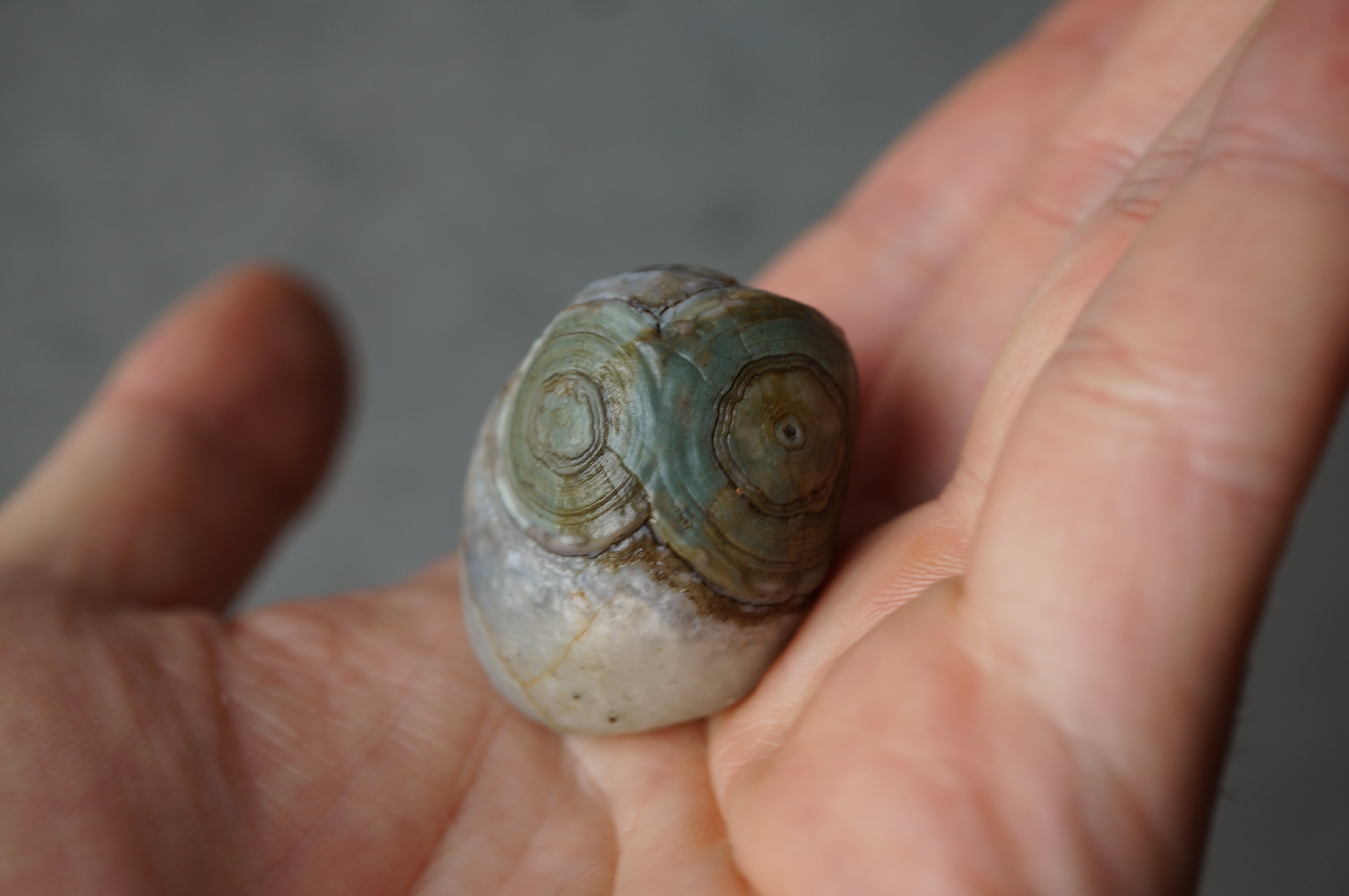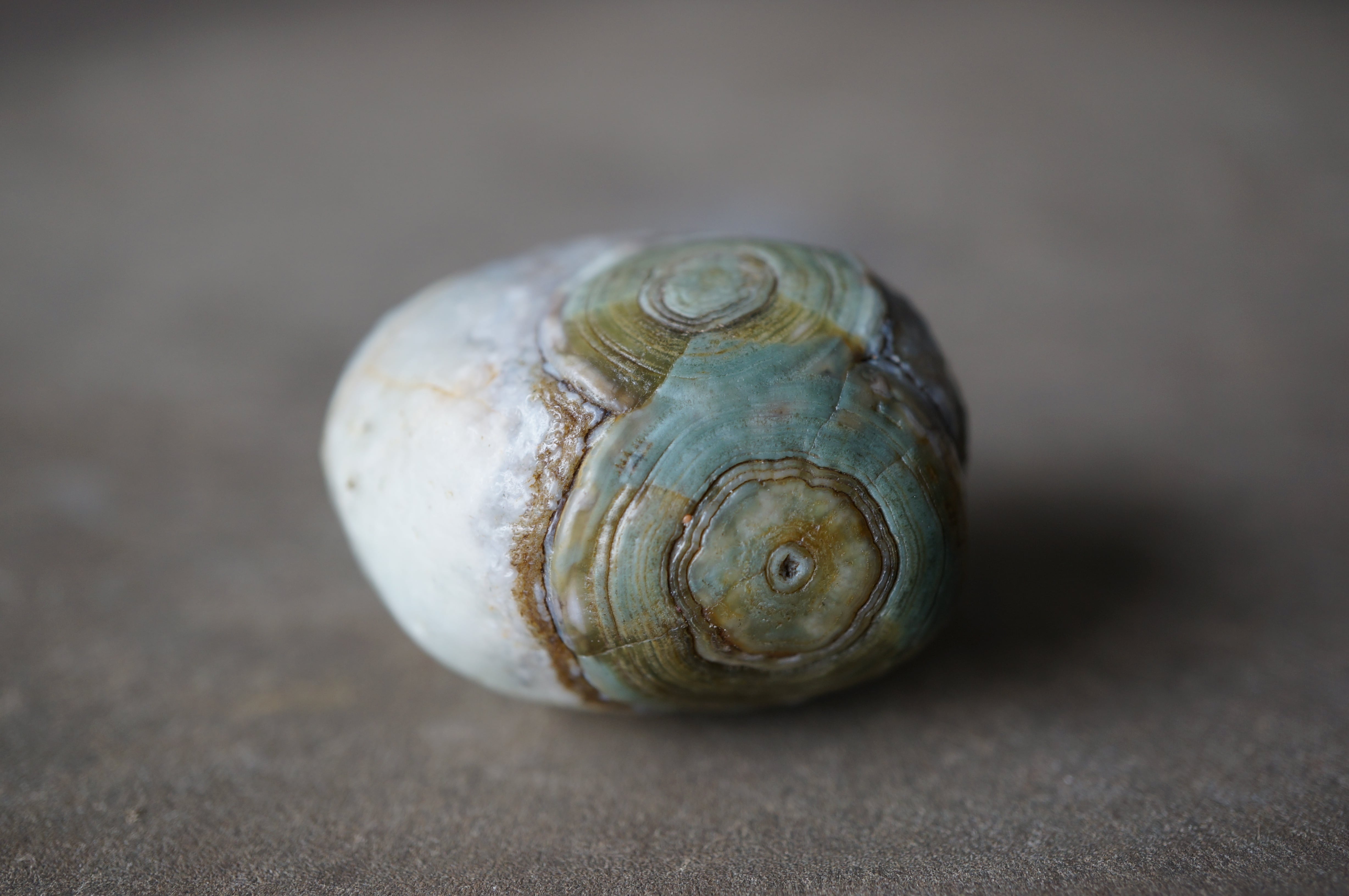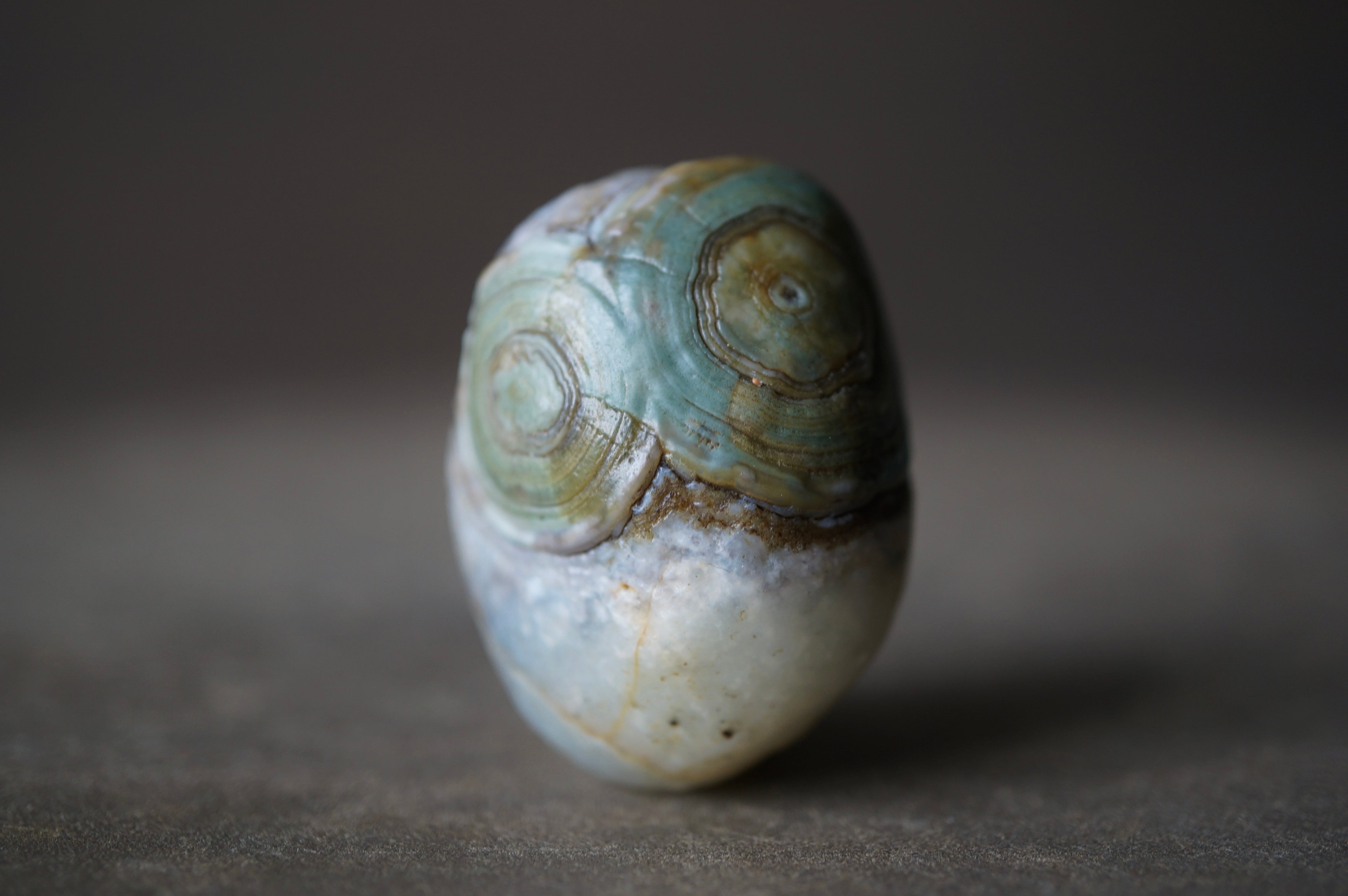 ゴビアゲートとしては希少なグリーン〜ブルーの同心円状模様が美しい一石です。