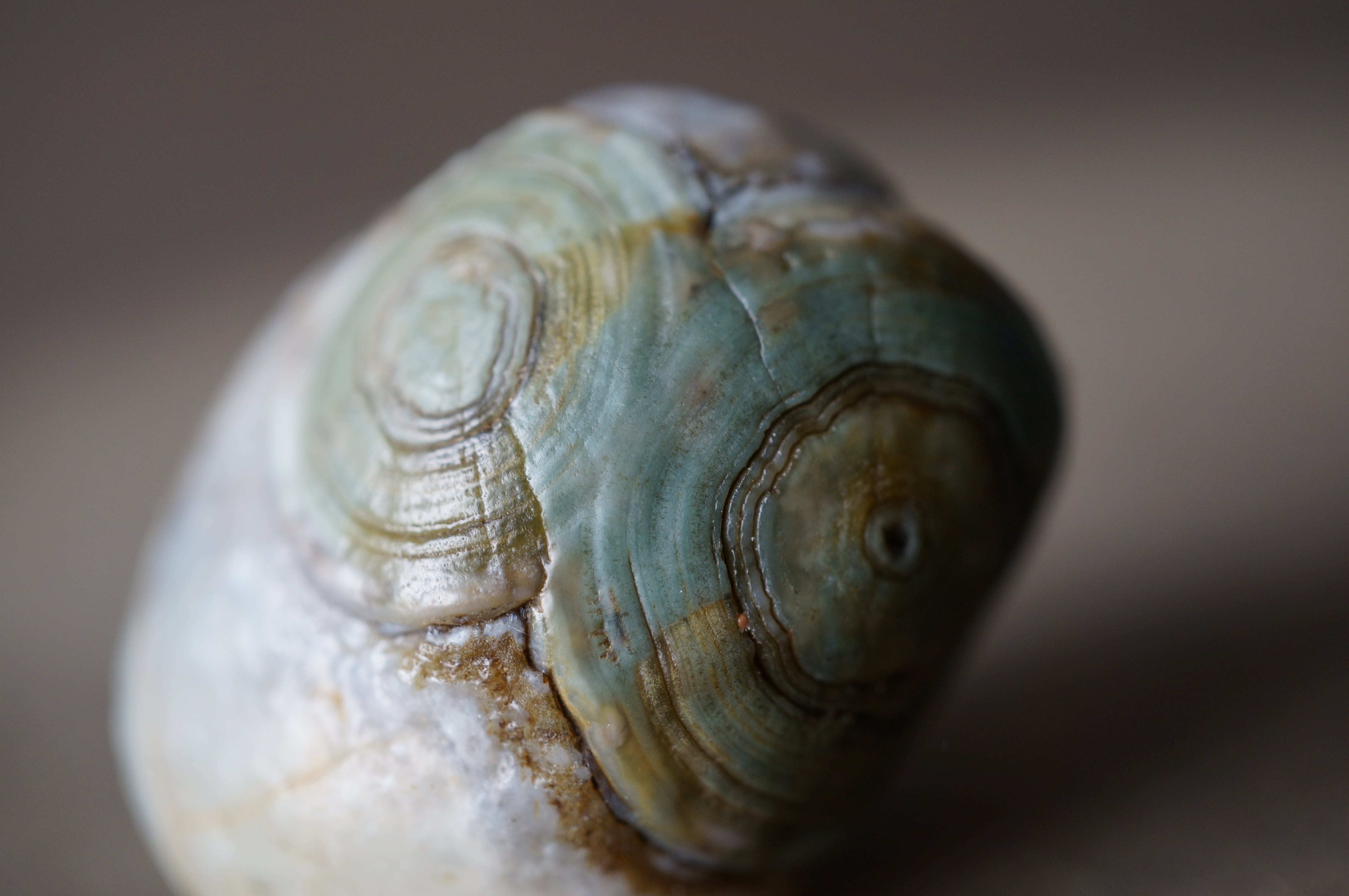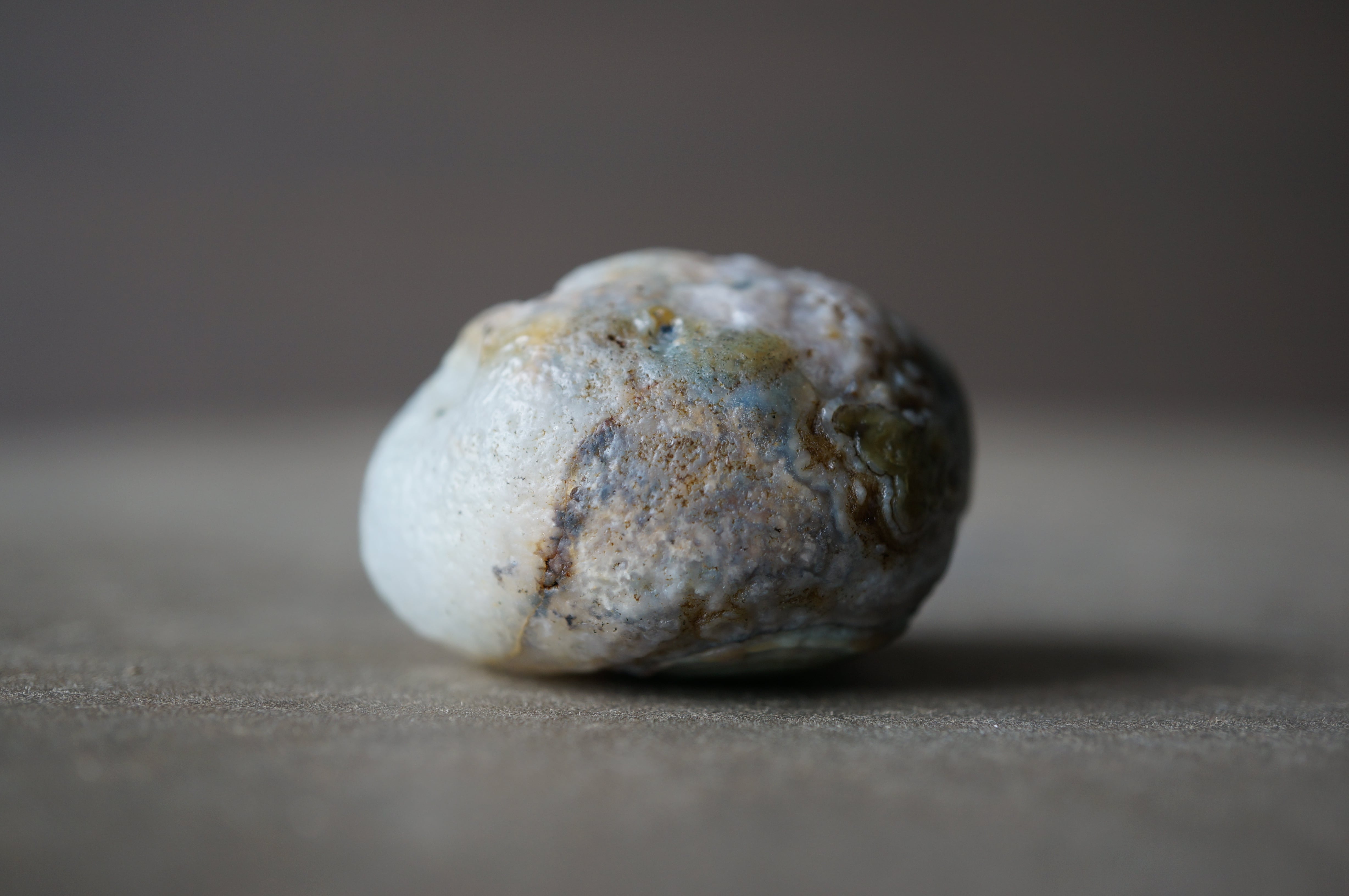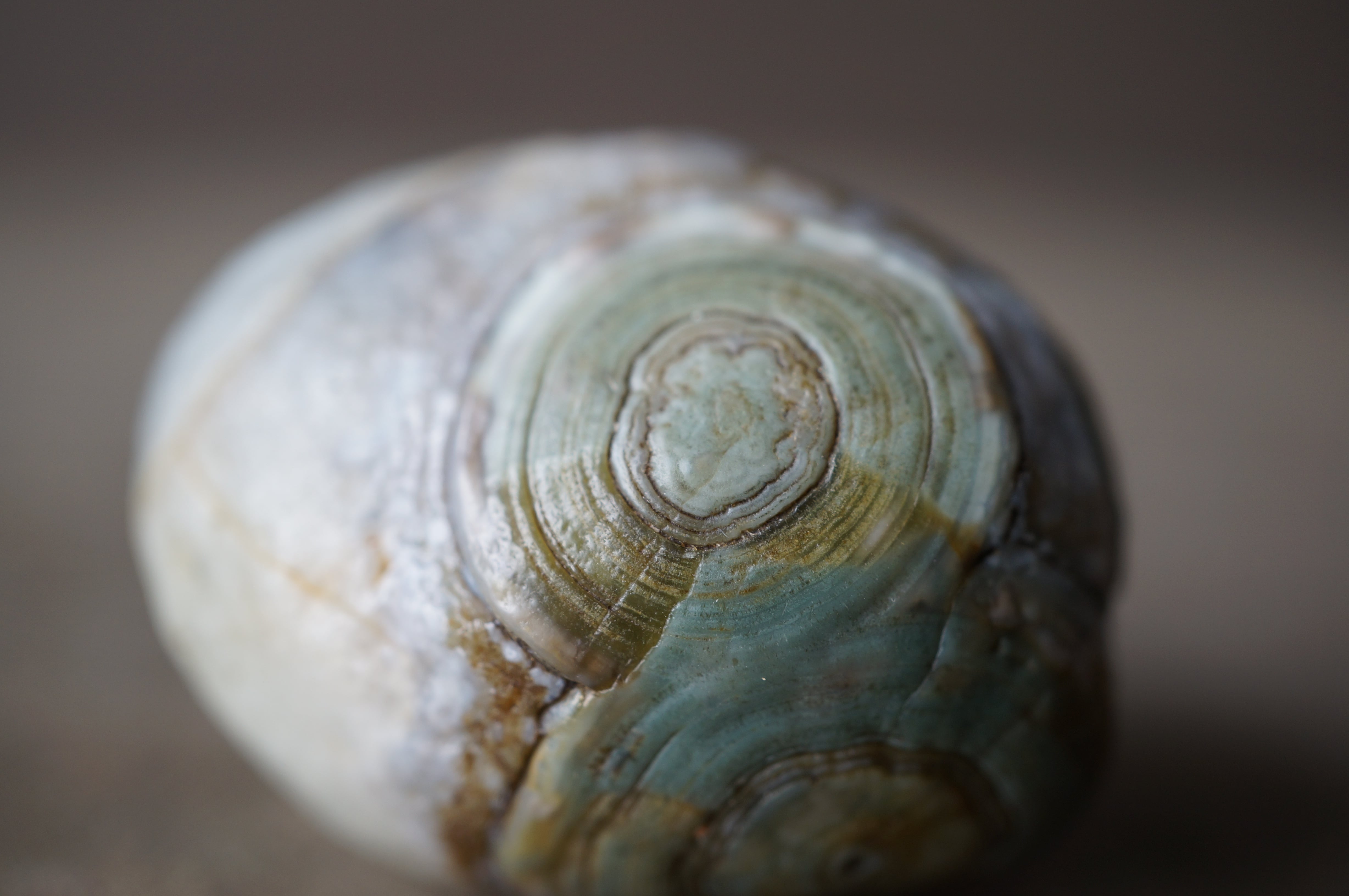 ゴビアゲートとしては希少なグリーン〜ブルーの同心円状模様が美しい一石です。