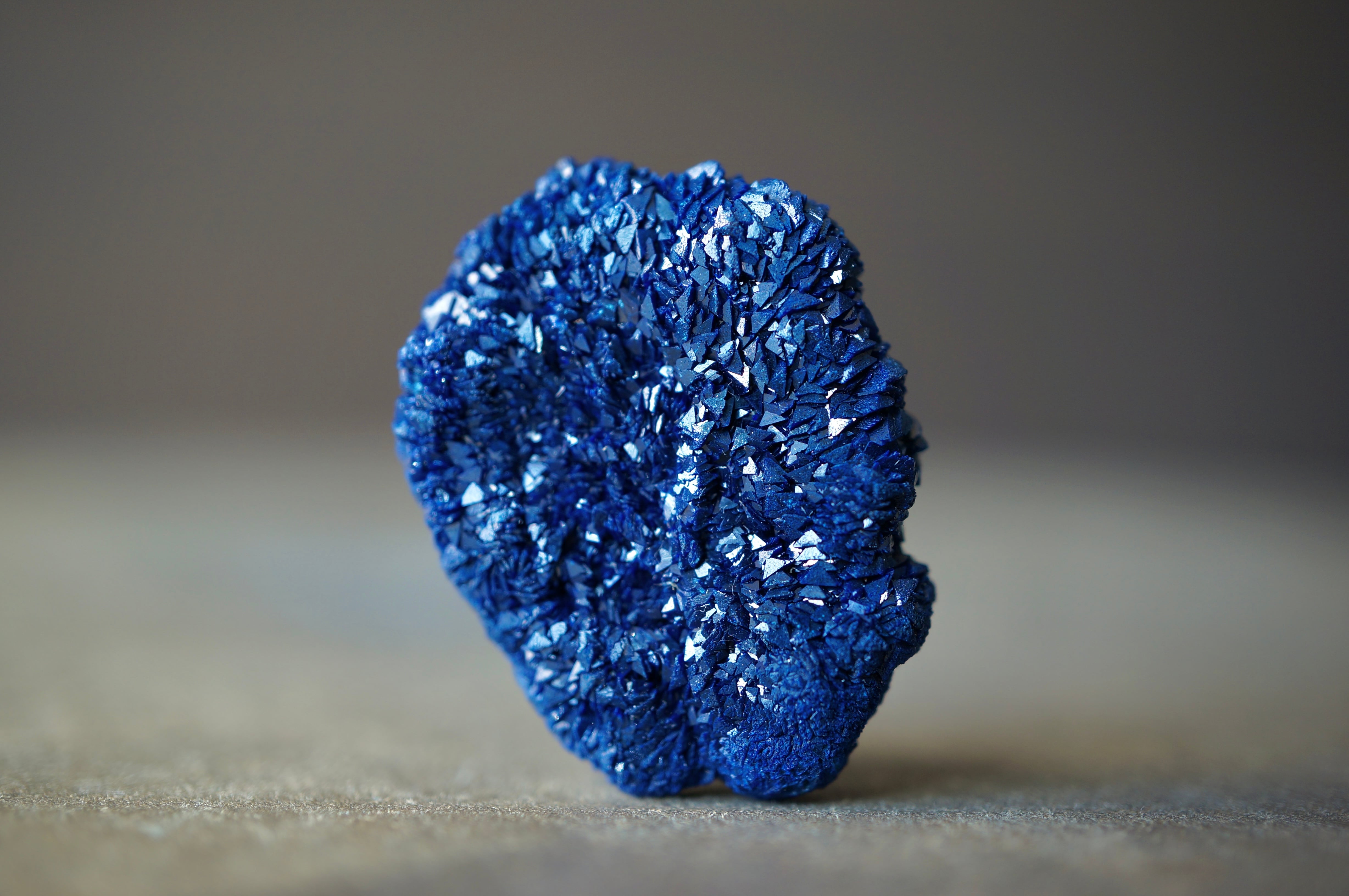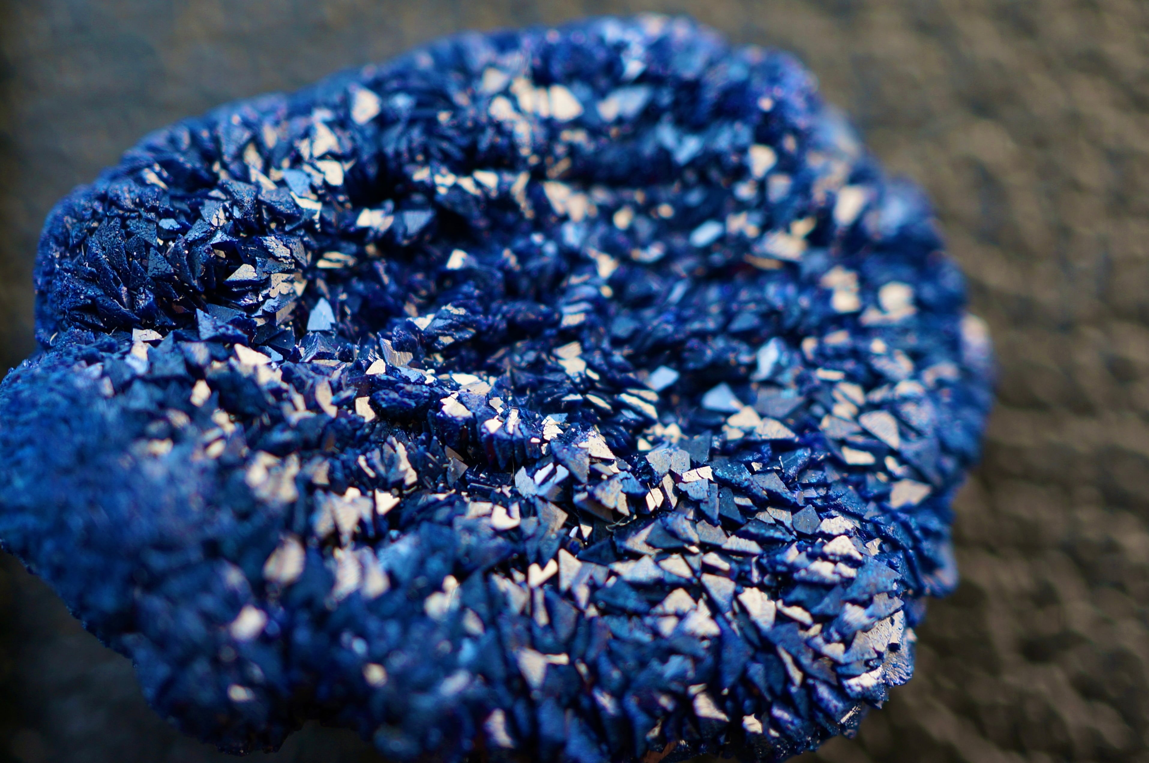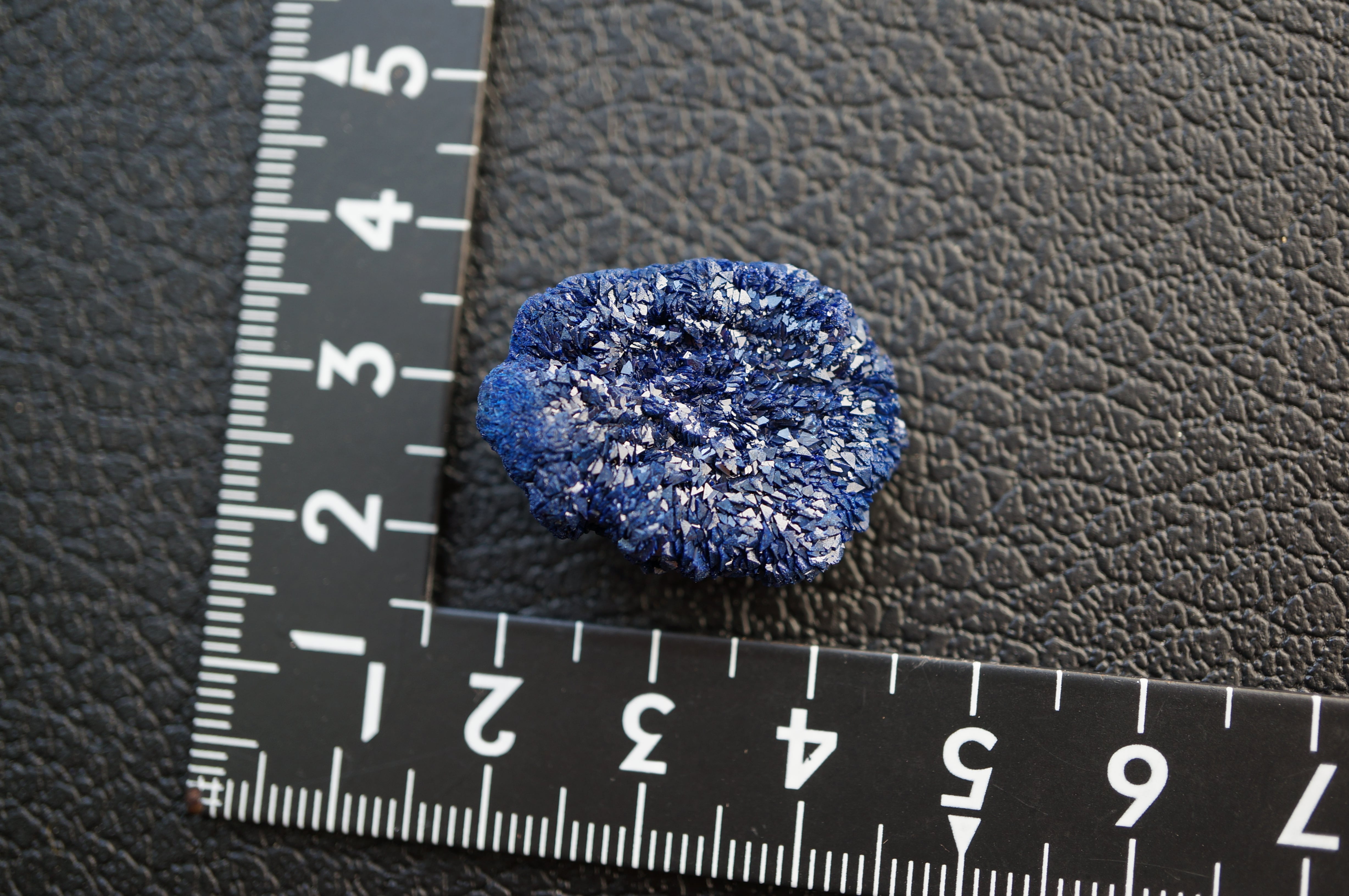 深く鮮やかなブルーの粒だった結晶が表裏全体に広がっています。