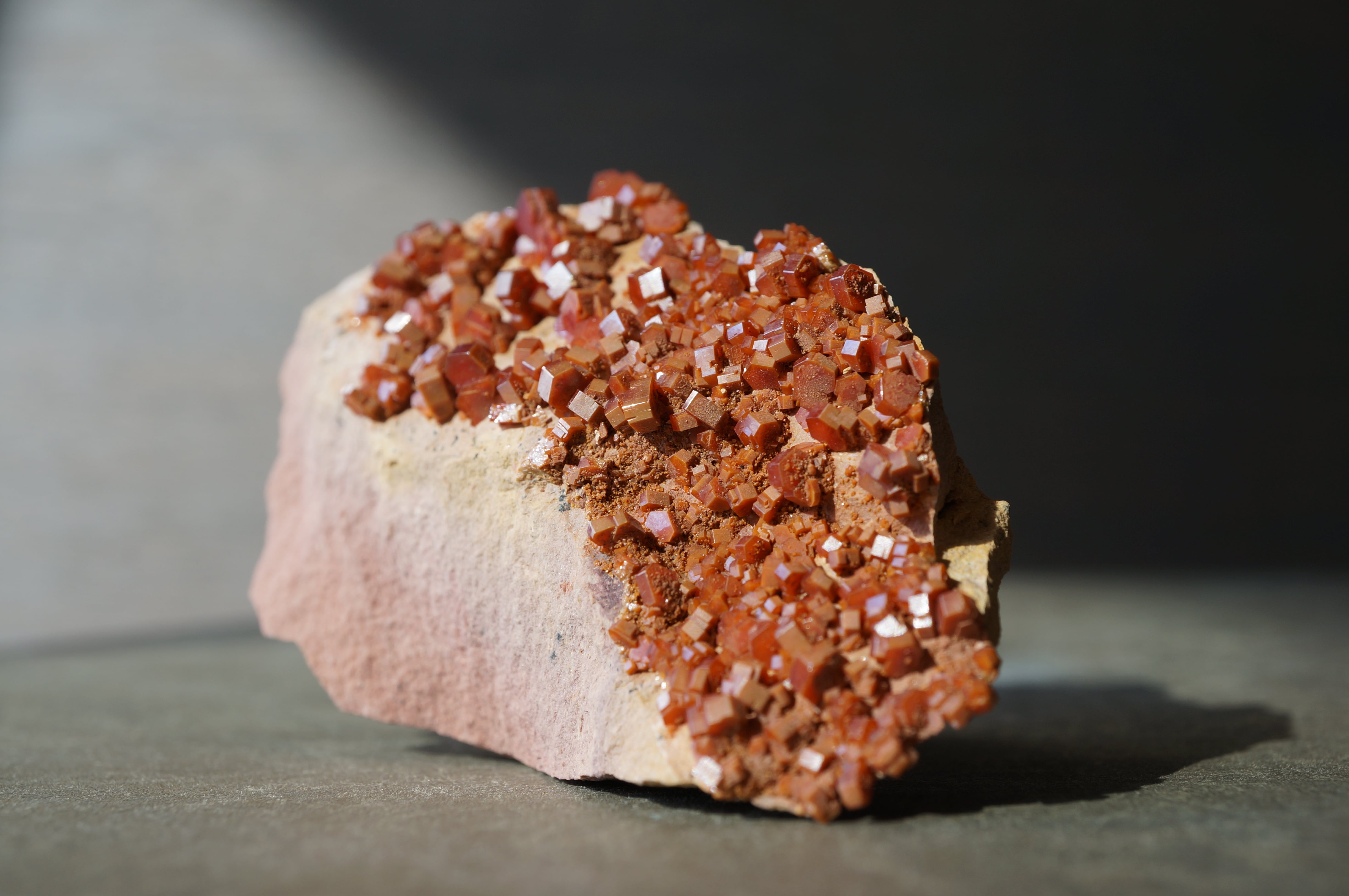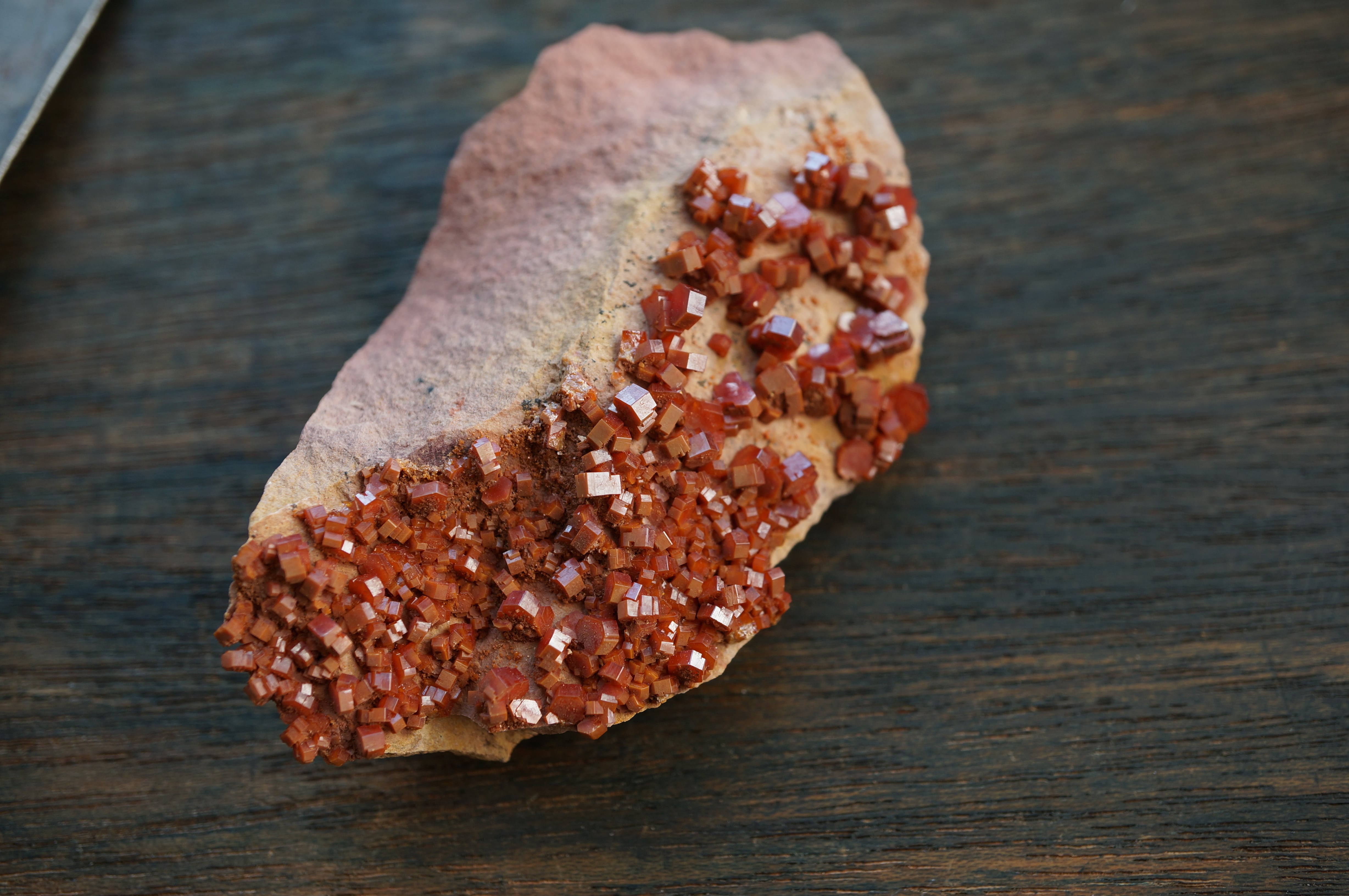 大きく粒だった結晶が集まったモロッコ産バナジナイトです。