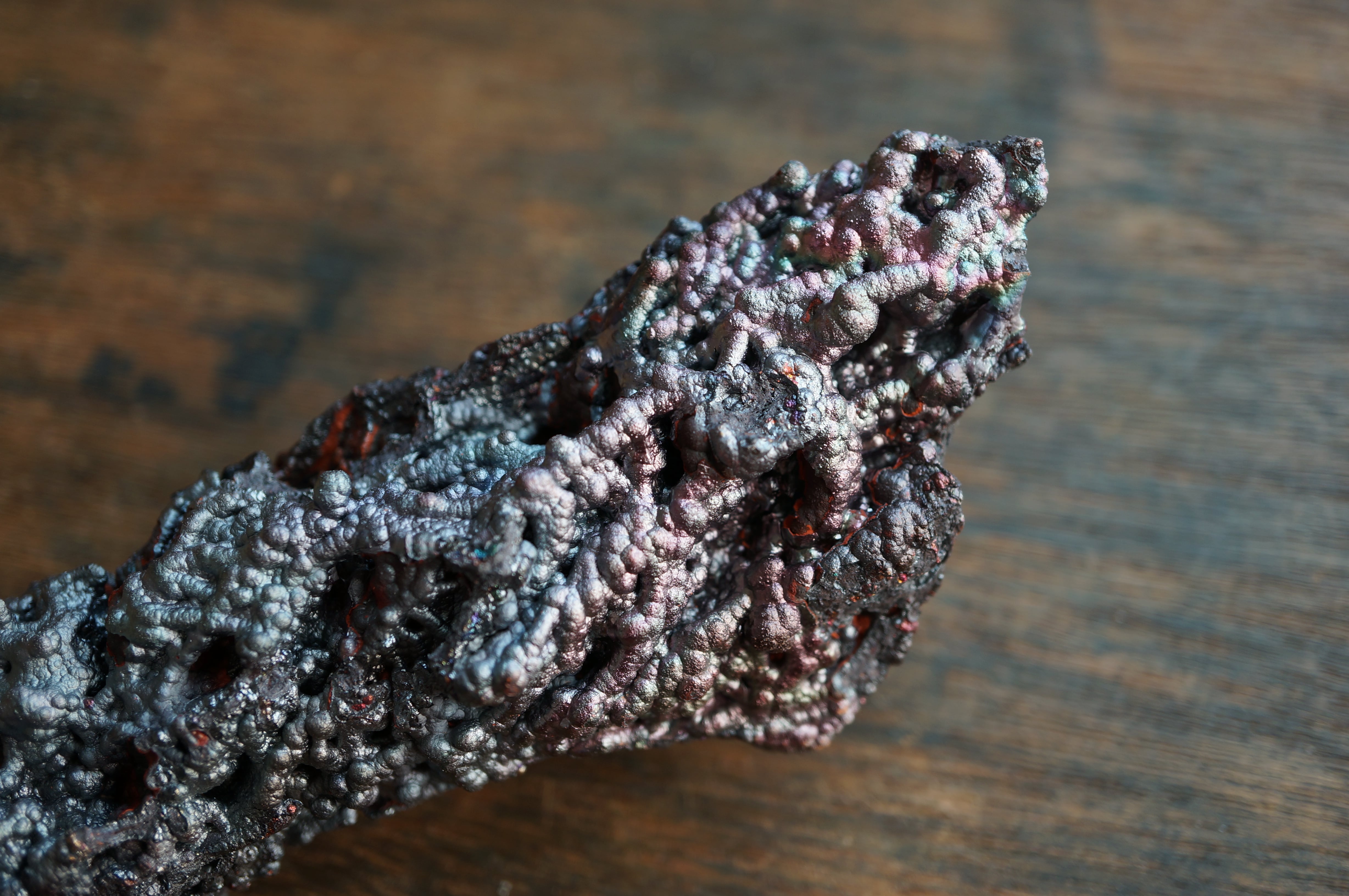 この人工的にも思える玉虫色のカラーリングは表面に形成された酸化被膜により自然に発現しています。