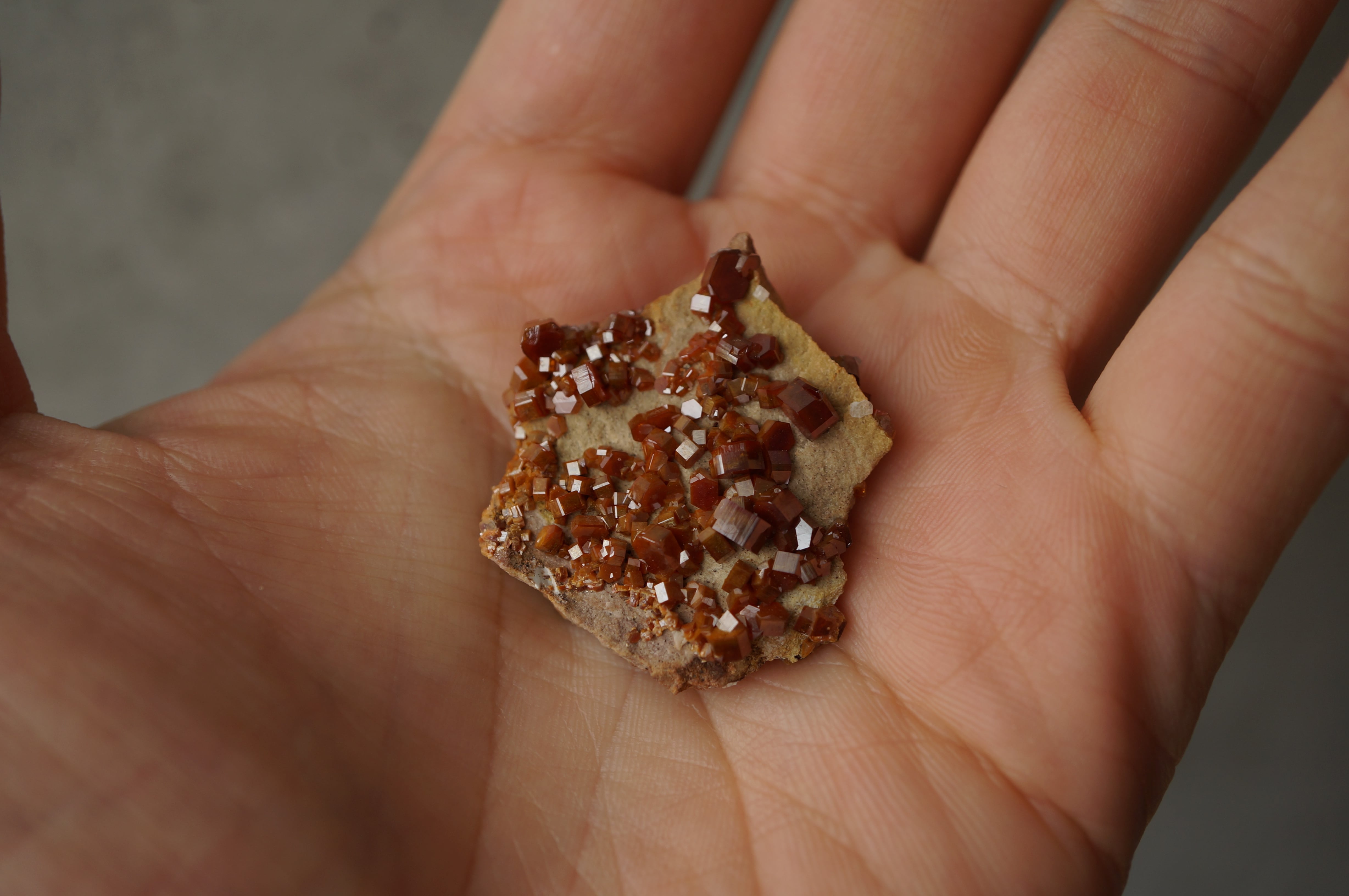 大きく粒だった結晶が集まったモロッコ産バナジナイトです。