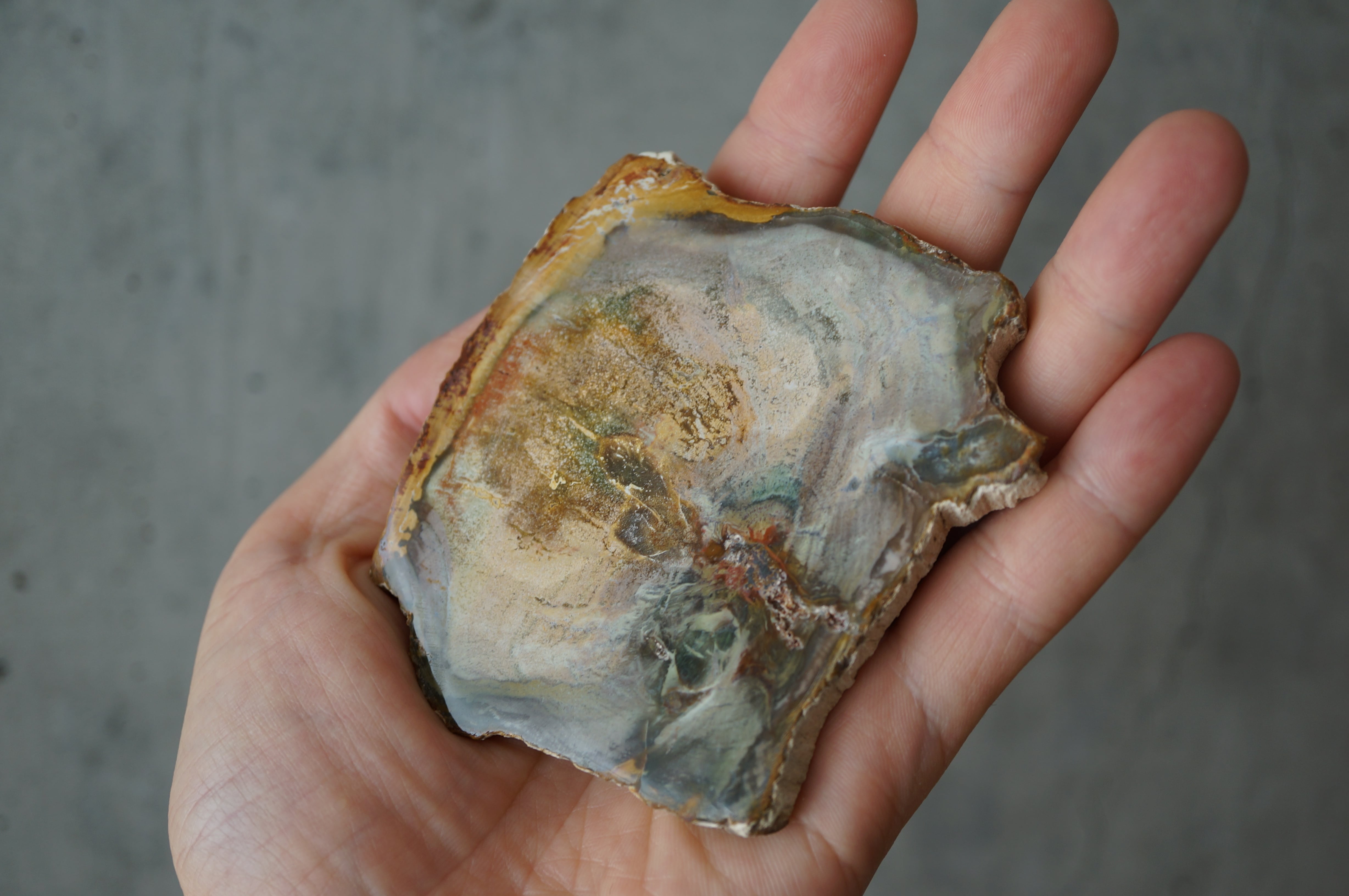 古代、地層に埋没した樹木は地下水に含まれる珪酸と結びつき、豊かな色彩を表します。