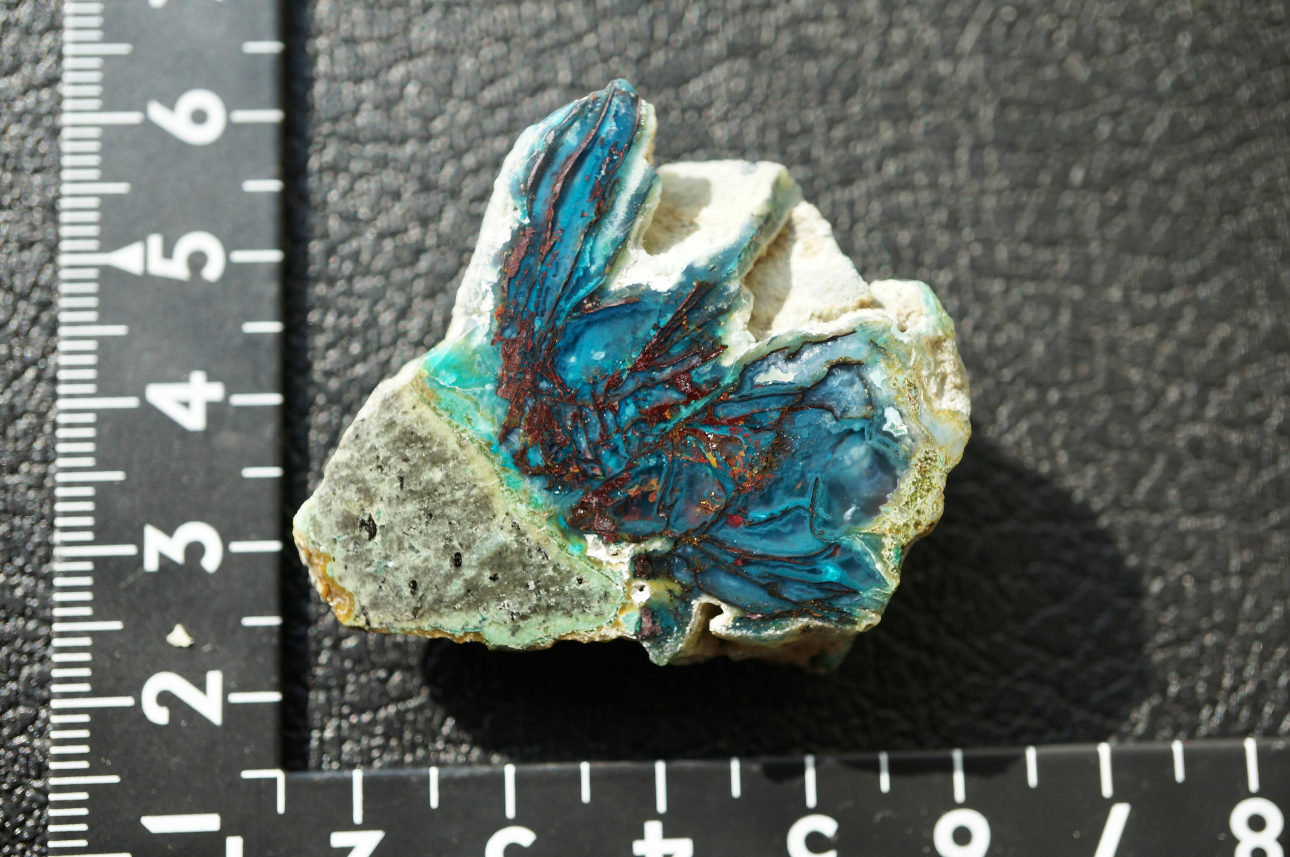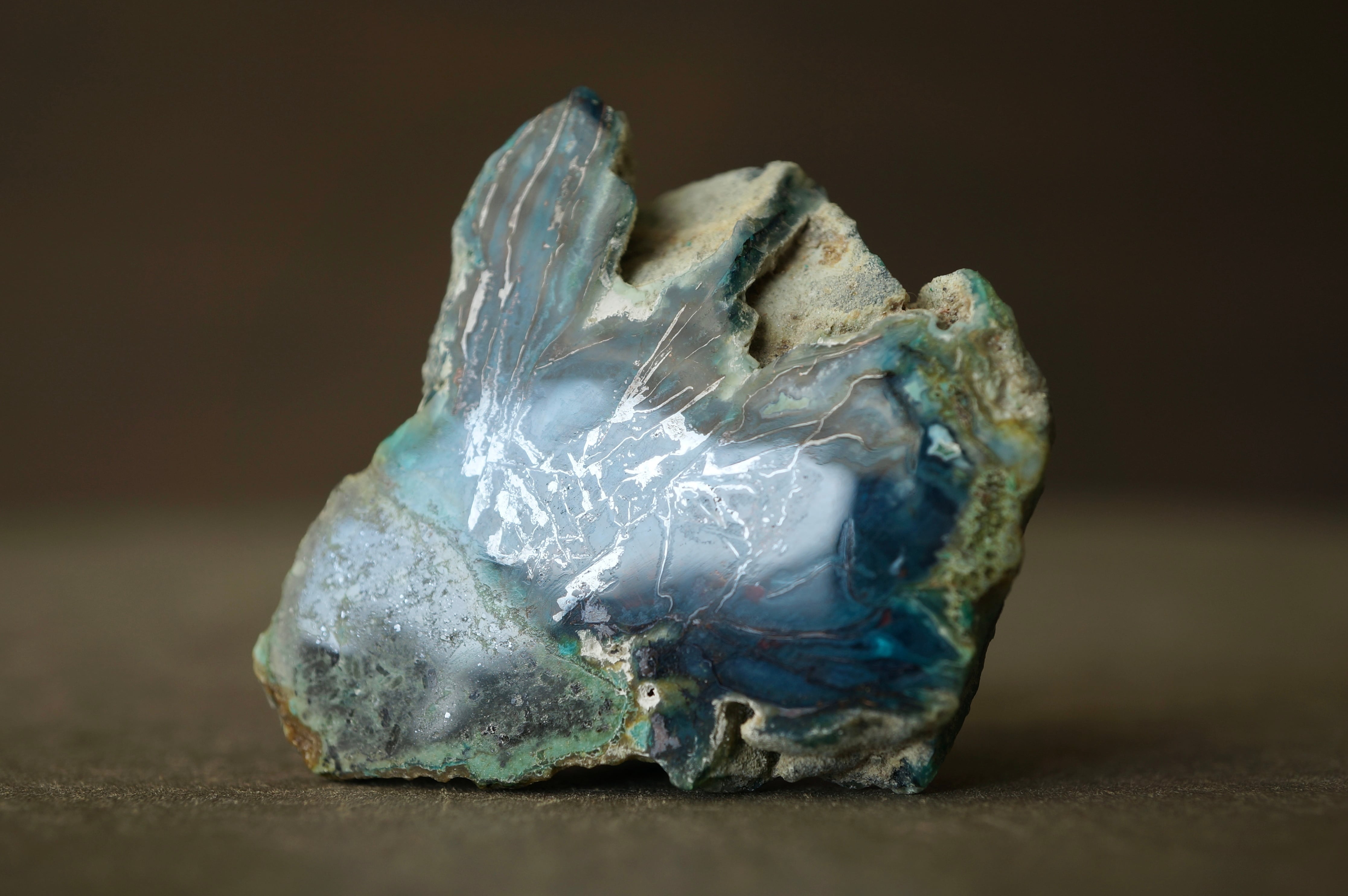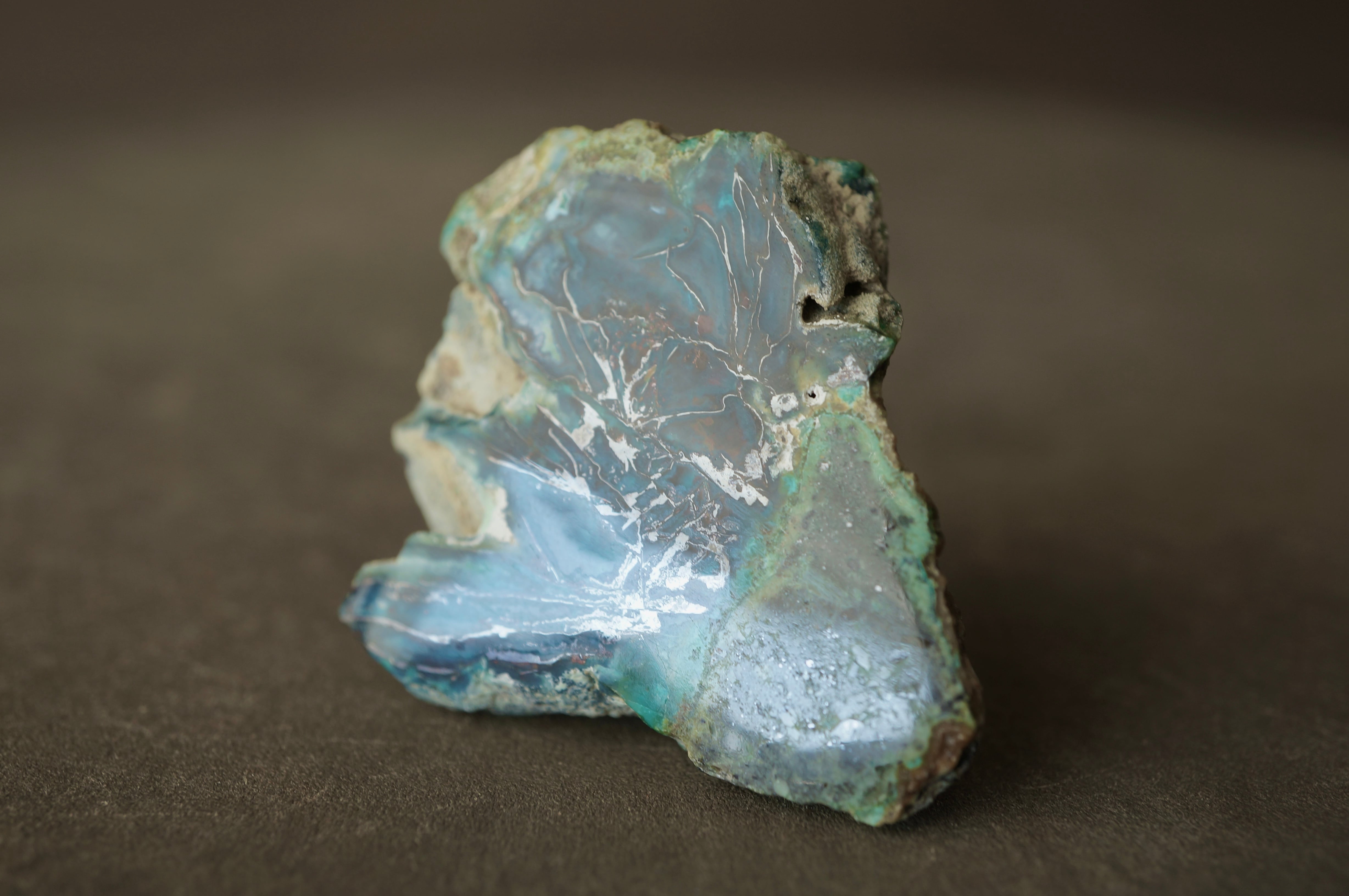 インドネシア産珪化木/クリソコラ/自然銅 Petrified Wood with Blue Opal and Native Copper 2032