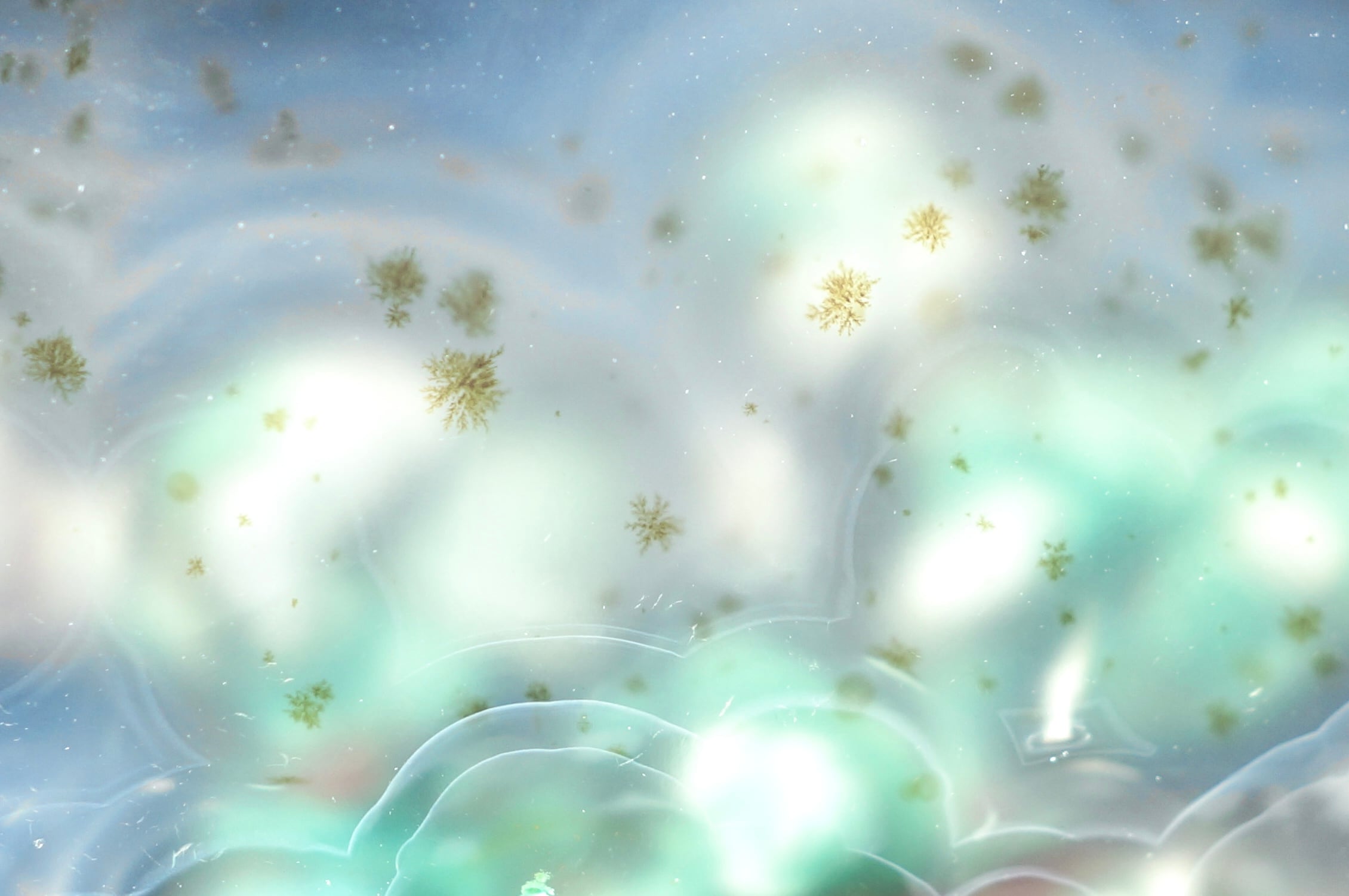 光を透かすと、それぞれの粒子は前後の関係を保ったまま静かに立ち上がり、ひとつの画面の中に穏やかな奥行きを生み出します。