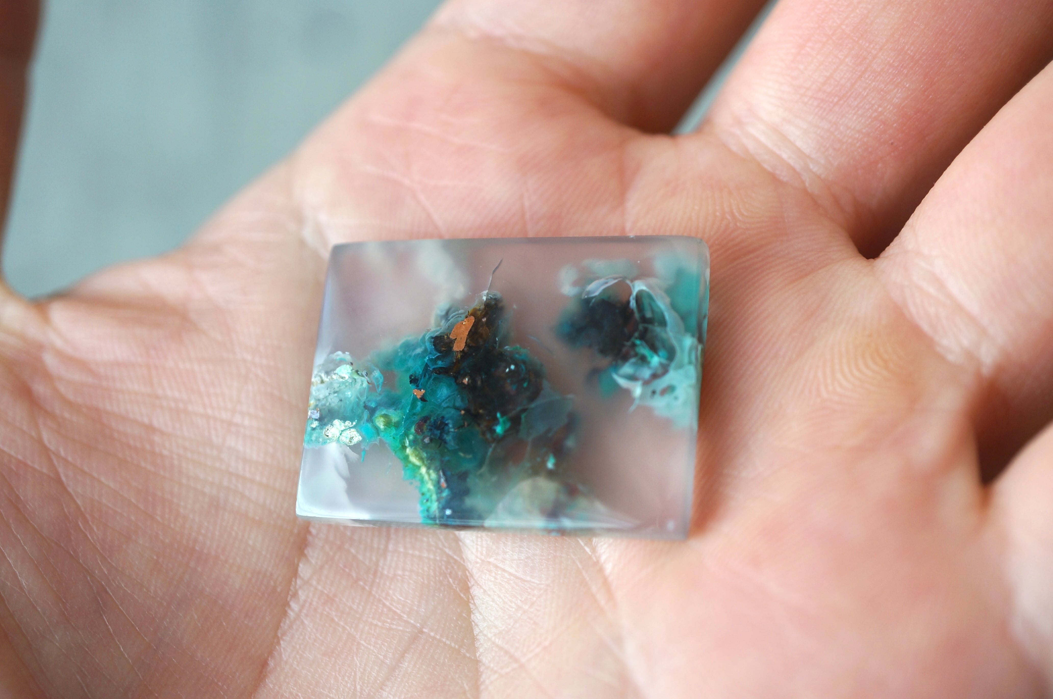 幻想的な模様が浮かび上がる、インドネシア産のコンフェッティ・クリソコラです。