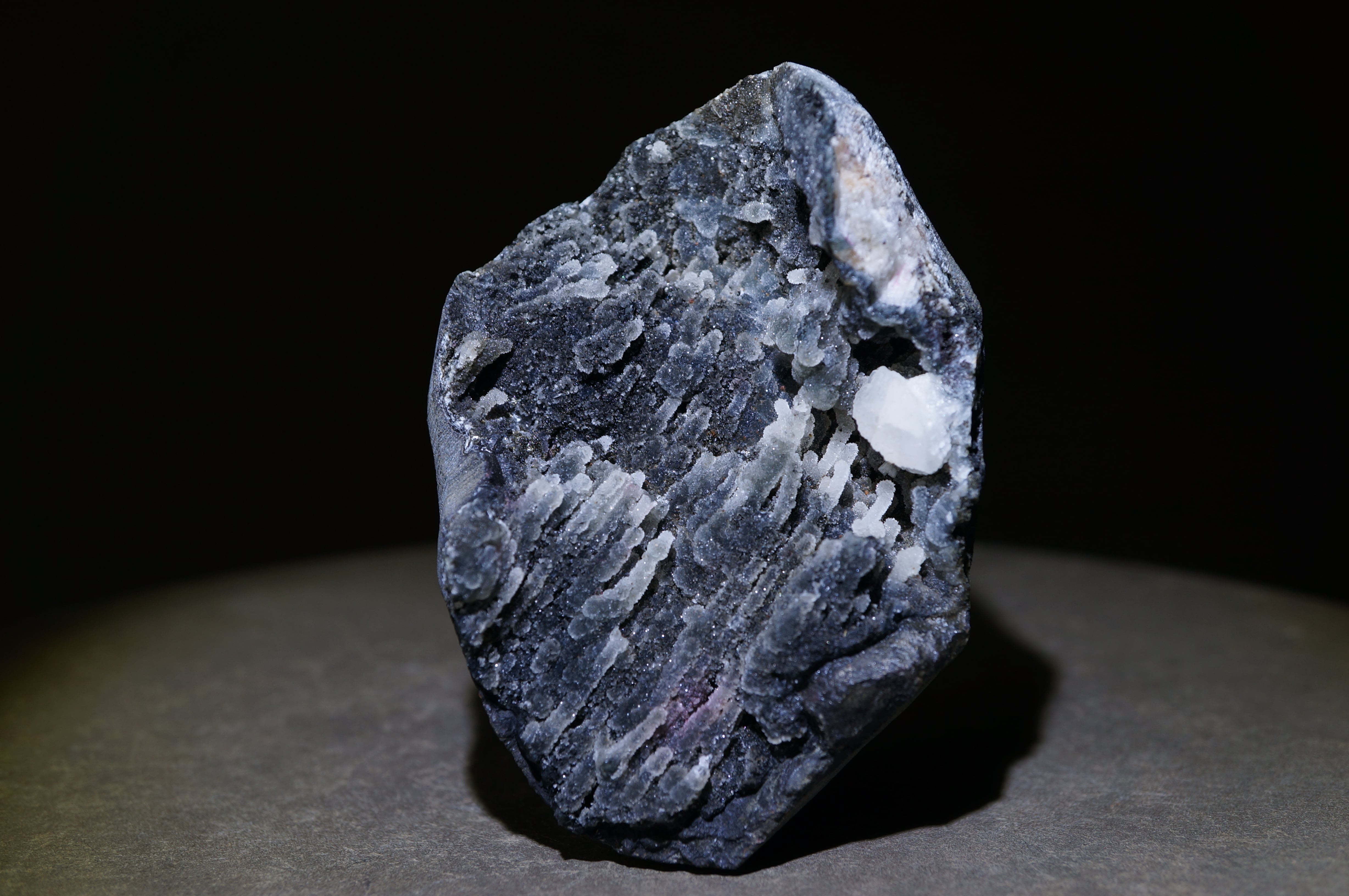 インド マハラシュトラ州、デカントラップと呼ばれる広大な玄武岩台地の空隙中で形成された、大型のブラックカルセドニー/アポフィライトです。