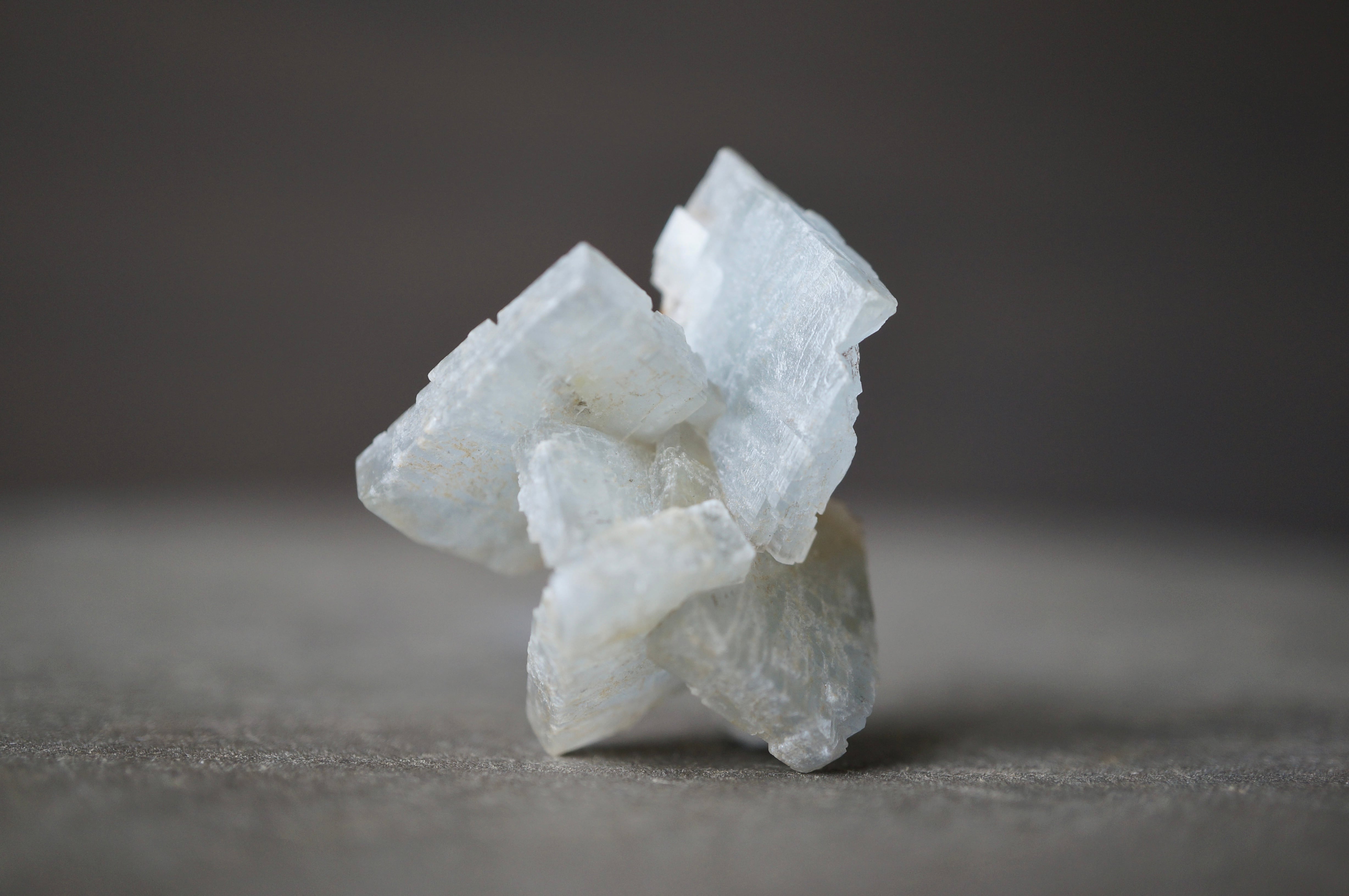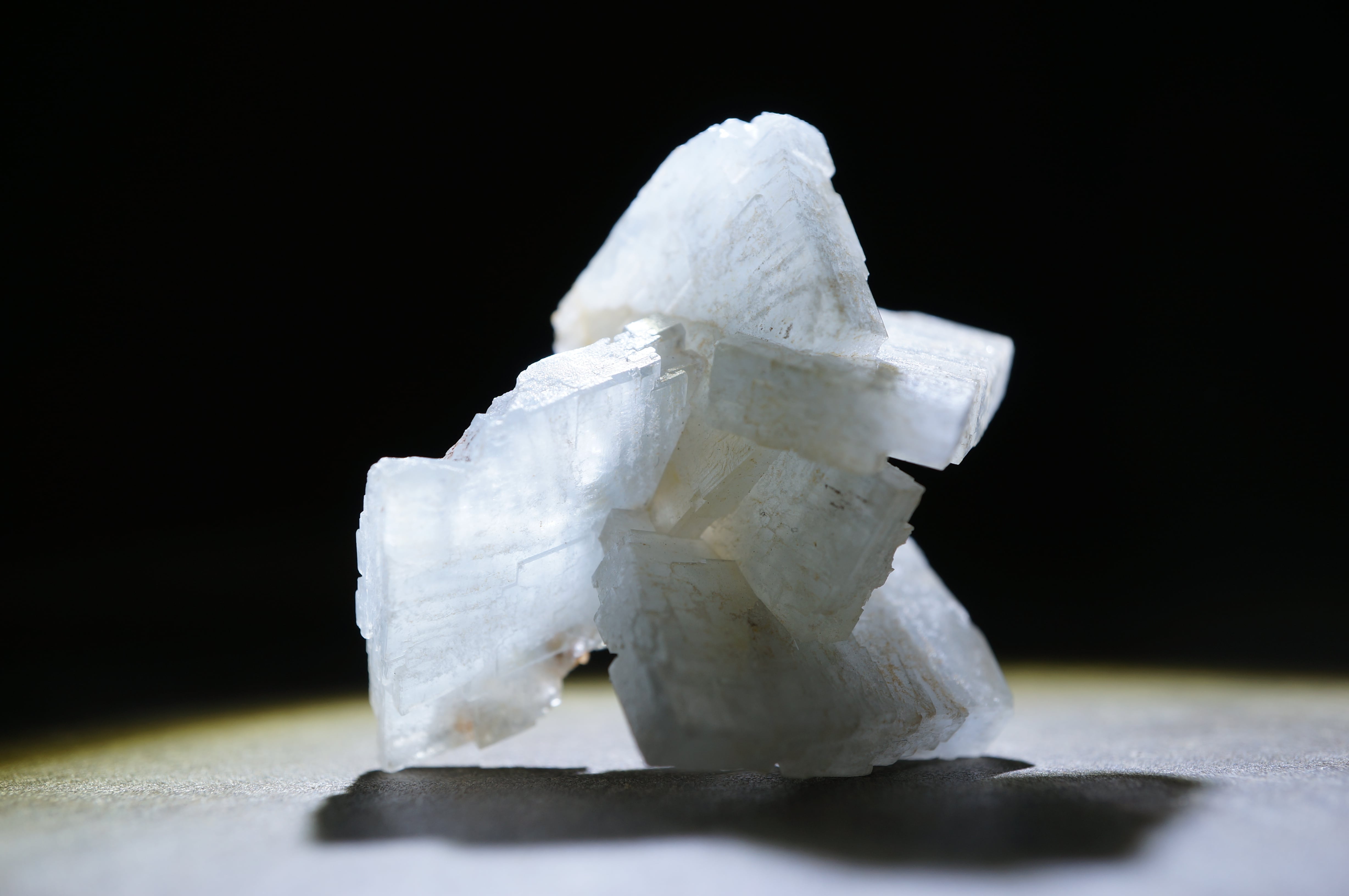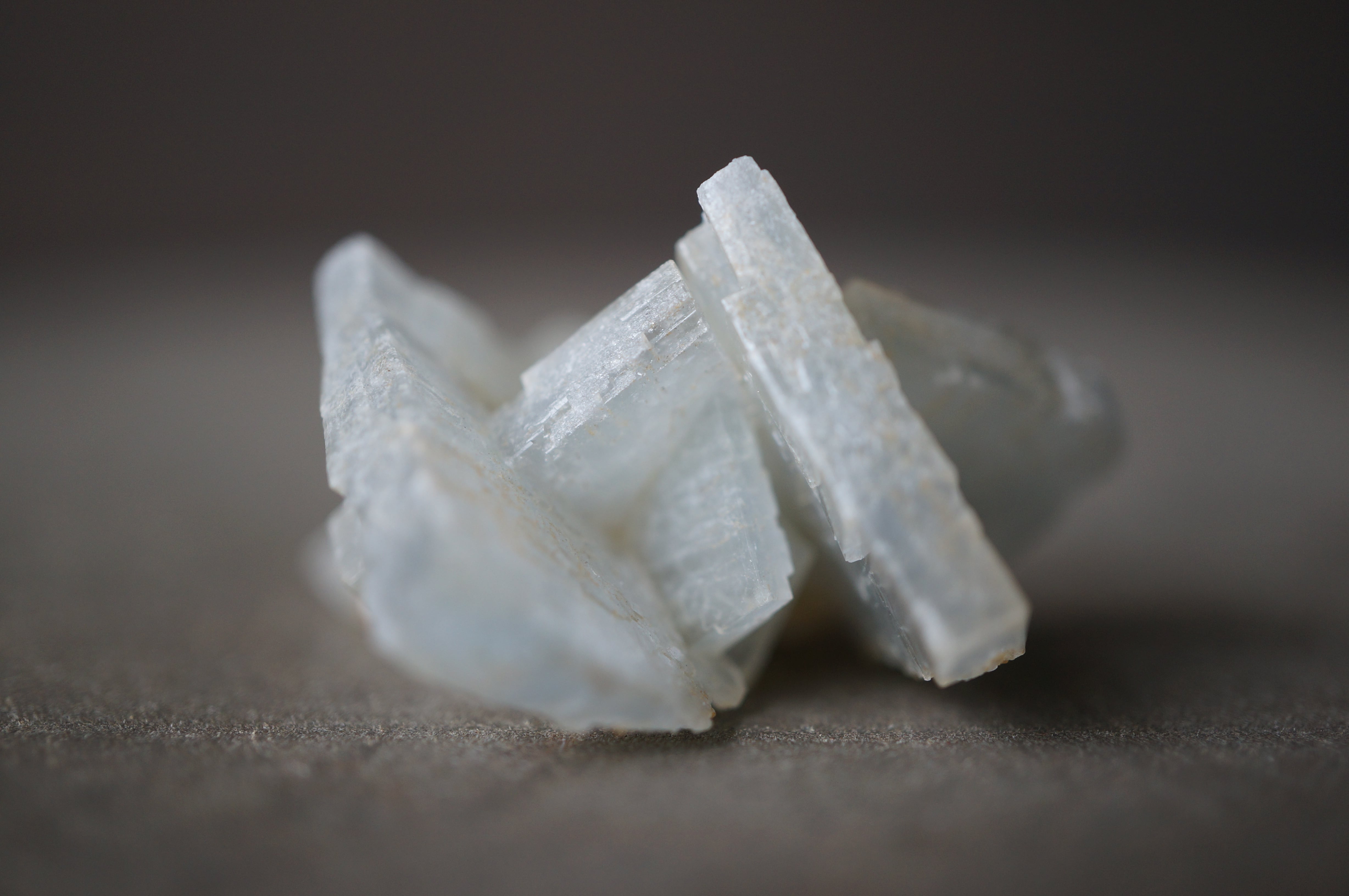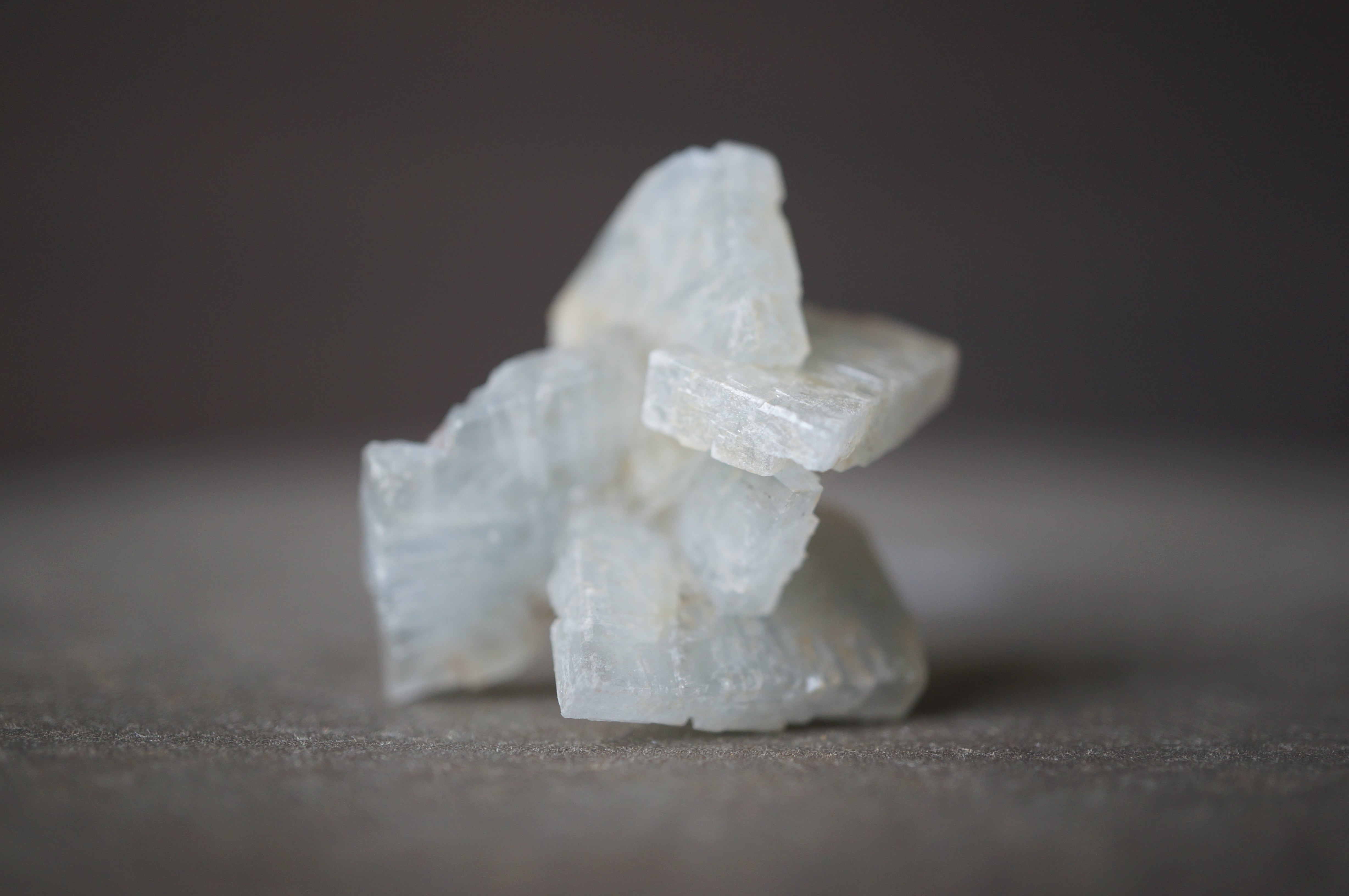 やや厚みのある板状結晶が複数交差しながら集積した群晶で、各結晶のエッジには微細な成長痕が確認できます。