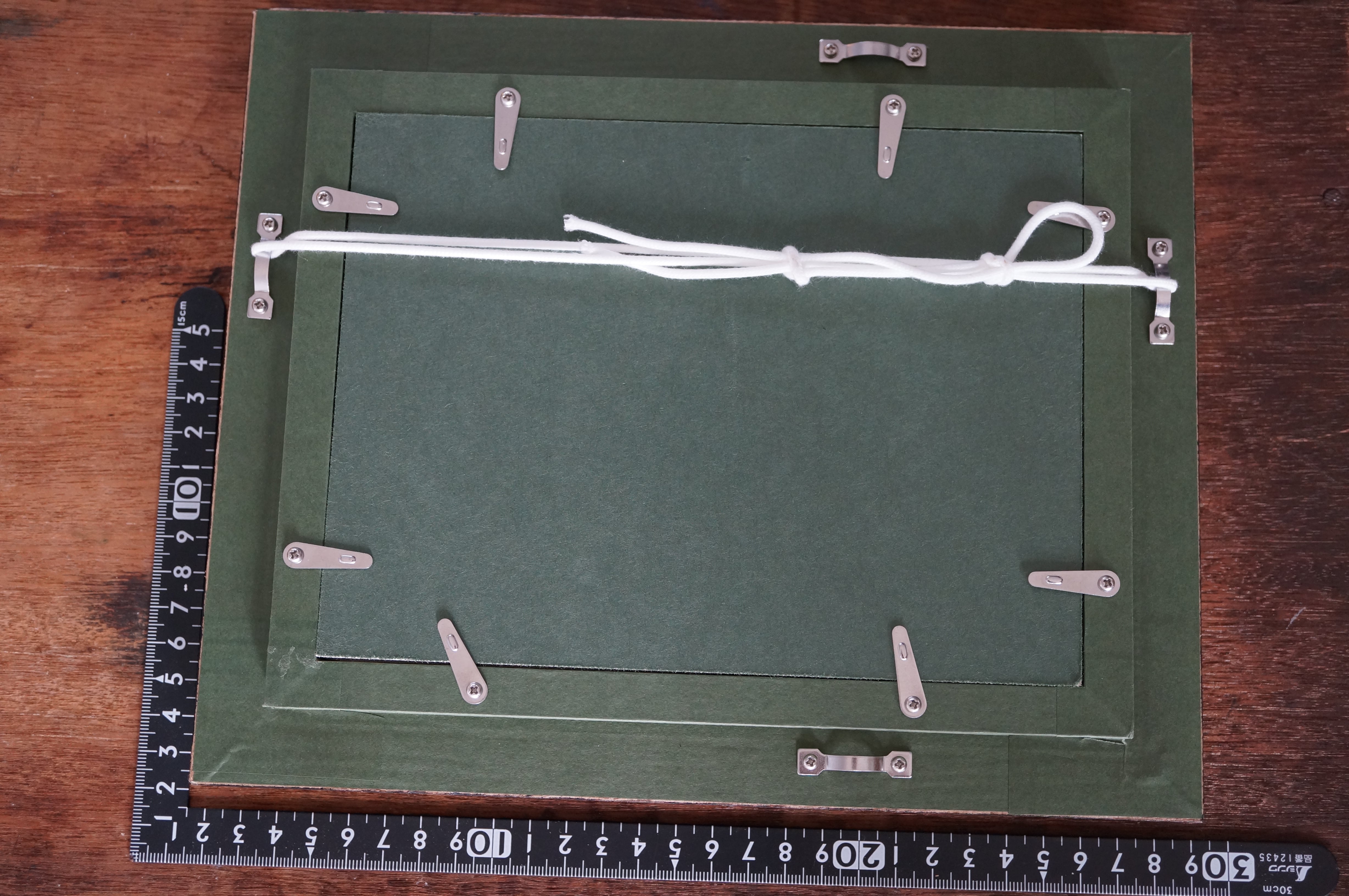 裏面に紐をつけており、壁掛けが可能です。