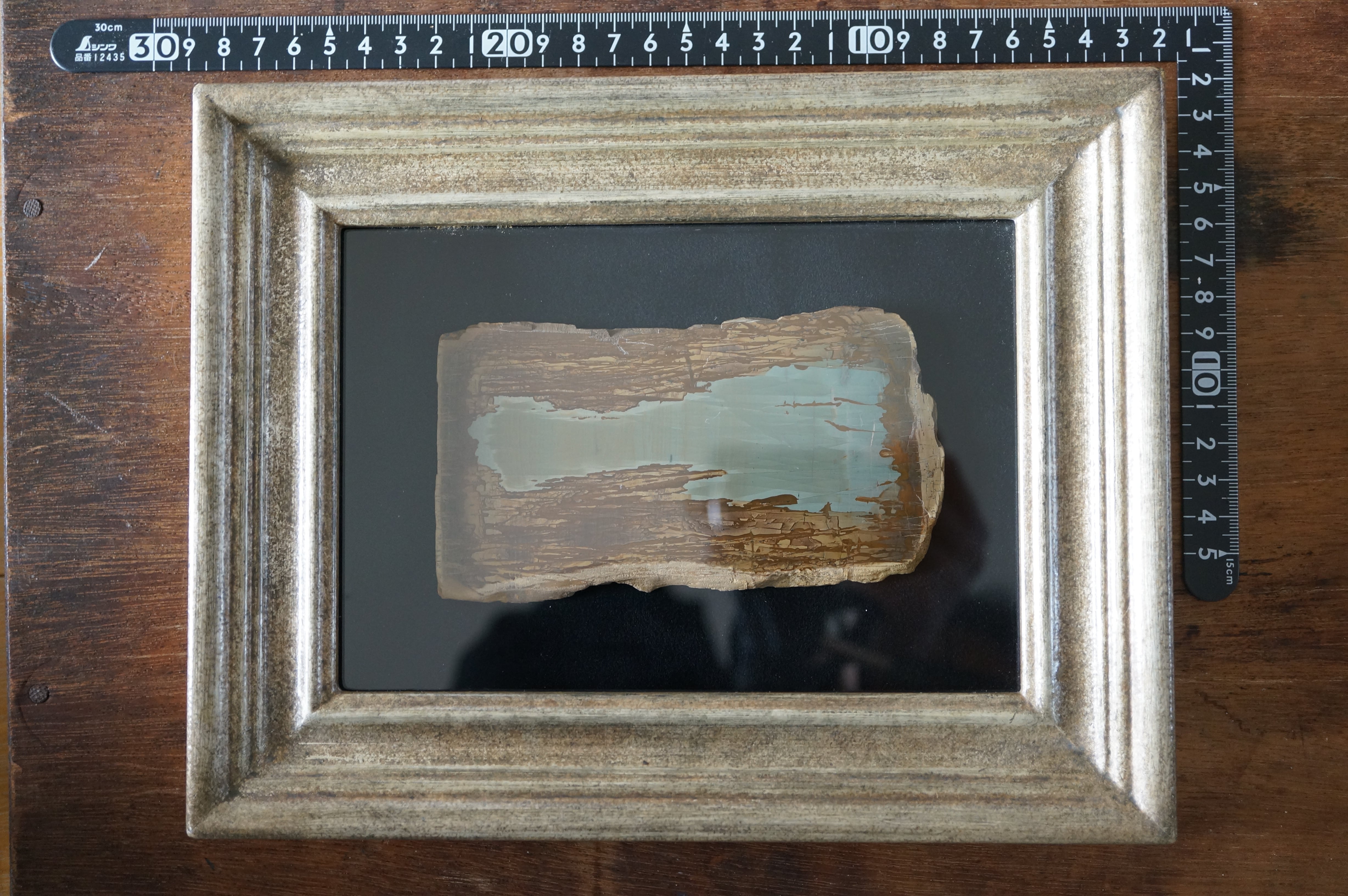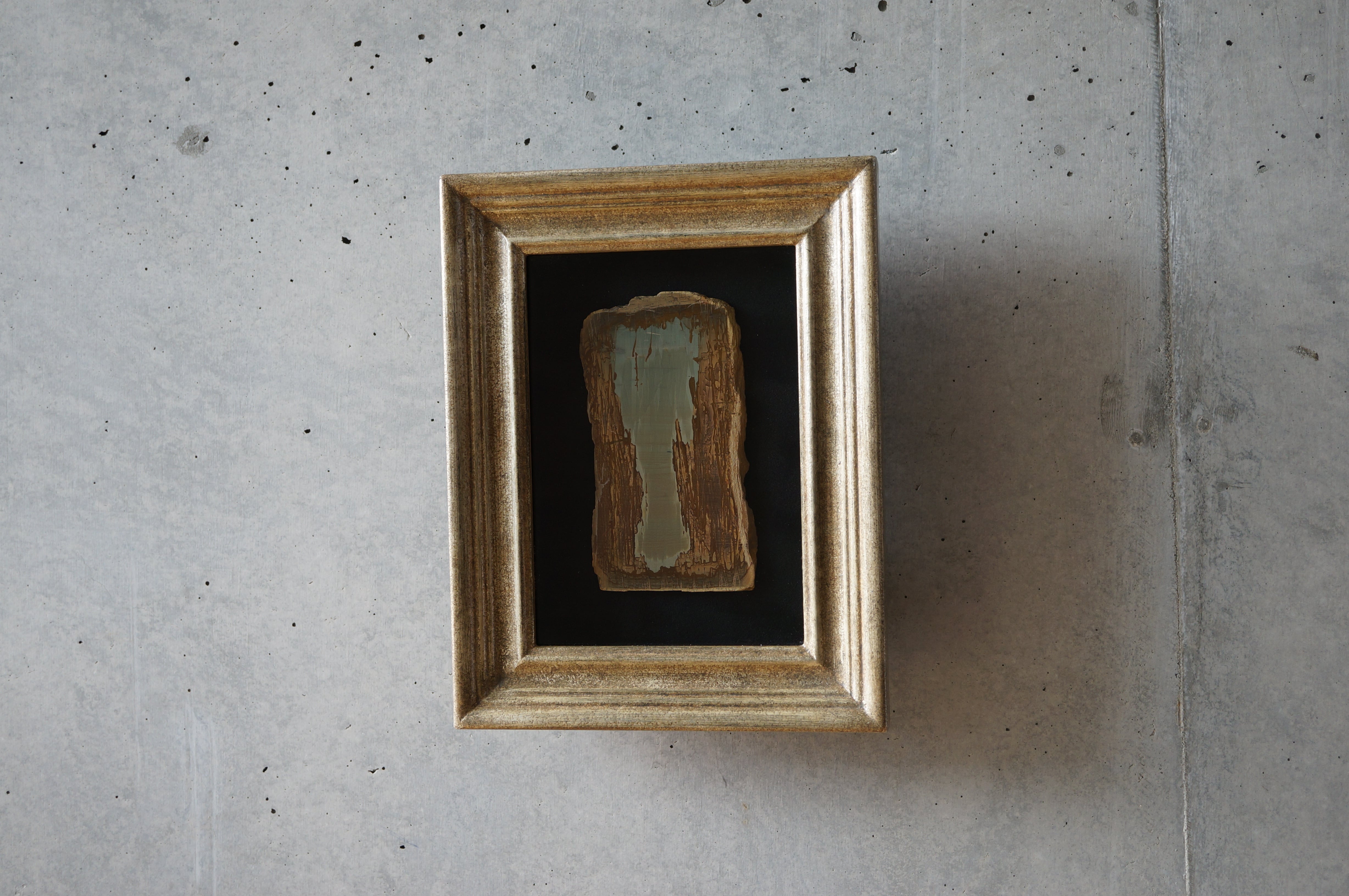 天然木材を使用したデッドストックフレームを用い、石の表現を引き立てるよう1点ずつオーダーメイドで額装しています。