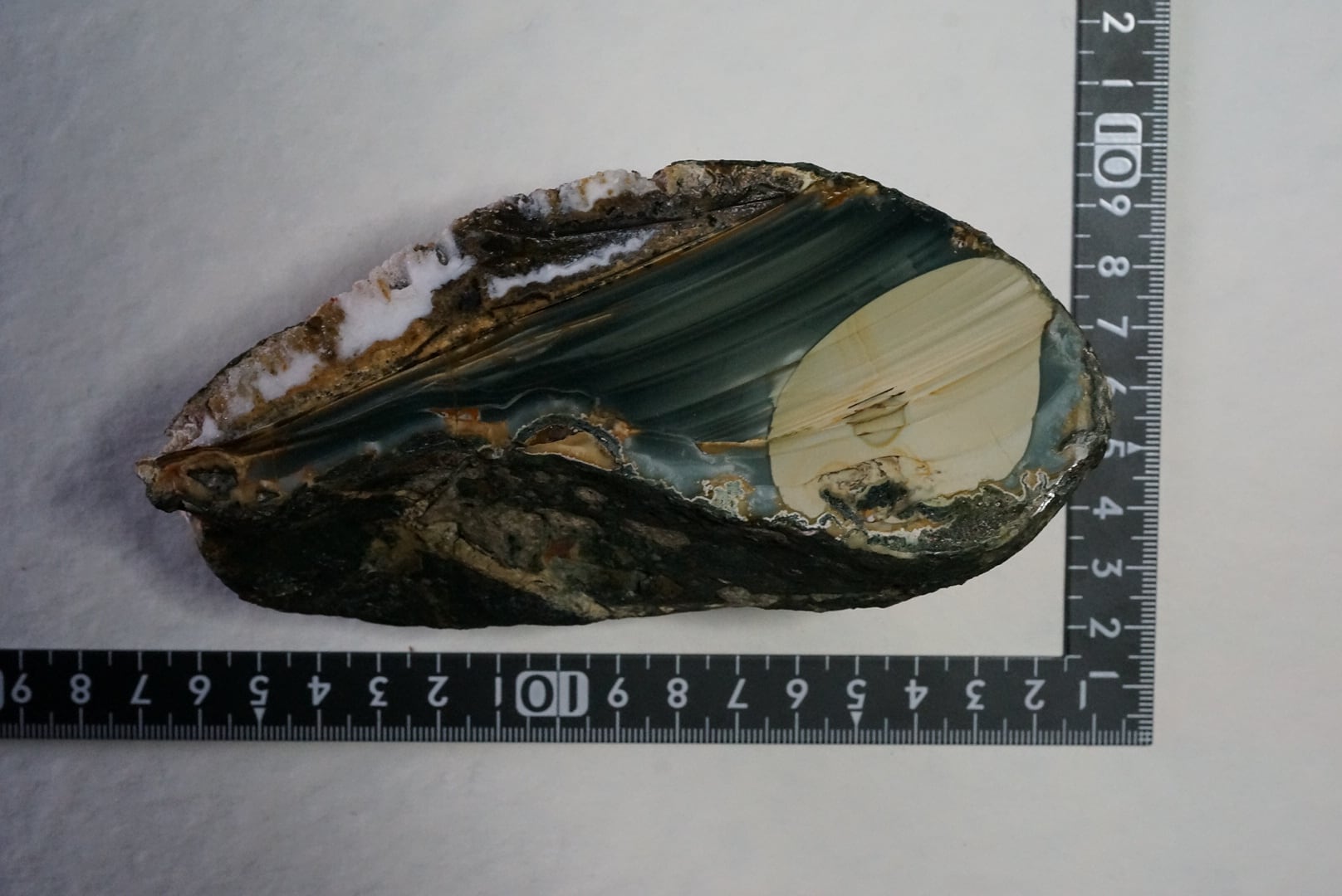 裏側の晶洞部分も面白く見どころ満載、掌にずっしりと馴染むサイズ感も相まって非常に観賞価値の高い一石です。