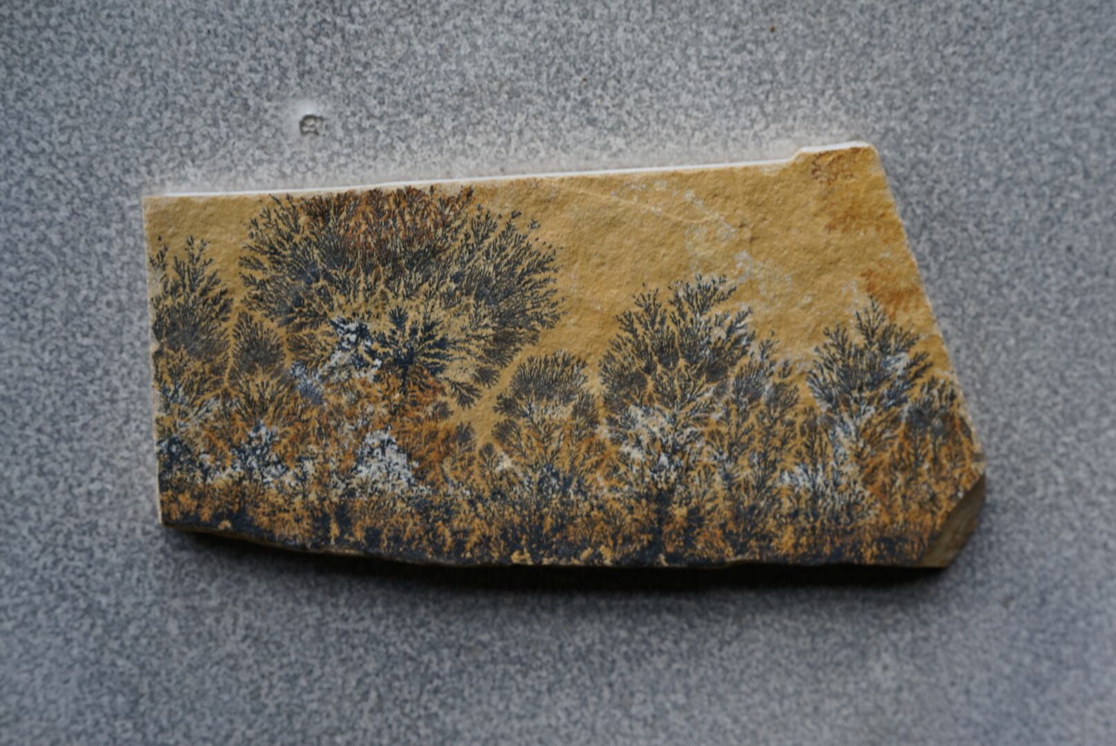 植物の化石のように見える模様は二酸化マンガンが岩の間に染み込んでできたもの。