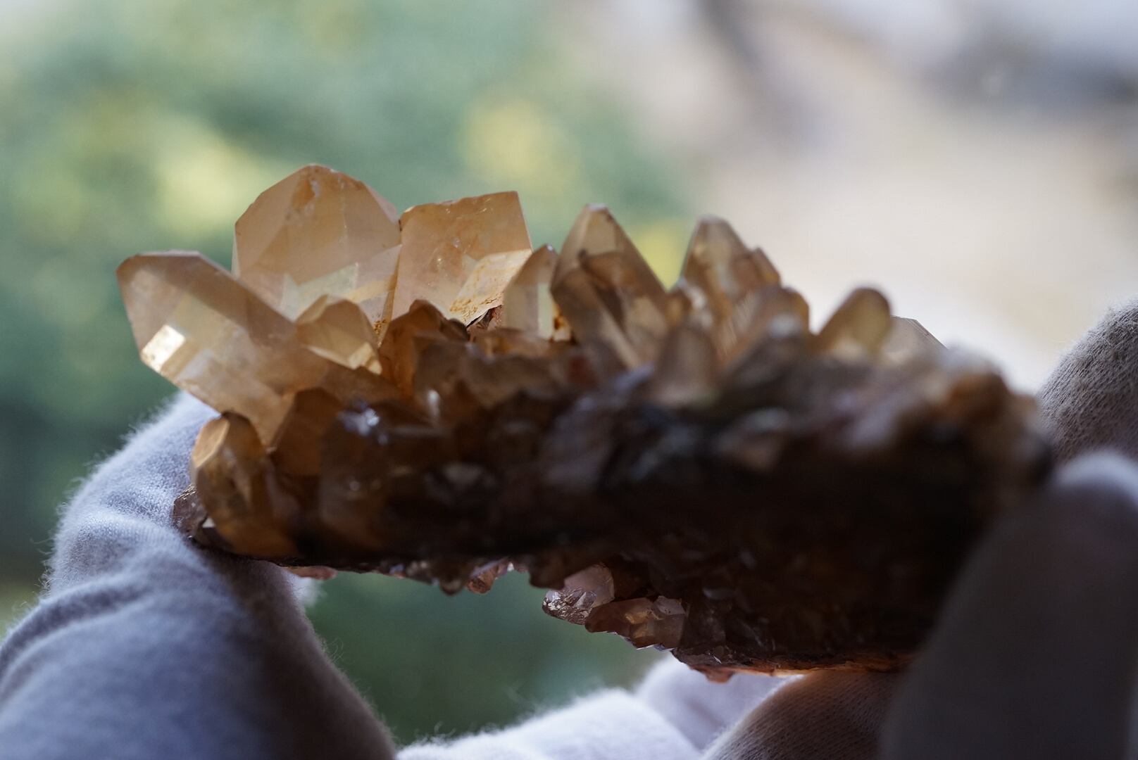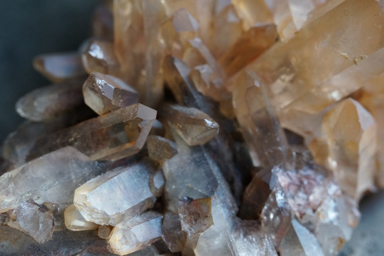 酸化したヘマタイト成分がオレンジに発色した水晶。