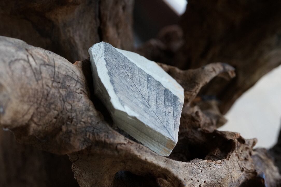 栃木県那須塩原市では本品のように葉脈のはっきりした美しい化石が産出されます。