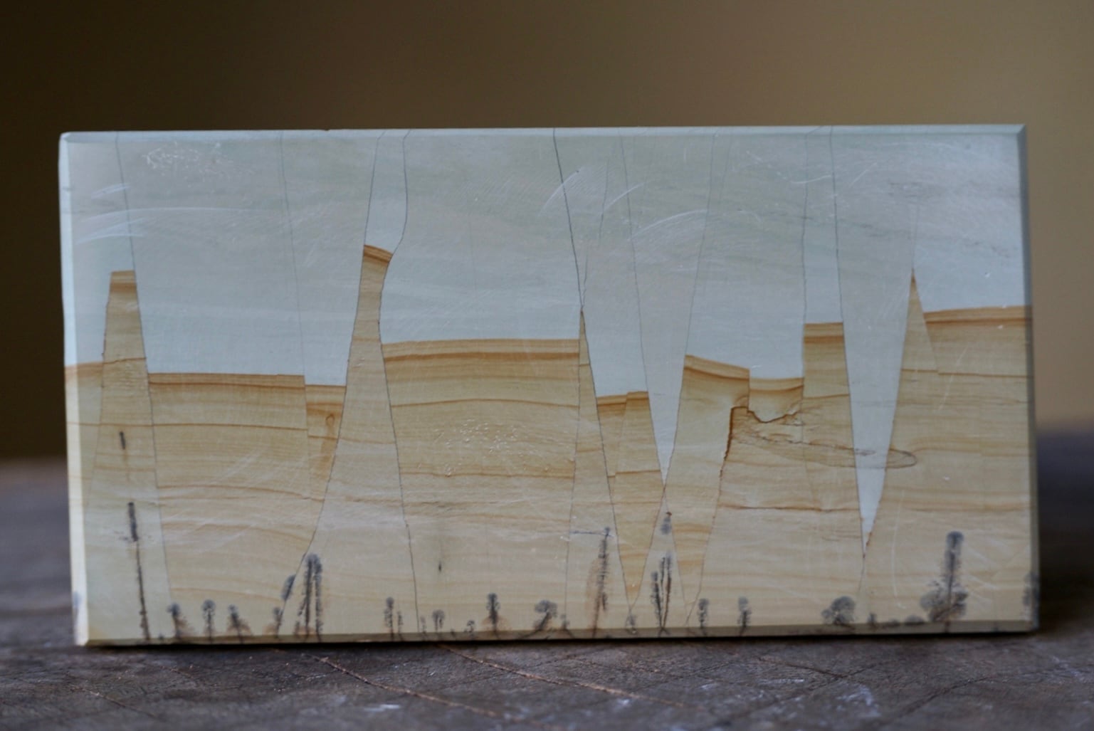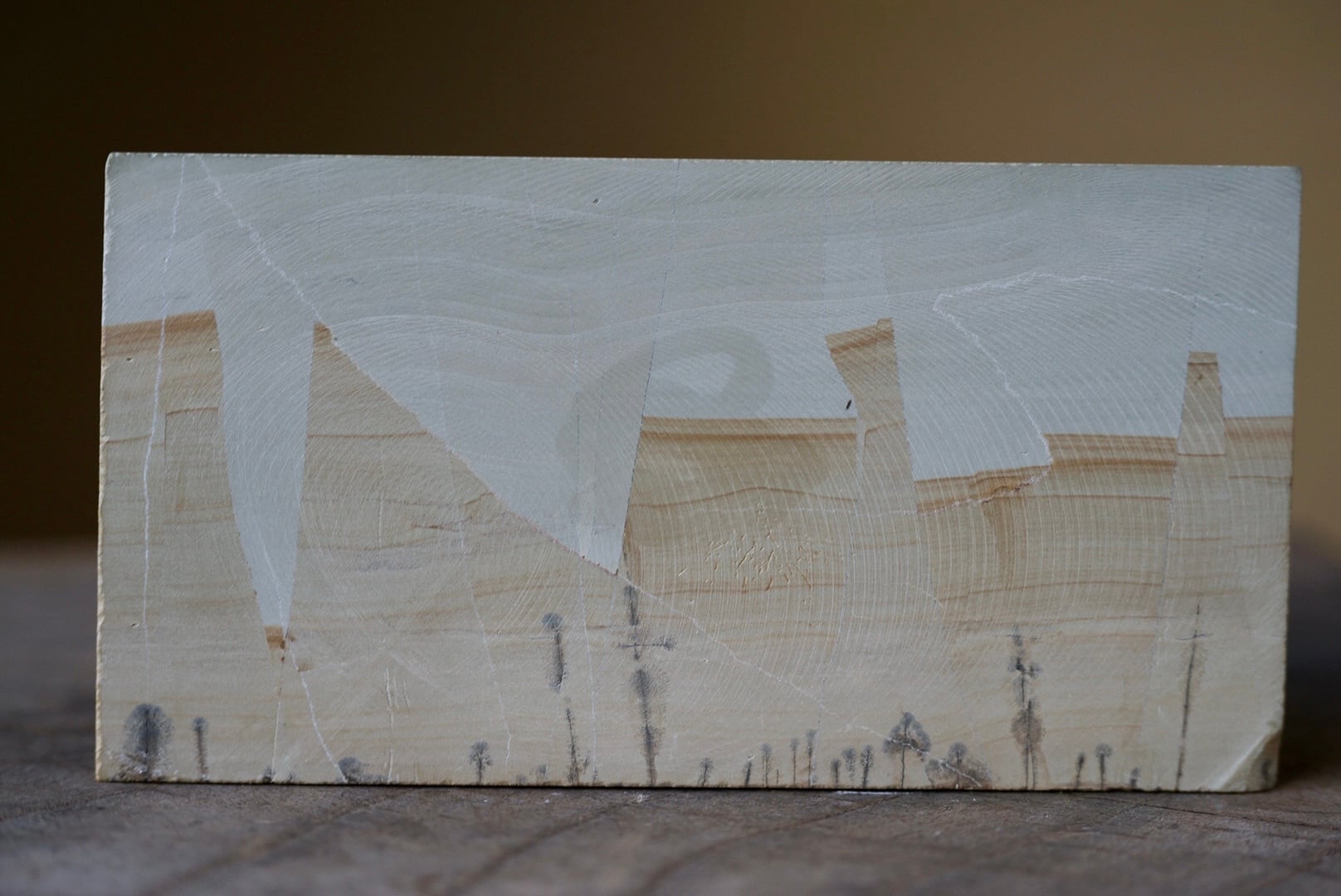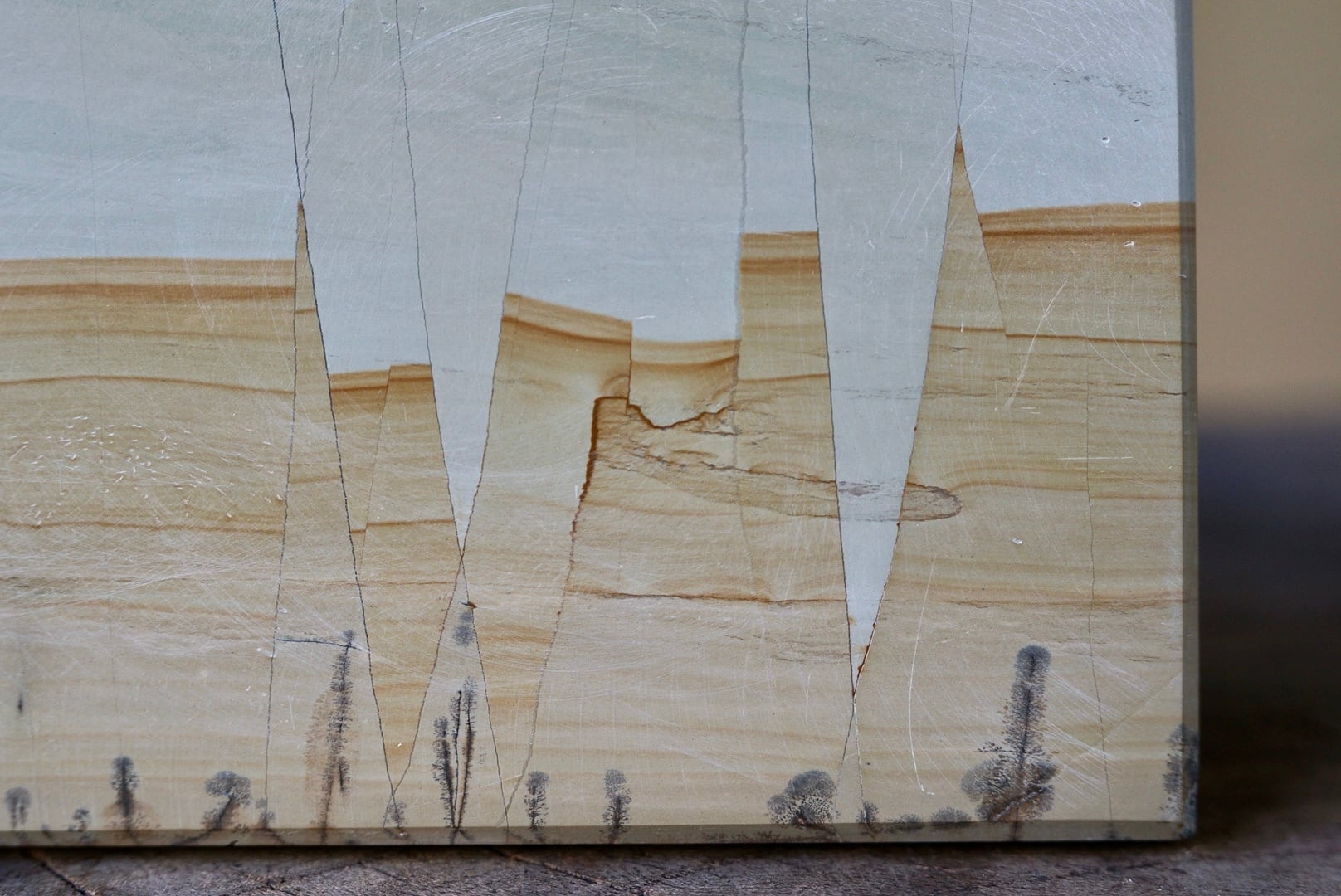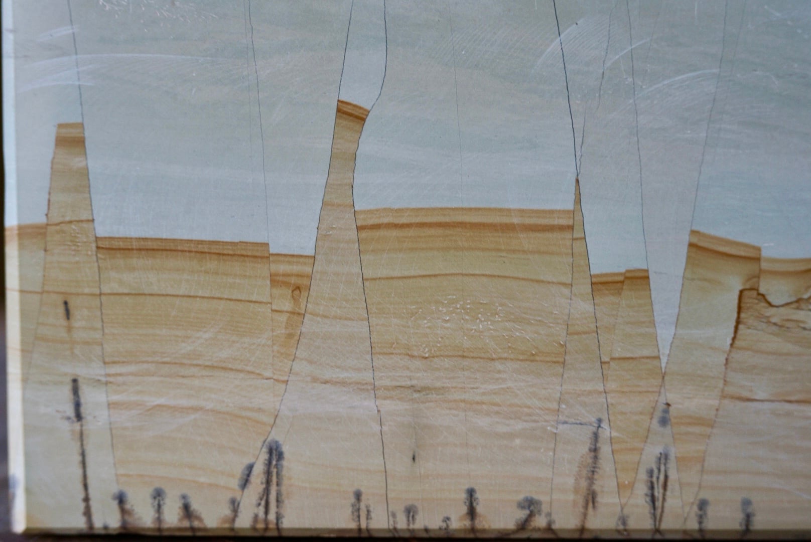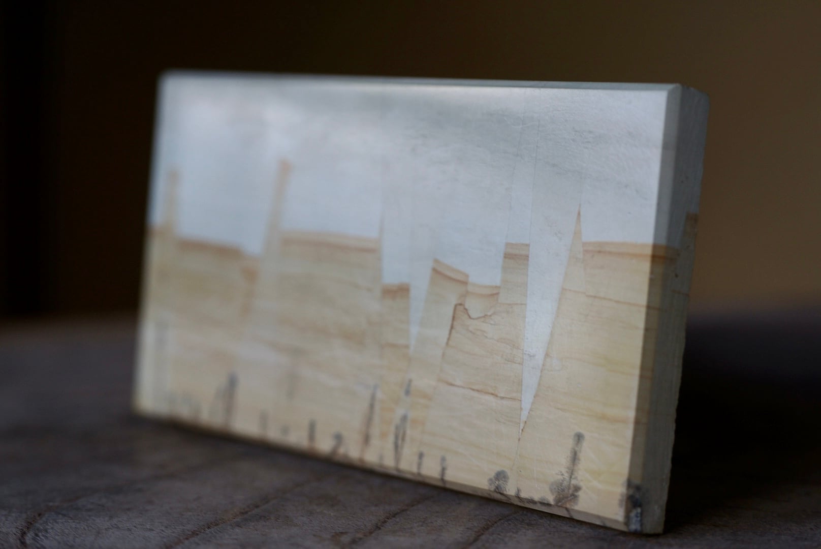 「Paesine」とはイタリア語で風景を意味し、荒涼な大地と空や海を思わせるその図像は見る者を幻想の世界へ誘います。