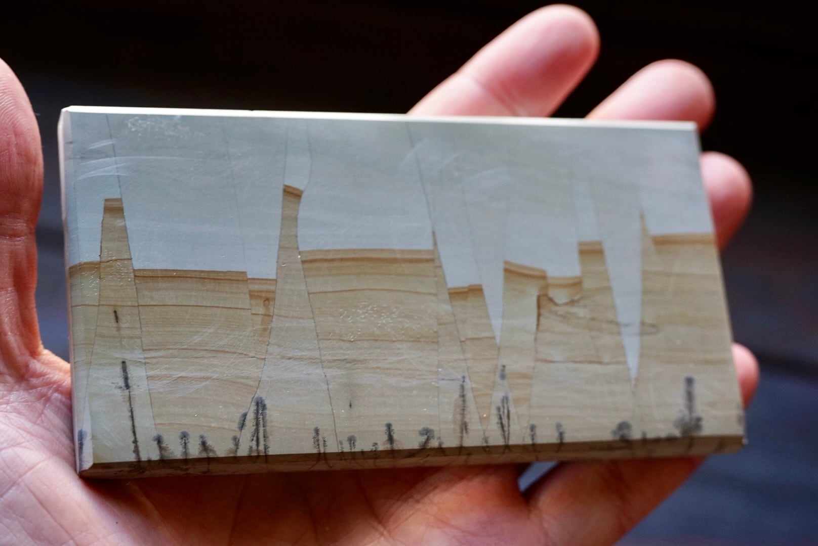 パエジナストーンの模様は石灰岩中の鉱物堆積によるものですが、当時の人々には神による天然の絵画として映ったのです。
