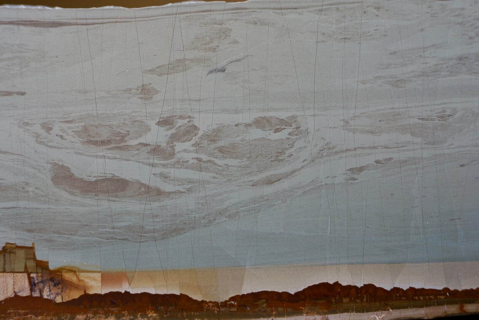 「Paesine」とはイタリア語で風景を意味し、荒涼な大地と空や海を思わせるその図像は見る者を幻想の世界へ誘います。